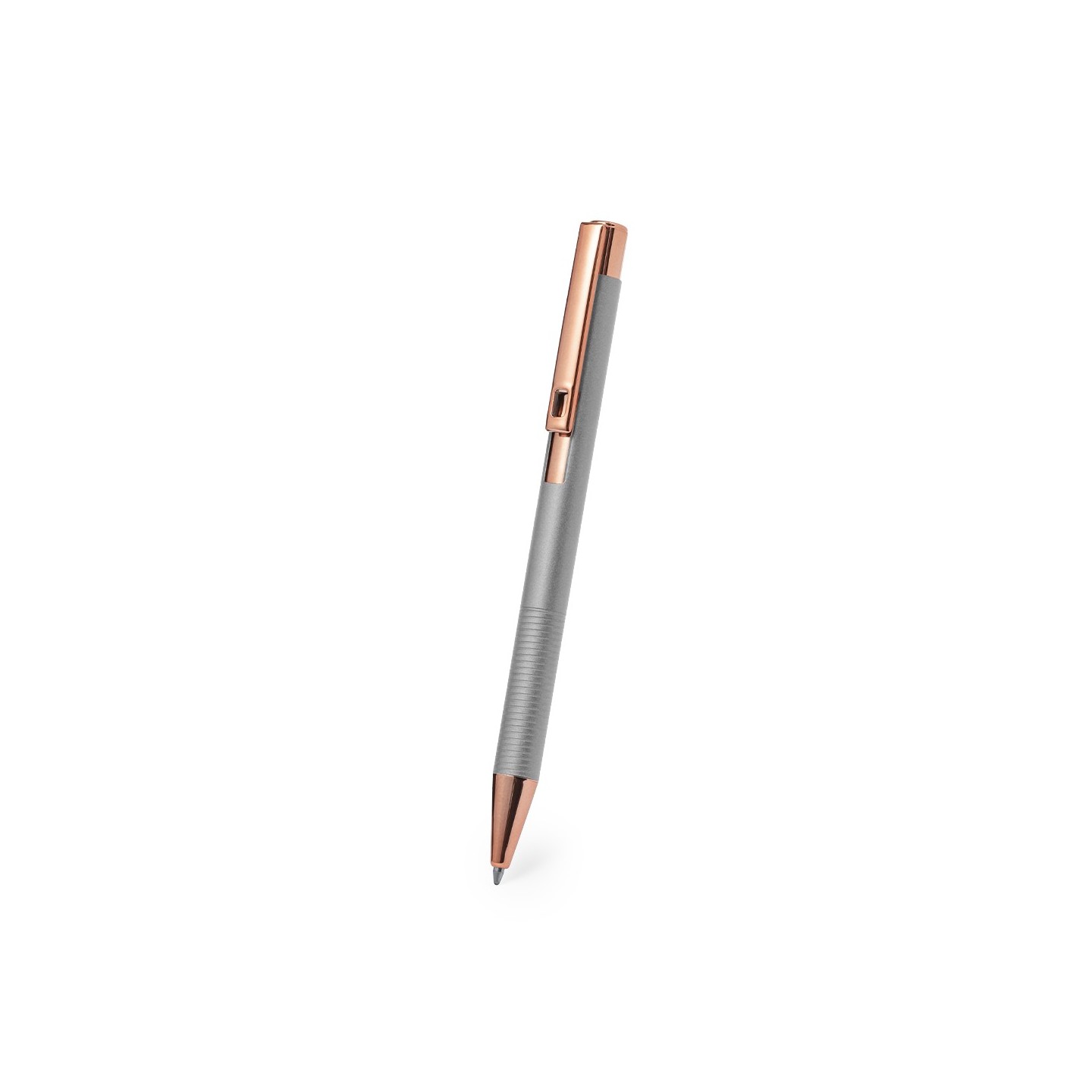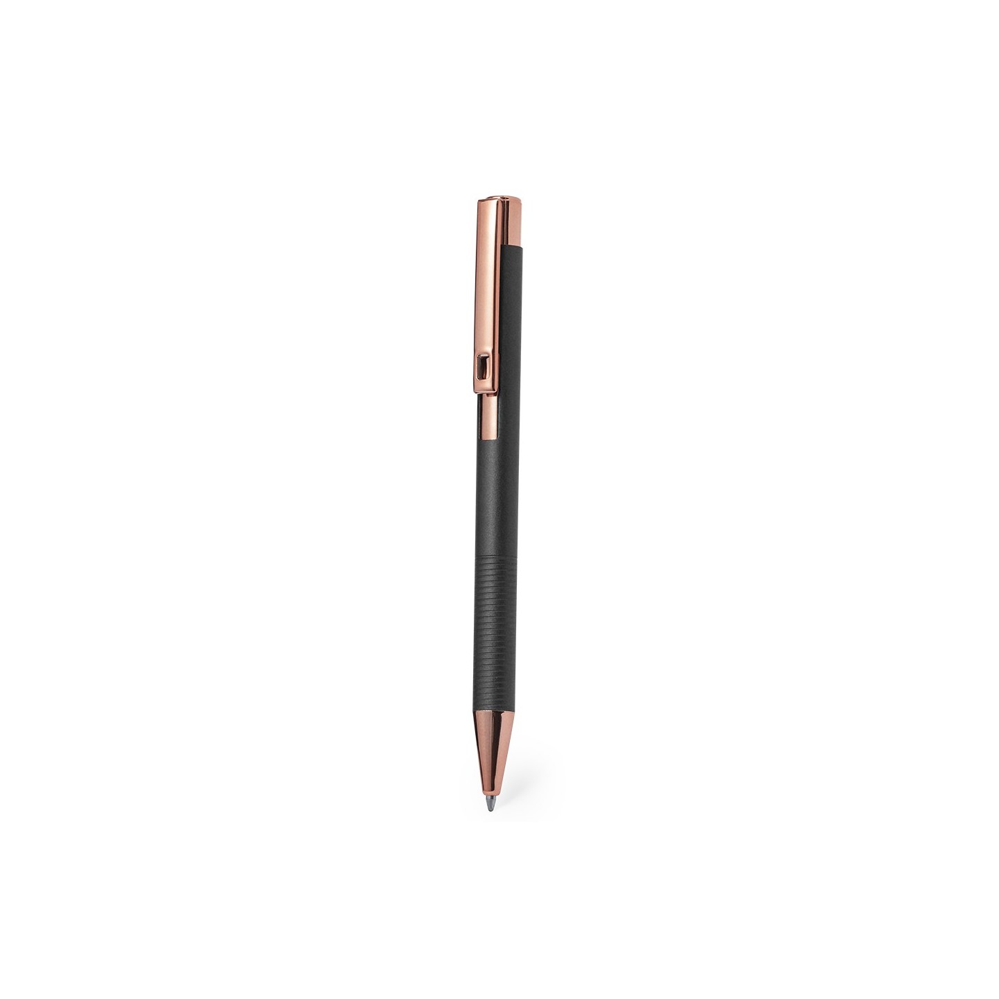 El Bolígrafo Raitox presenta un cuerpo robusto y sofisticado, fabricado en resistente aluminio de acabado mate. Los elementos decorativos en elegante color cobre añaden un toque de distinción al diseño, mientras que la caña está disponible en una amplia gama de colores distintivos.