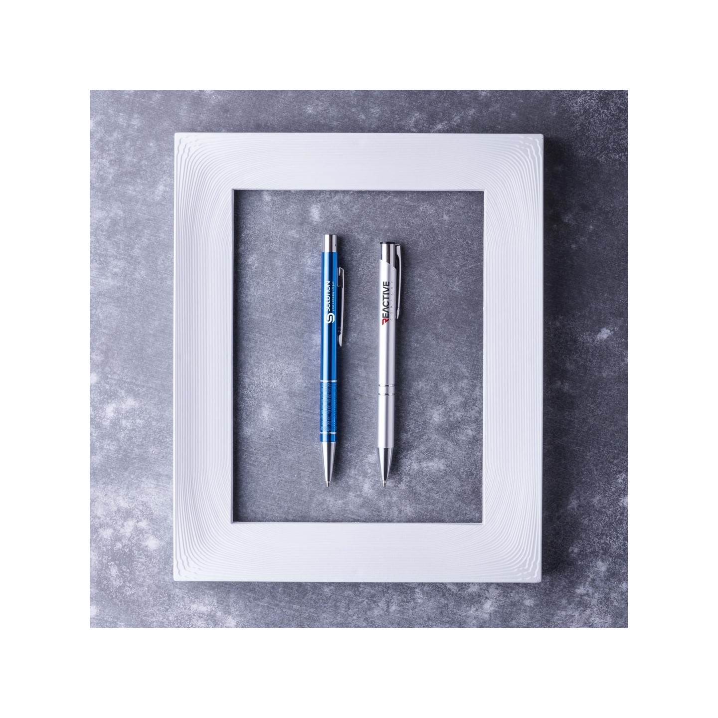Descubre el original Bolígrafo Trocum, con su elegante diseño bicolor, cuerpo troquelado en aluminio y tinta azul de calidad. ¡Destaca con estilo!