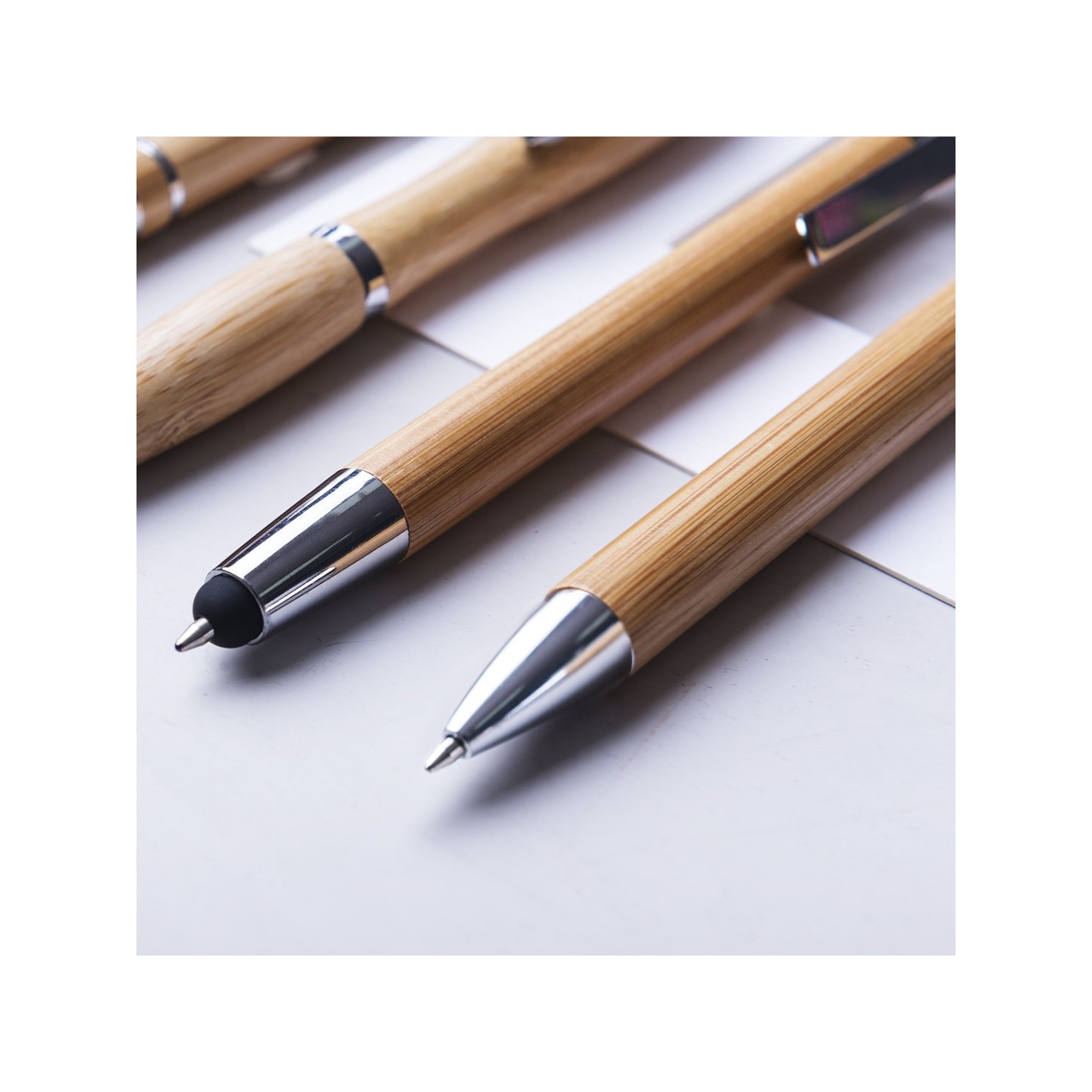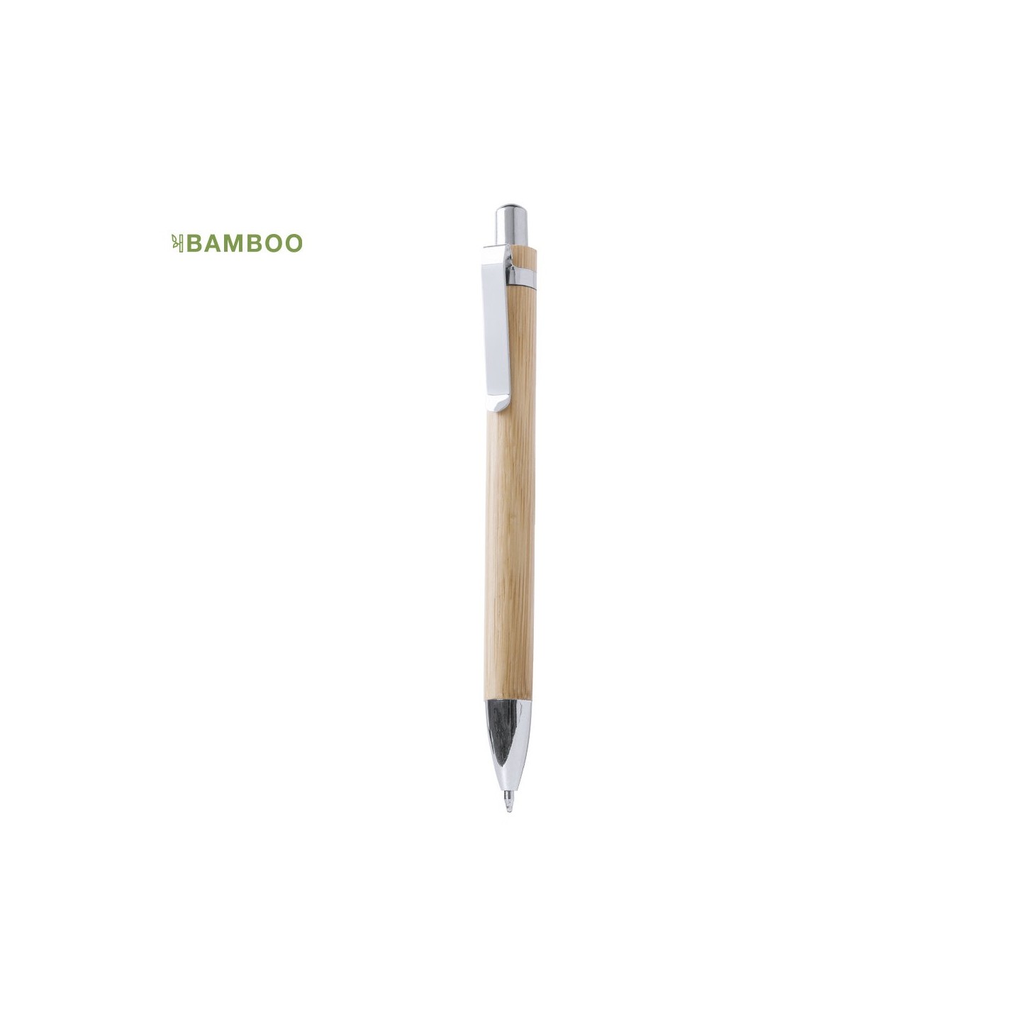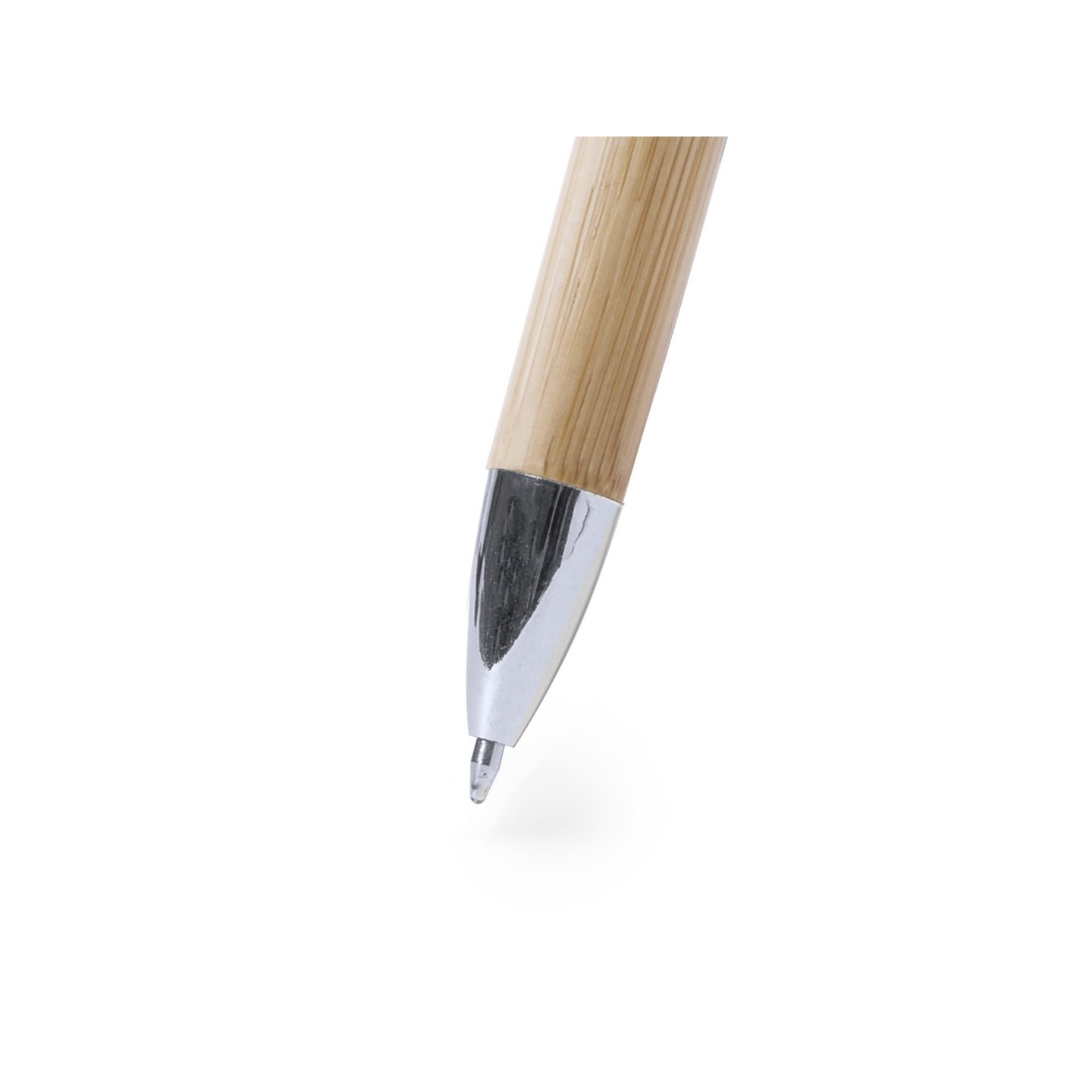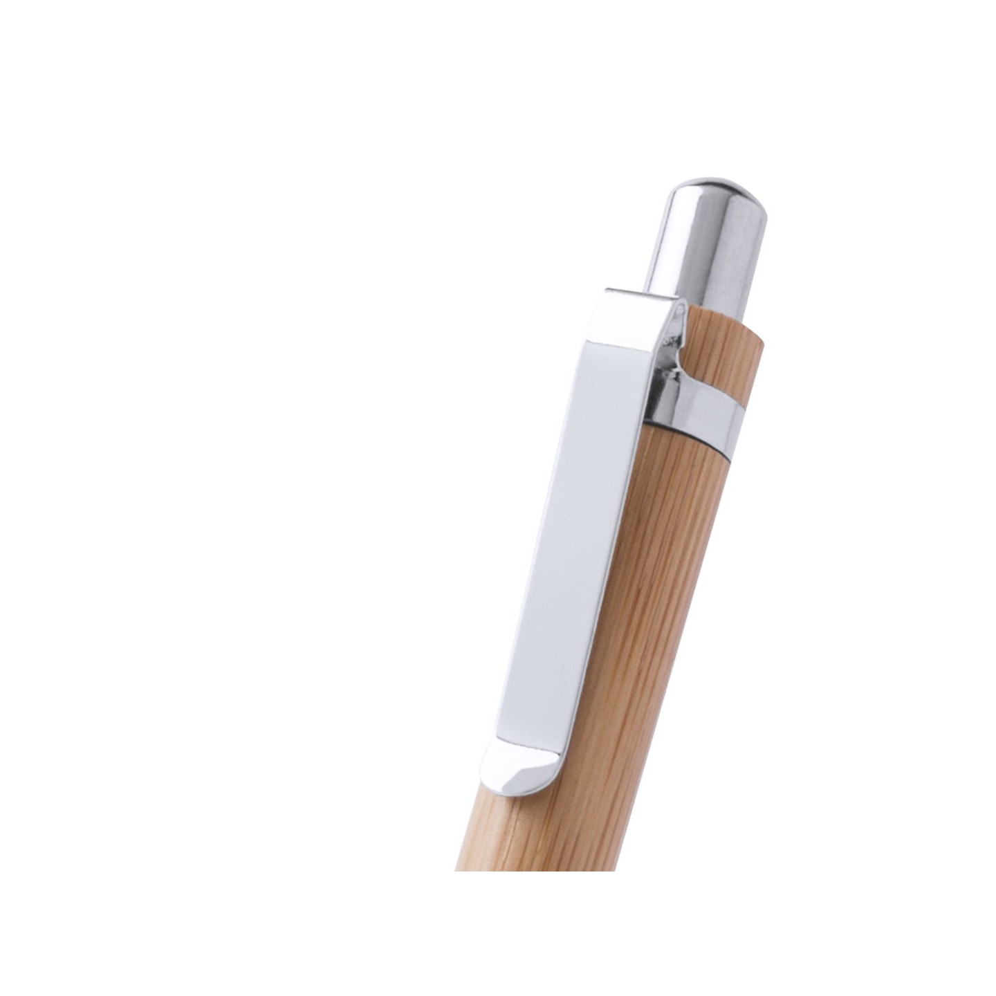 Su cuerpo está hecho de madera de bambú natural, lo que le brinda un aspecto único y atractivo. El bambú es un material renovable y respetuoso con el medio ambiente, lo que hace que este bolígrafo sea una elección consciente para empresas comprometidas con la sostenibilidad.