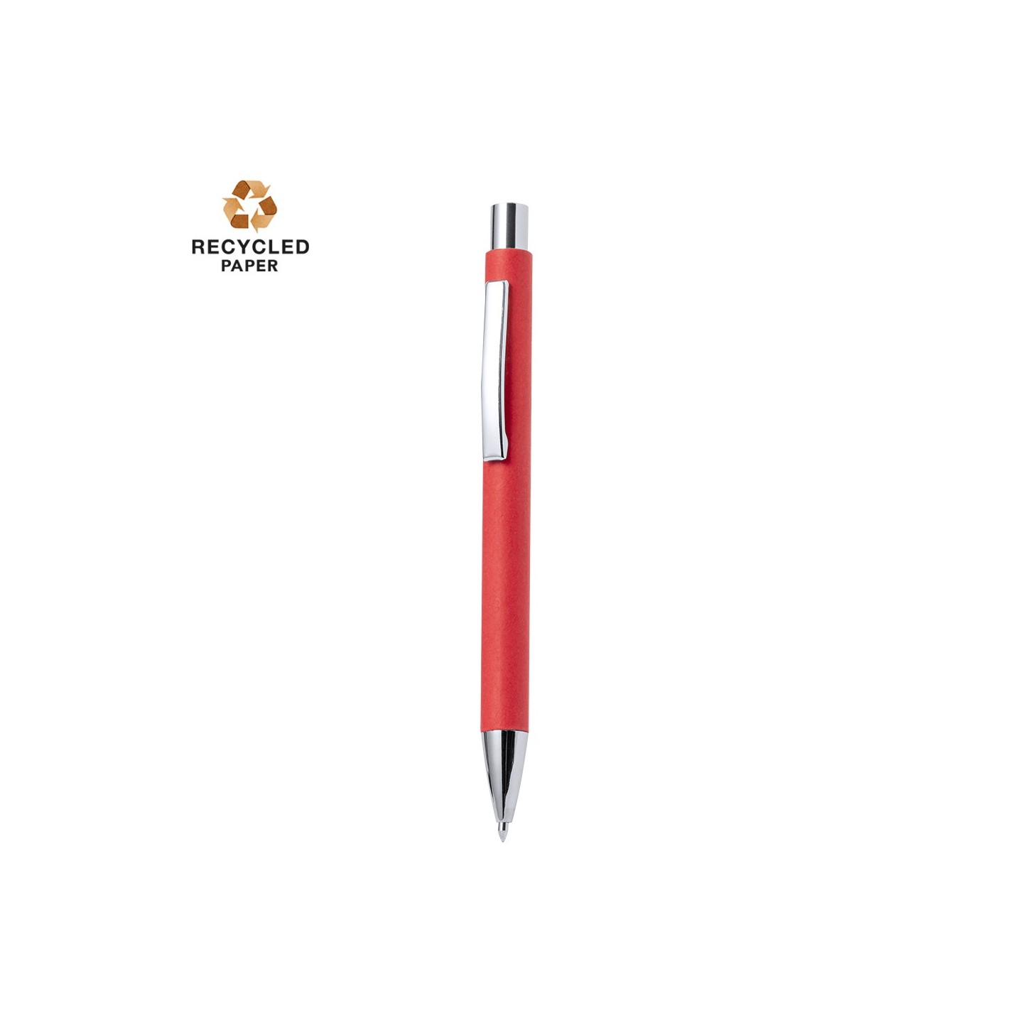 El Bolígrafo Dynix tiene cuerpo en papel reciclado y accesorios metálicos plateados. Personalizable con tu logo. ¡Elegancia y sostenibilidad para tu marca!