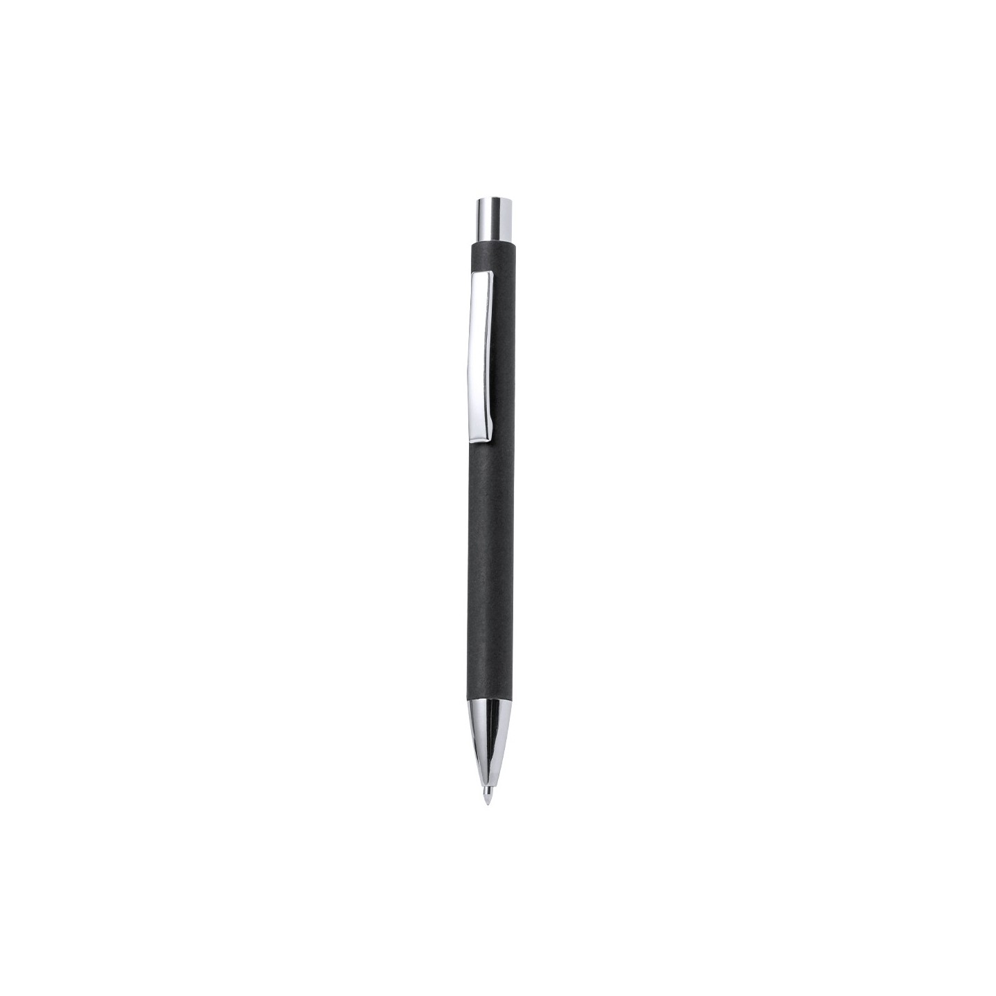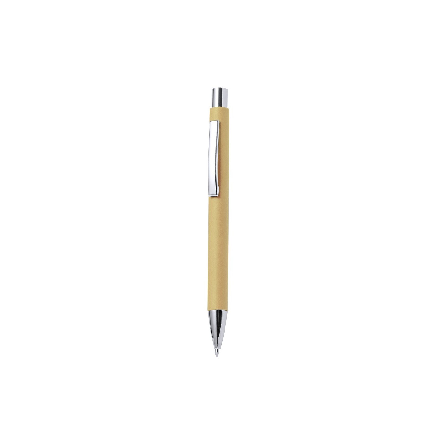 El Bolígrafo Dynix destaca por su cuerpo en papel reciclado, una elección consciente que contribuye a la preservación de recursos naturales y a la reducción de residuos. Los accesorios de acabado metálico en color plateado brillante añaden un toque de distinción y durabilidad al diseño.