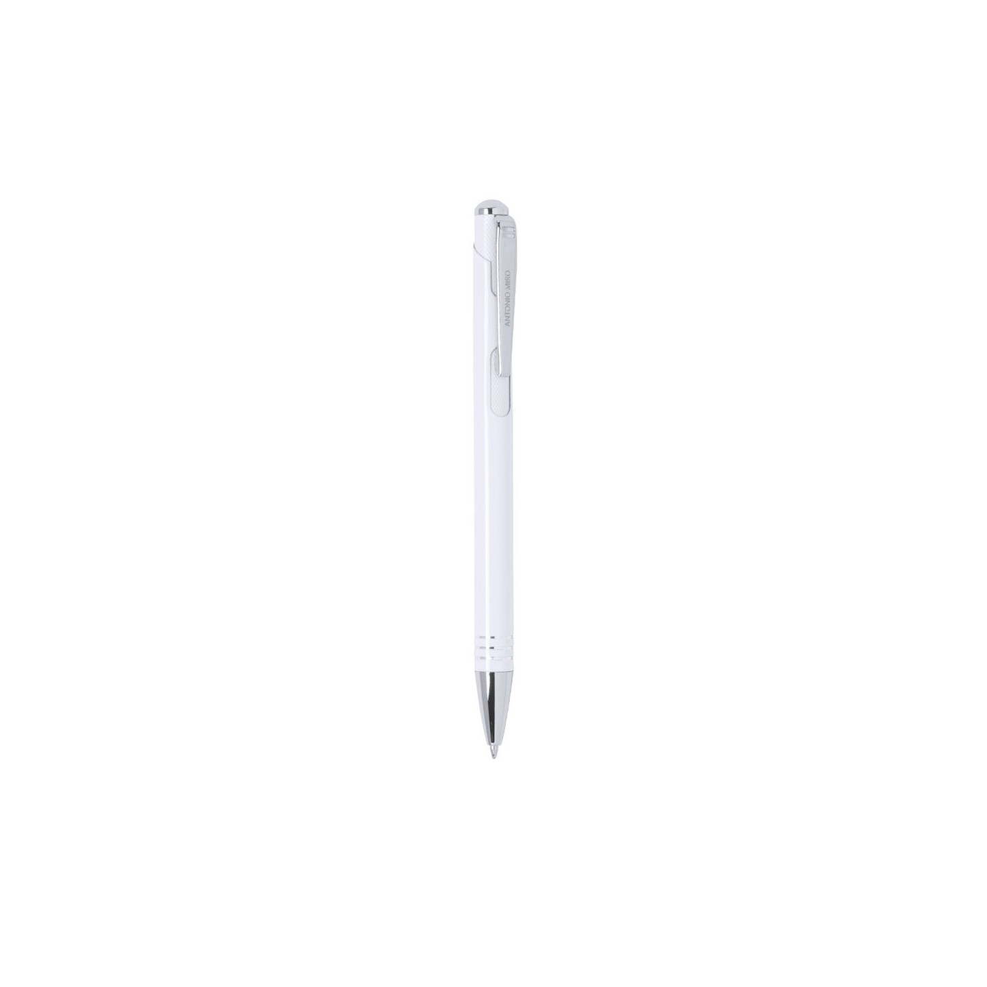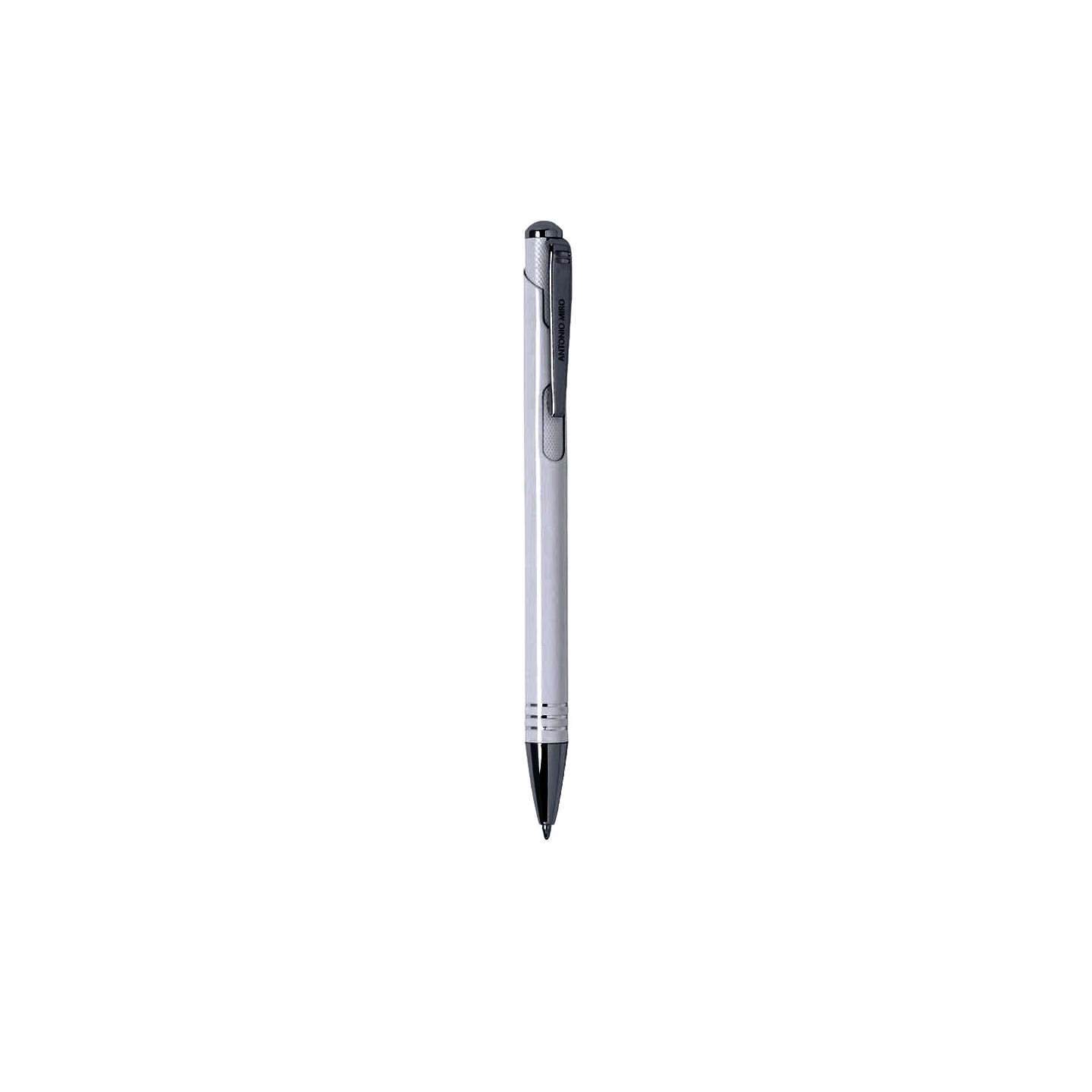 El cuerpo del bolígrafo está fabricado en aluminio, lo que le confiere una apariencia sofisticada y duradera. Los accesorios del bolígrafo, como el clip y la parte superior, tienen un acabado en color plateado que agrega un toque de elegancia.
