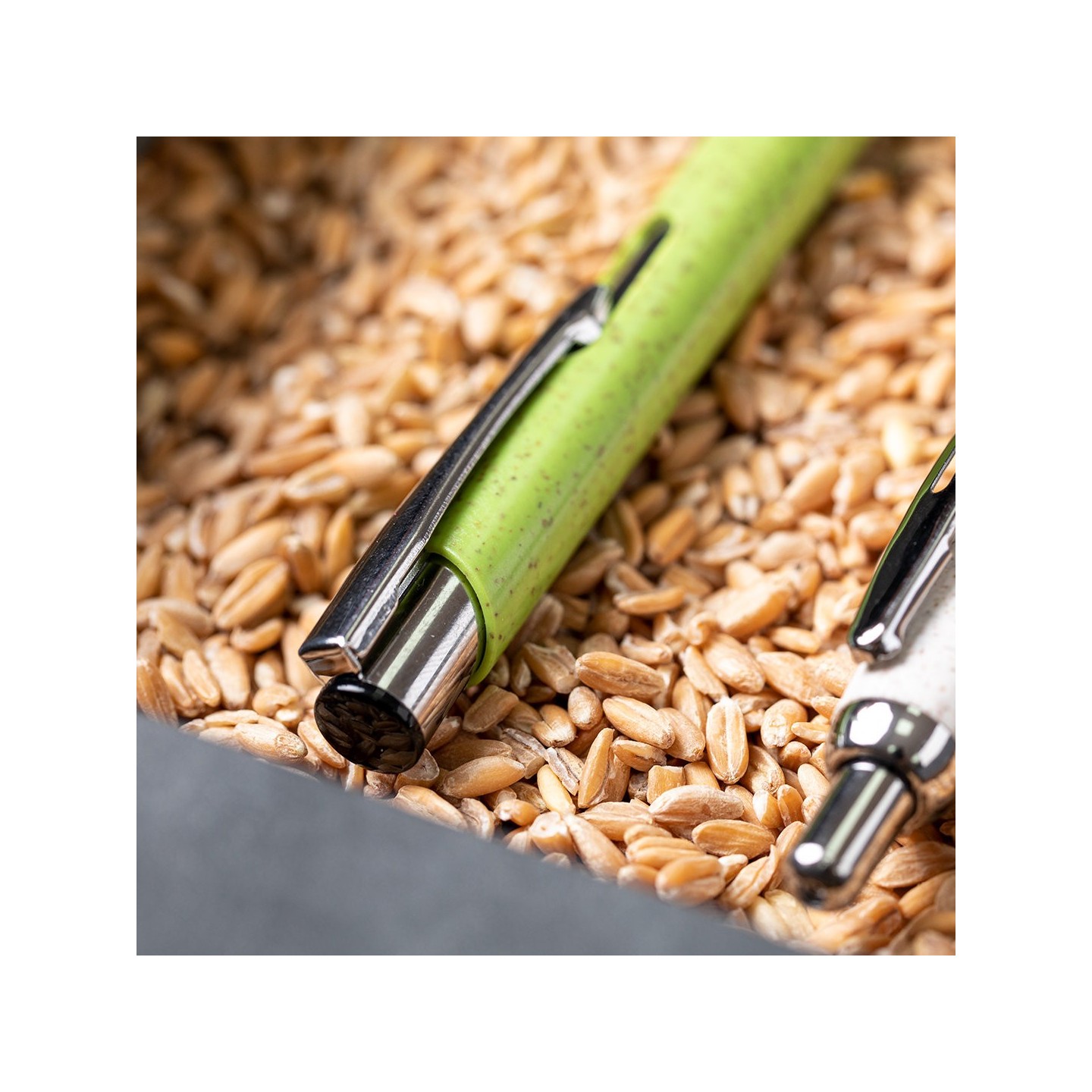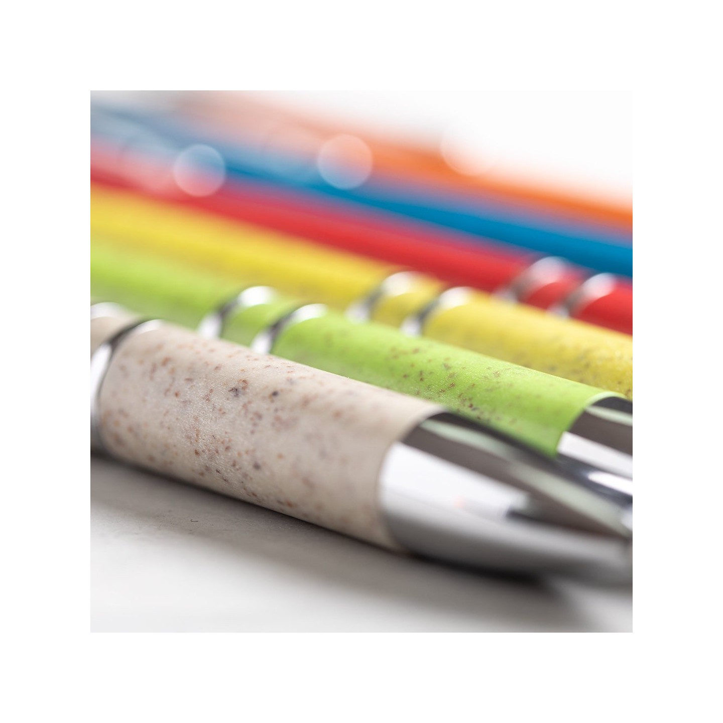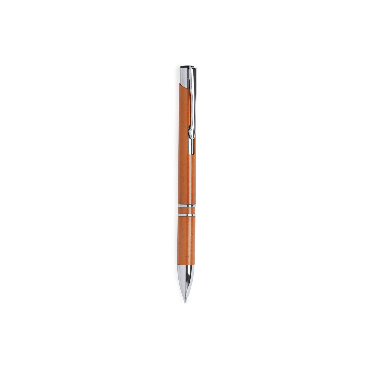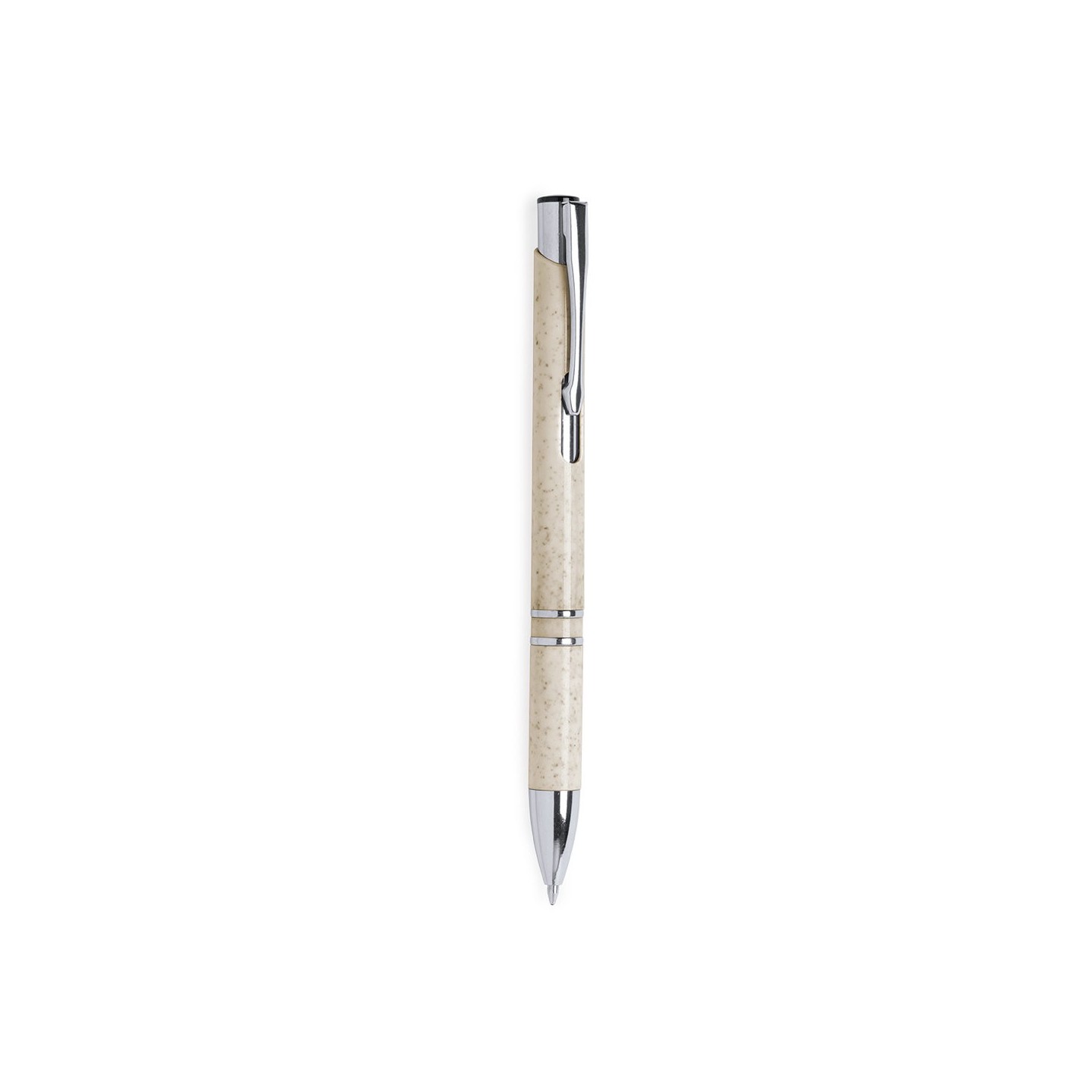 El bolígrafo Nukot, con cuerpo en caña de trigo y accesorios cromados, combina sostenibilidad y elegancia. Mecanismo pulsador, tinta azul y colores nature. Regalos personalizados con conciencia ambiental.