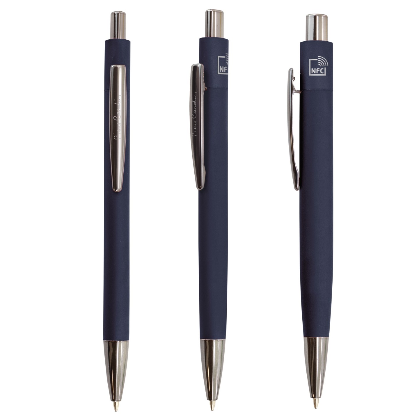 El Bolígrafo Pierre Cardin Función NFC MAXWELL es la combinación perfecta de elegancia, innovación y tecnología. Fabricado en aluminio y el respaldo de la prestigiosa marca Pierre Cardin, este bolígrafo no solo ofrece una experiencia de escritura superior, sino que también incorpora la tecnología NFC, una nueva forma de conectar y promocionar tu negocio.
