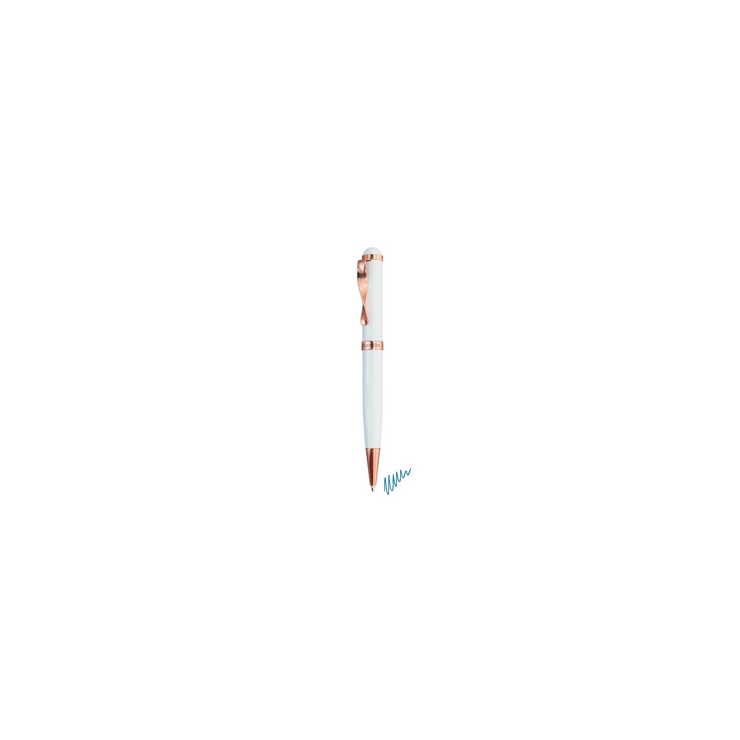 El Bolígrafo Pierre Cardín JANSEN presenta un diseño elegante con cuerpo blanco y detalles en oro rosado. Ideal para un uso profesional o personal, con tinta azul de calidad y estuche incluido