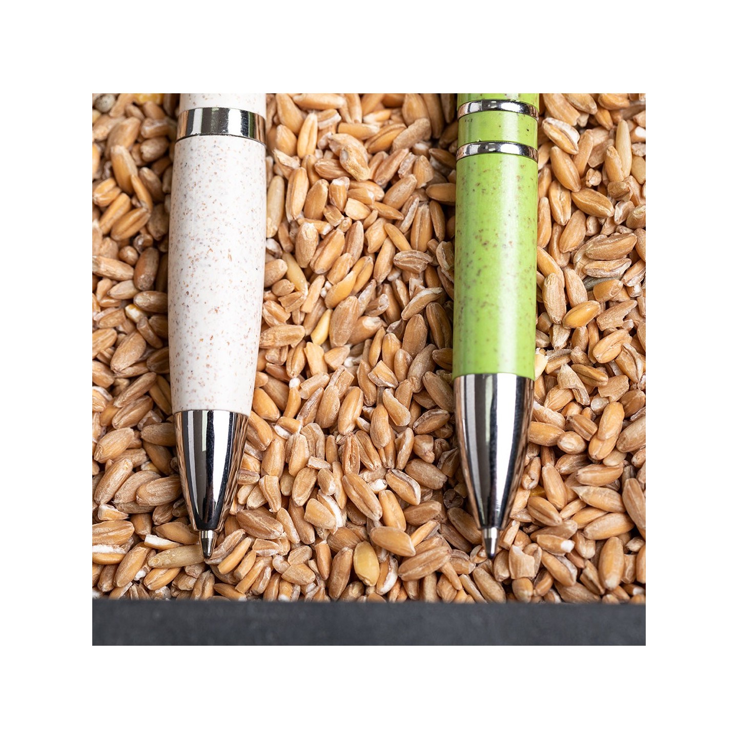 Descubre el Bolígrafo Prodox, una opción ecológica y sostenible para tus regalos personalizados. Este bolígrafo pertenece a la línea nature y destaca por su cuerpo fabricado en caña de trigo, lo que fomenta el uso de materias primas naturales y contribuye a la reducción de emisiones contaminantes.