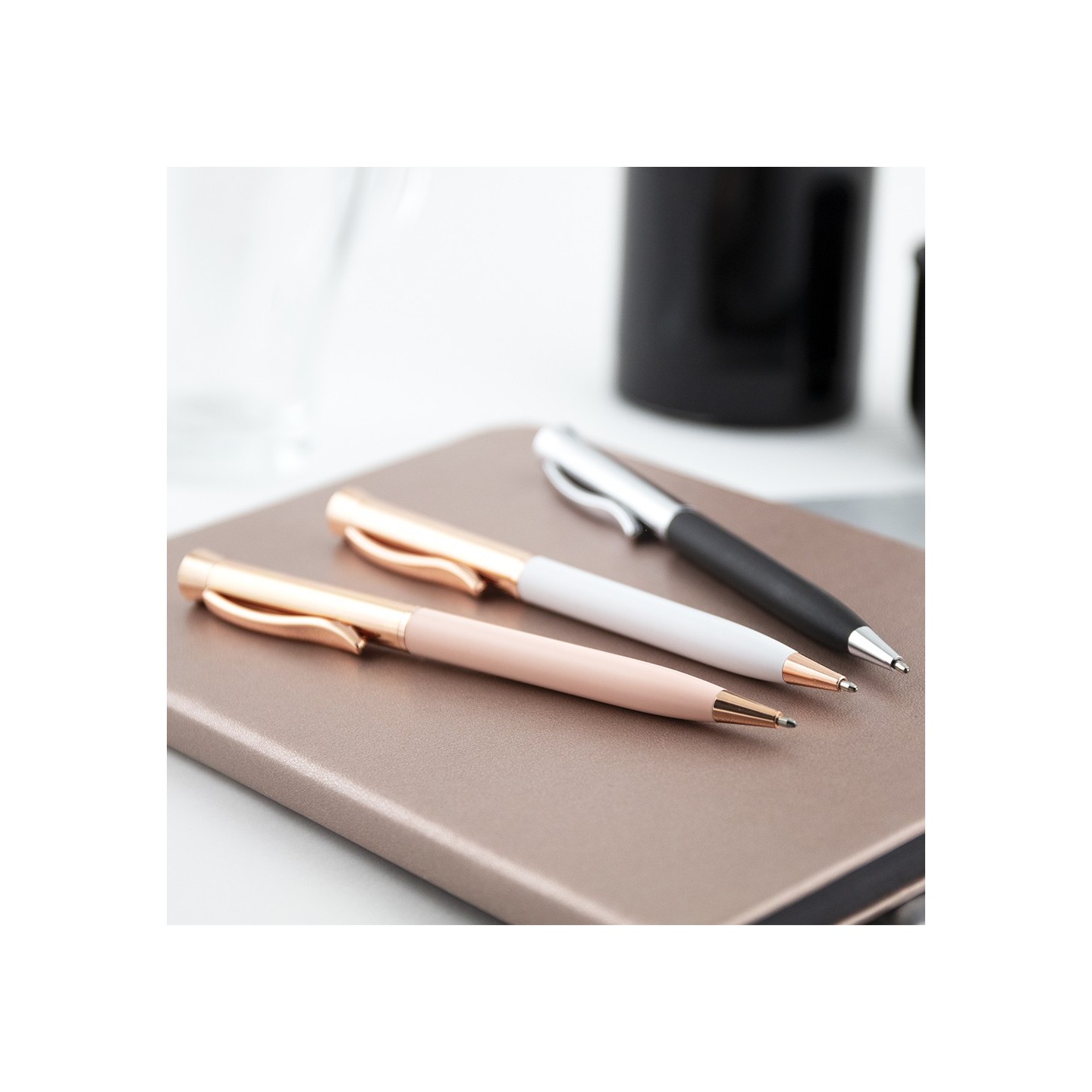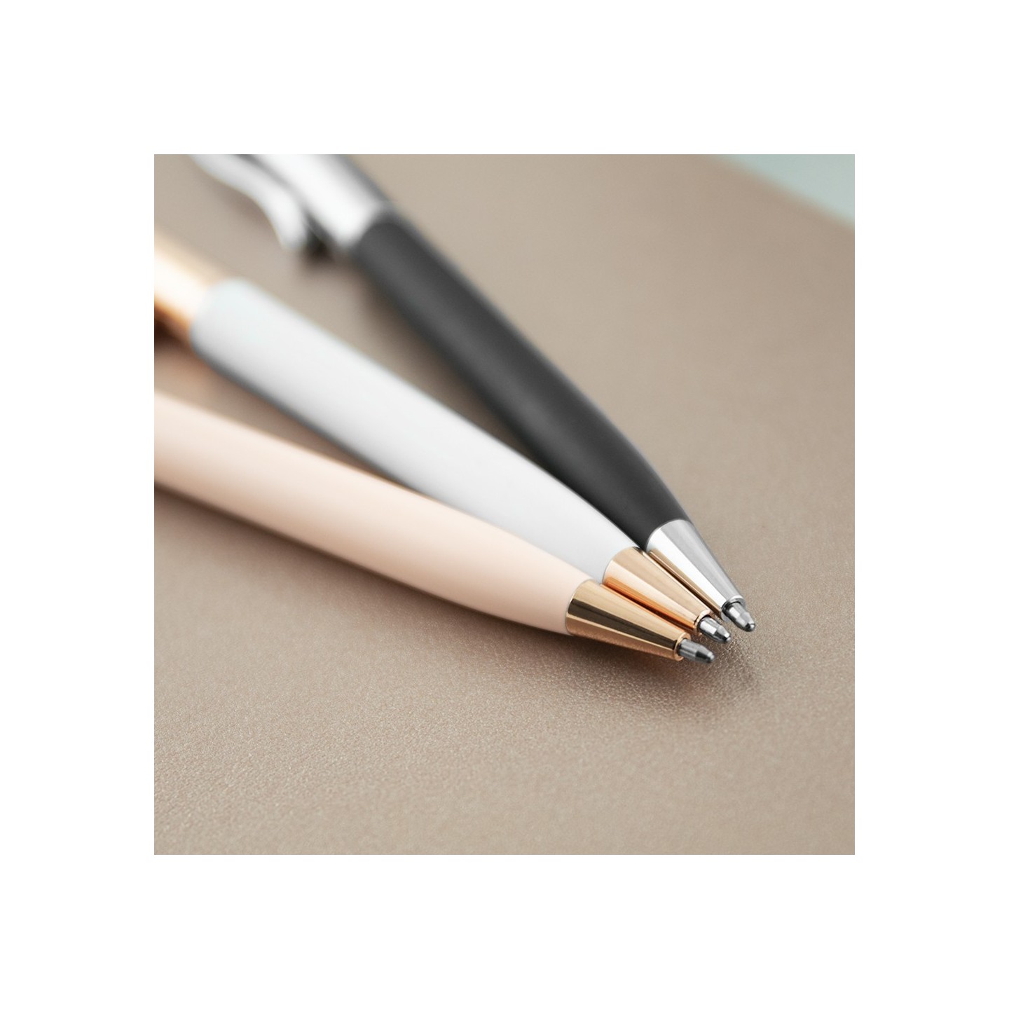 Cada trazo con el Bolígrafo Rich es una experiencia única. El cuerpo lacado proporciona una superficie suave al tacto, mientras que los terminales metalizados añaden un toque de distinción. Con una variedad de colores disponibles, puedes elegir el bolígrafo que mejor se adapte a la identidad y estilo de tu empresa.
