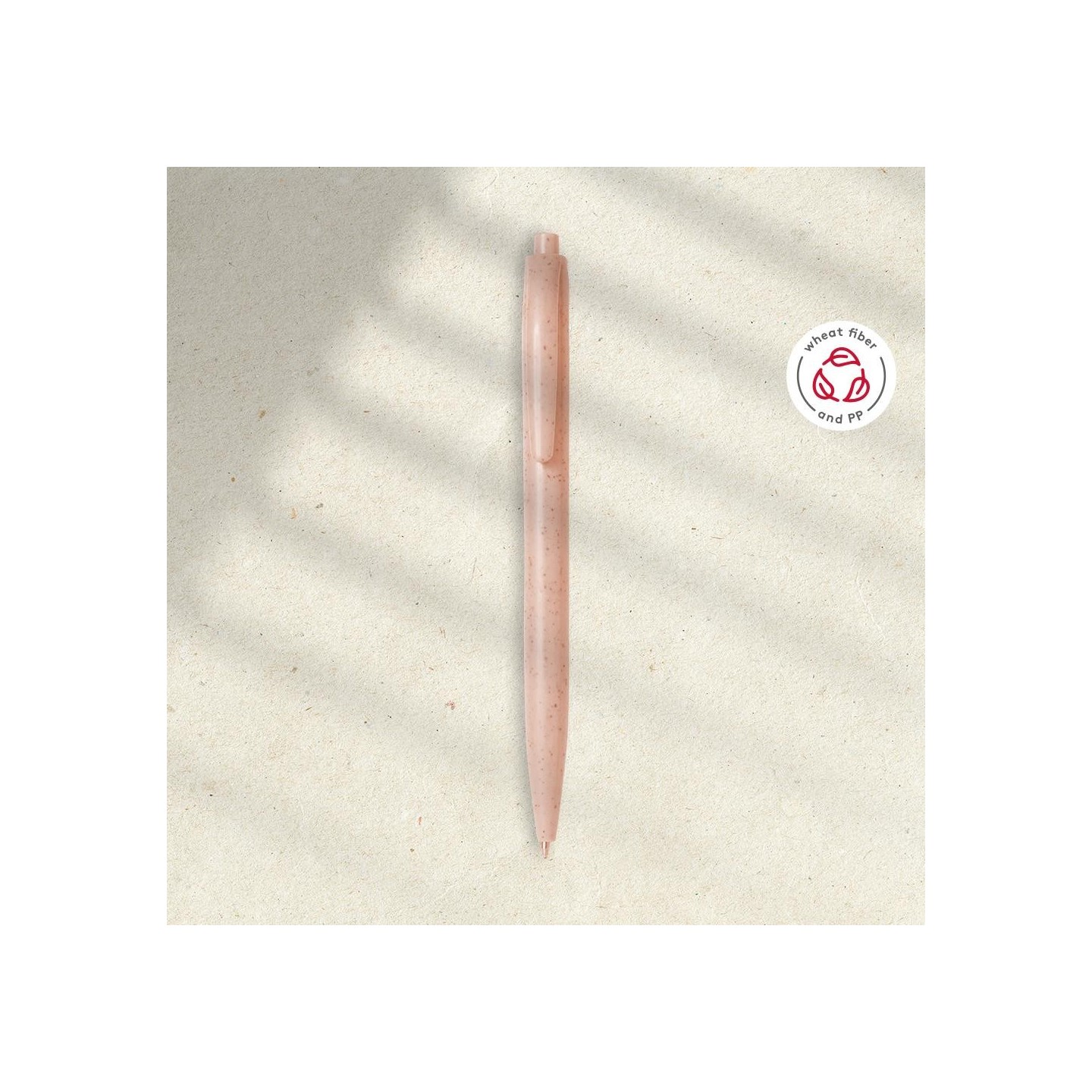 El Bolígrafo Ska es pura innovación sostenible con mezcla de PP y fibra de trigo. Tinta azul suave. Certificaciones RoHS y MSDS para seguridad ambiental.