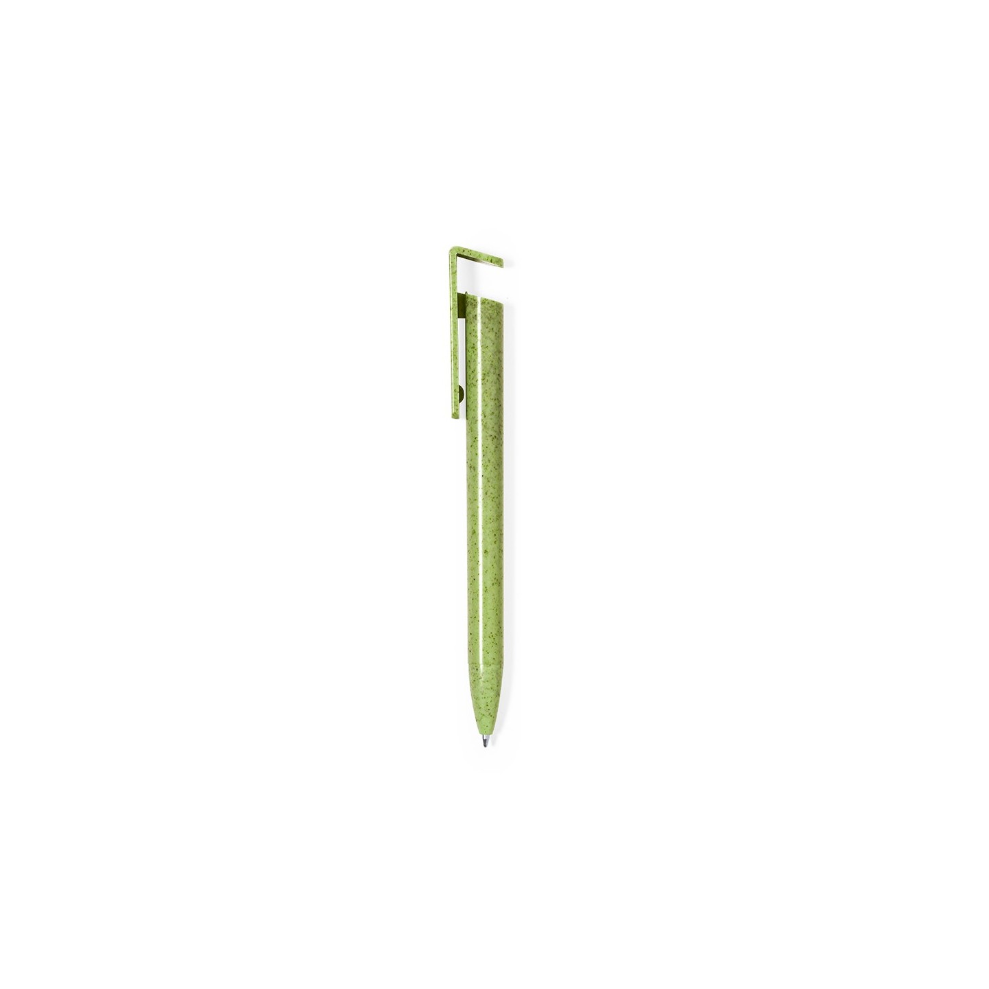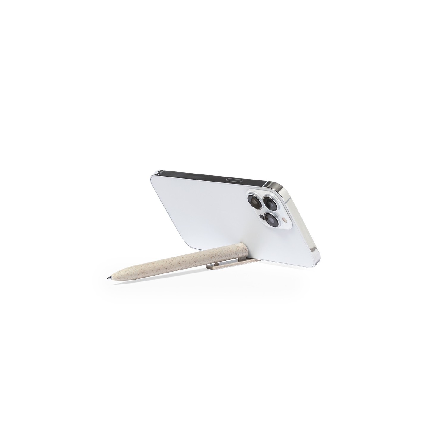 Este bolígrafo, fabricado en caña de trigo y ABS, combina la elegancia de su diseño con la practicidad de un soporte integrado en el clip, ideal para mantener el dispositivo móvil mientras se escribe.