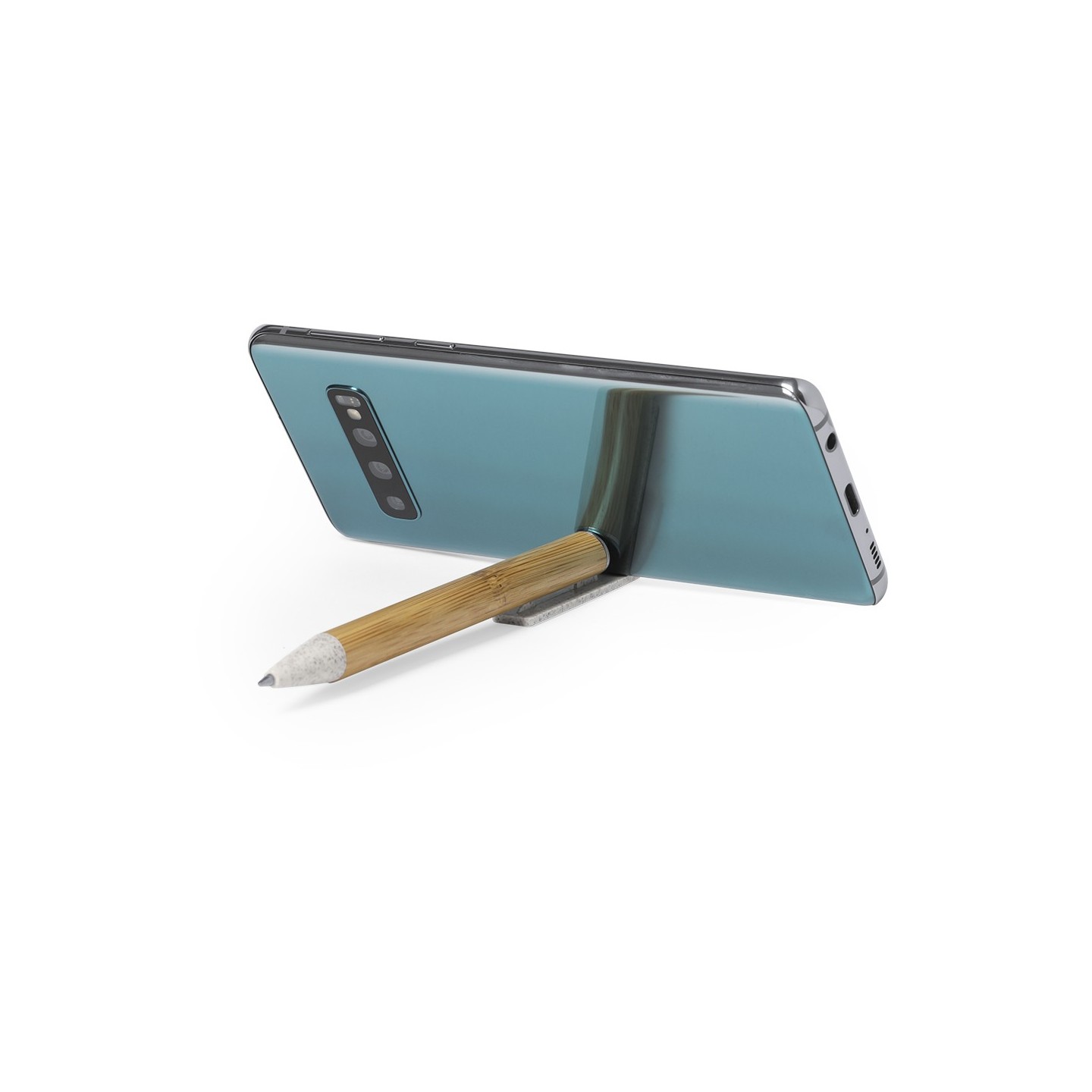 Descubre la versatilidad y la sostenibilidad con nuestro Bolígrafo Soporte Zonta, una herramienta innovadora que combina funcionalidad y compromiso ambiental. Fabricado en bambú y caña de trigo, este bolígrafo no solo ofrece una experiencia de escritura excepcional, sino que también cuenta con un práctico soporte integrado para dispositivos móviles.