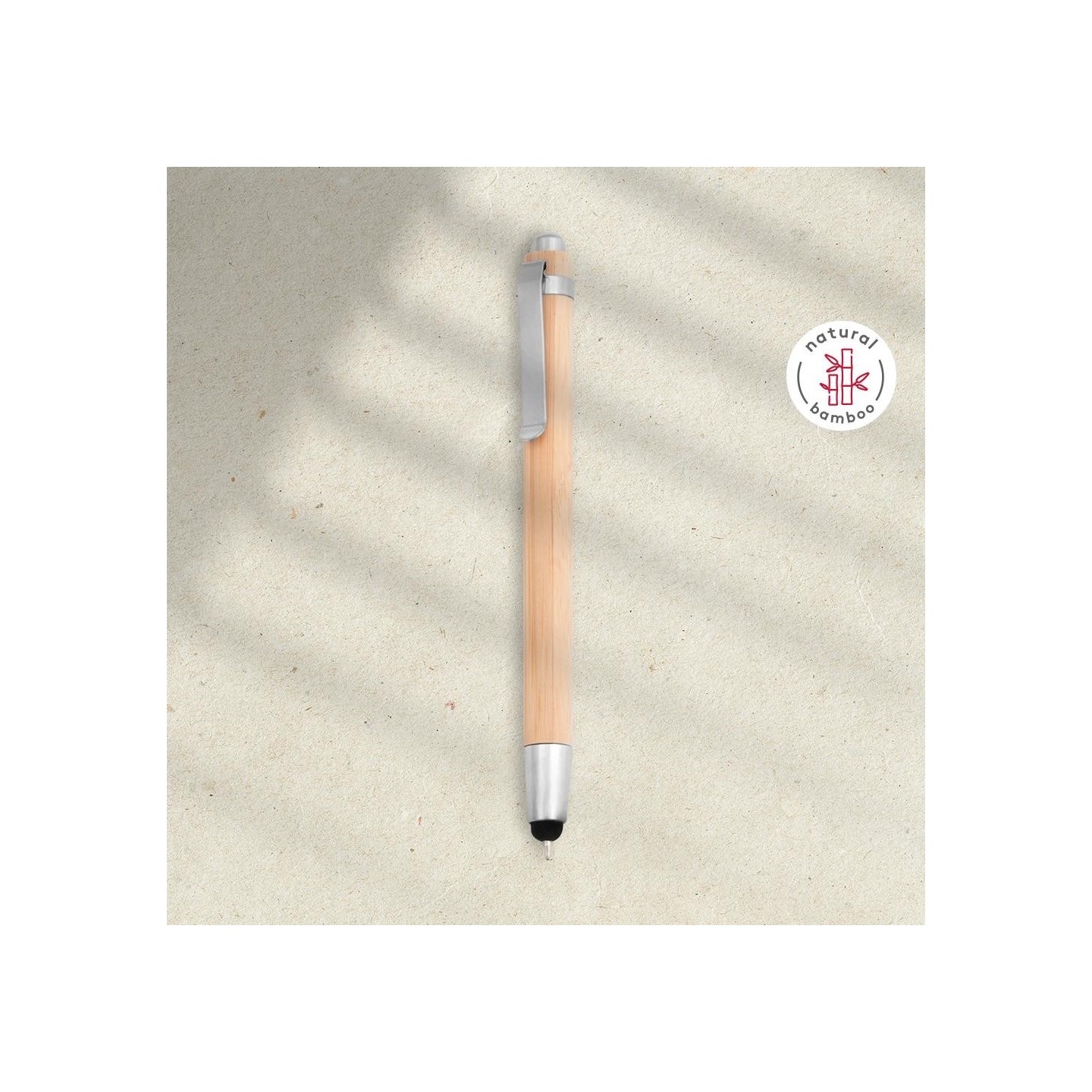 Descubre la fusión eco-chic con nuestro Bolígrafo Touch Bamboo. Bambú natural, metal, puntero táctil y tinta azul. Sostenibilidad con estilo en cada trazo.