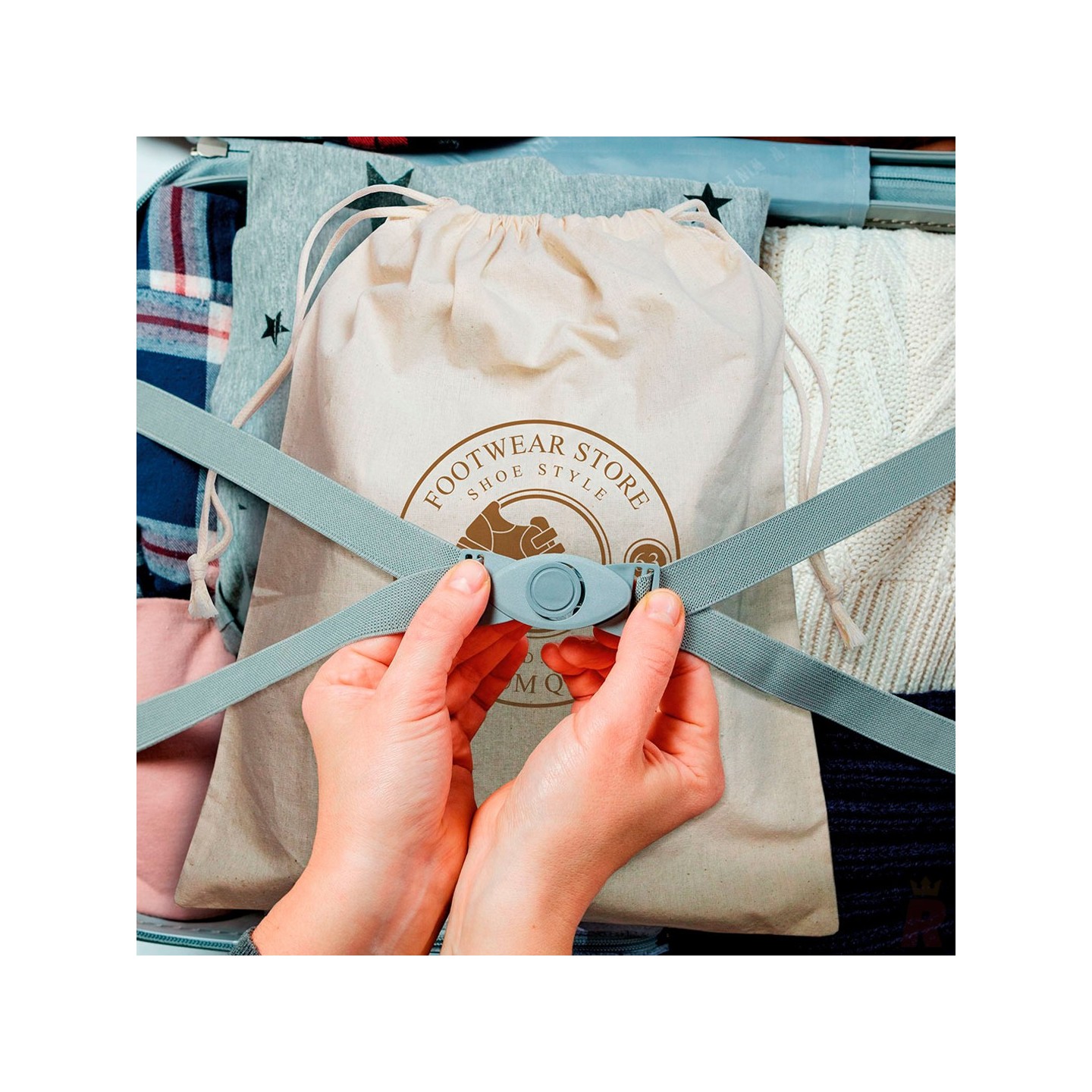 Bolsa ajustable algodón 100% con autocierre cuerdas. Ligera, resistente y reutilizable, ideal para viajes, hoteles o uso diario. Personalizable con tu logotipo