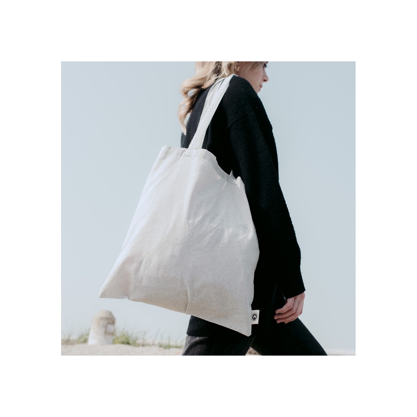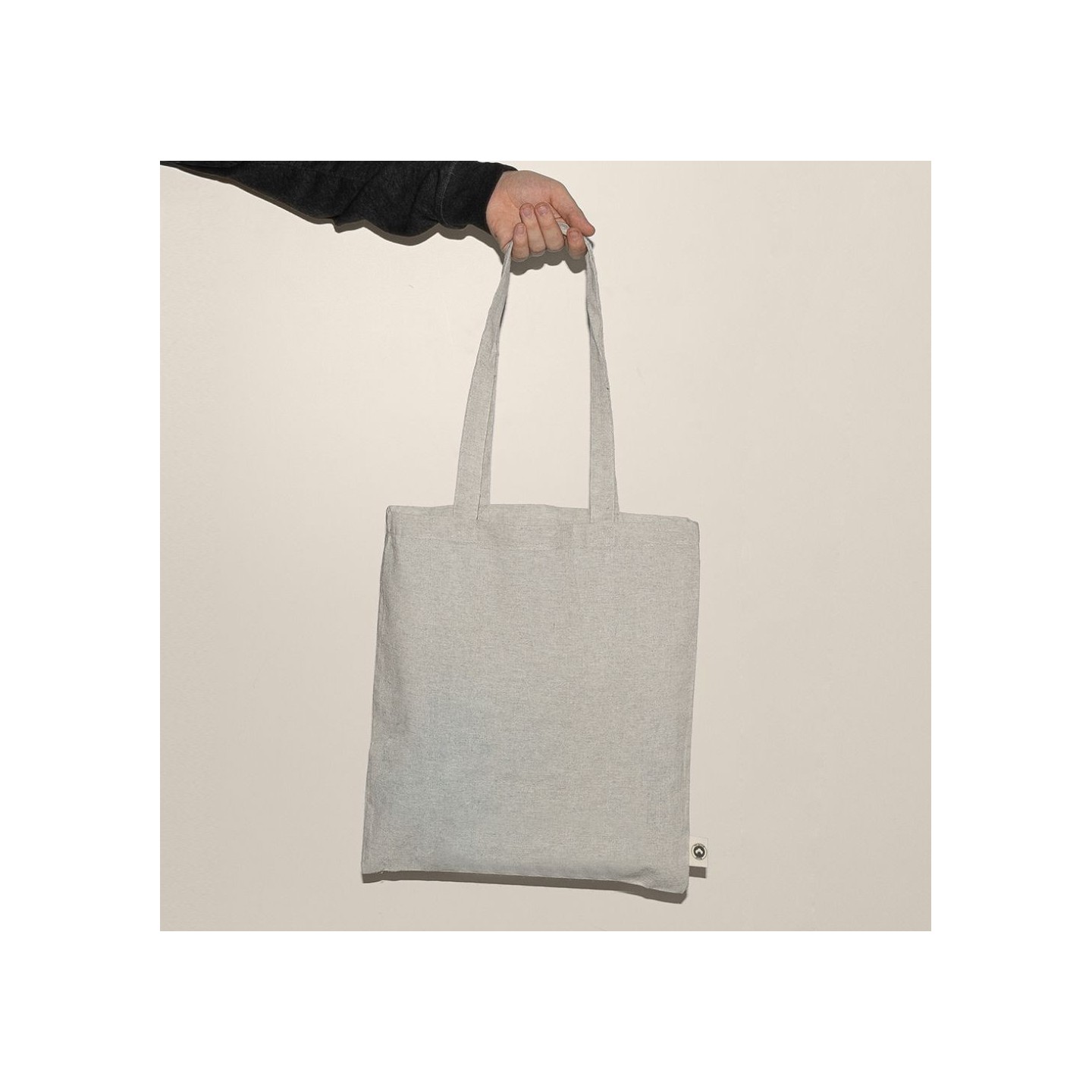 La Bolsa Algodón Waterfall es de asas largas, algodón reciclado 140gr/m2. Elegancia y sostenibilidad en una bolsa perfecta para compras