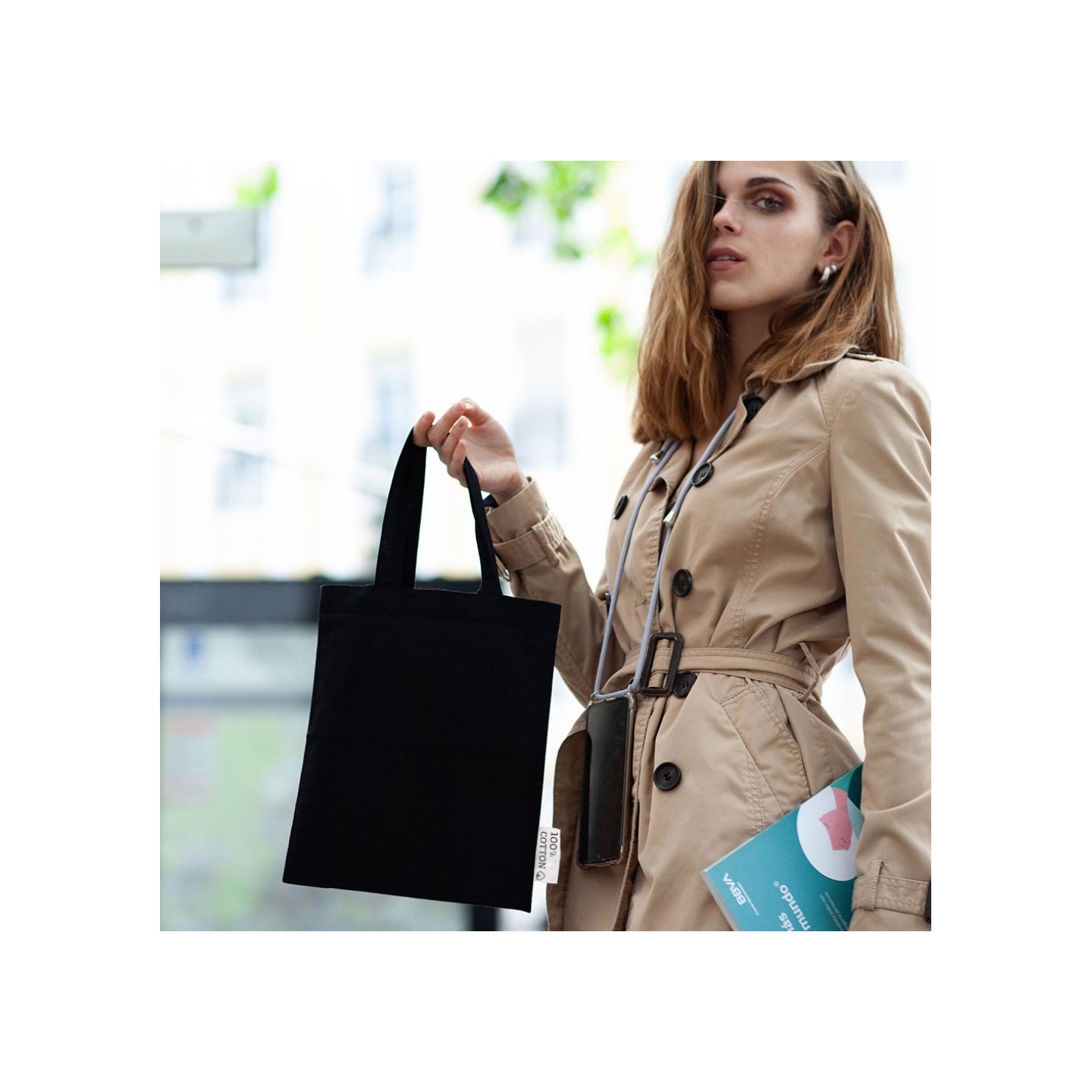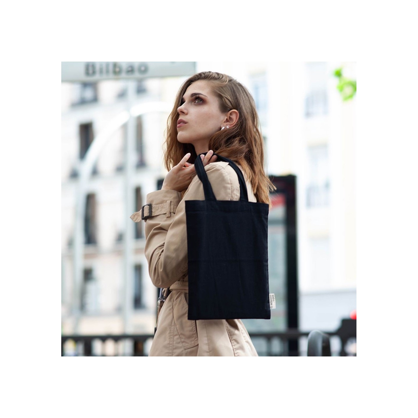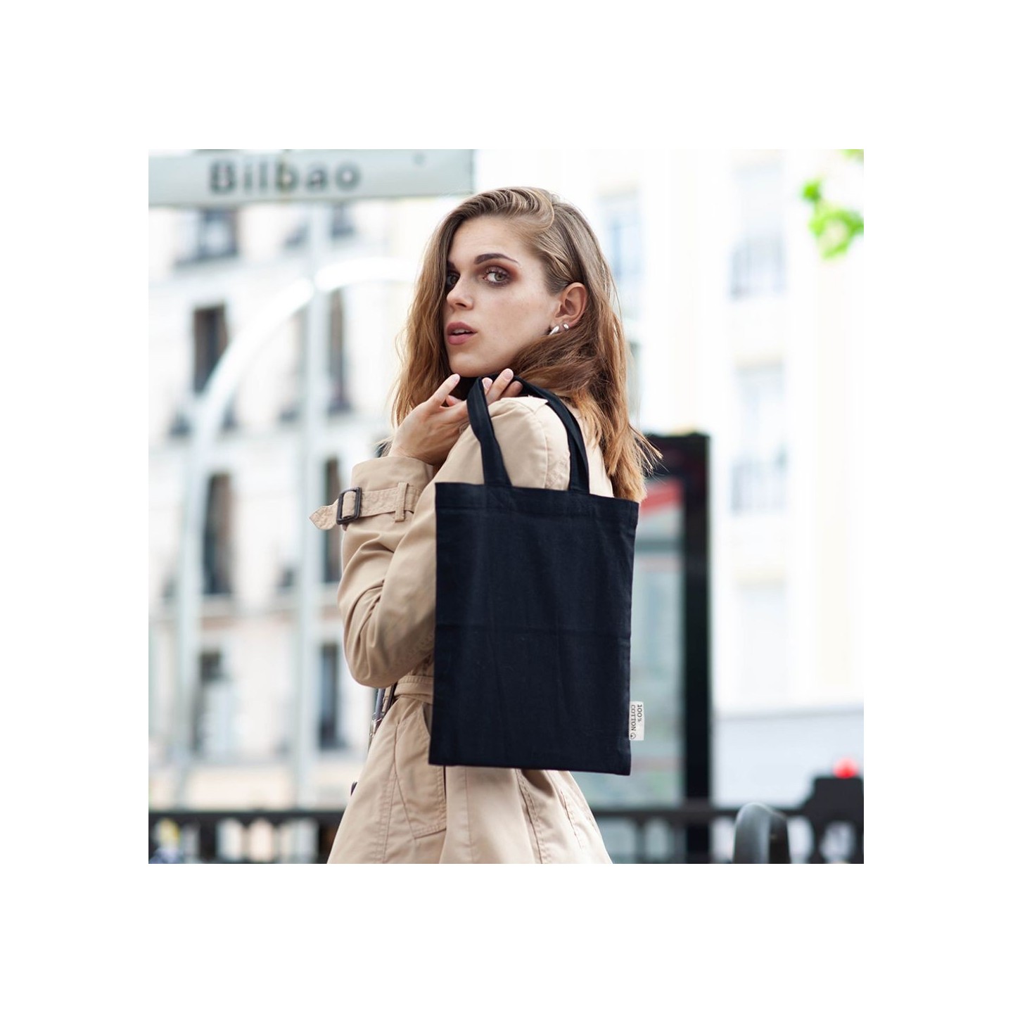 La Bolsa Axel Negra está fabricada en algodón 100%, 120 gr/m², asas de 30 cm. Ideal para presentaciones y personalización exclusiva