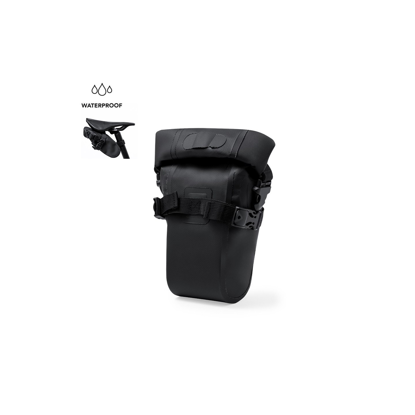 Bolsa impermeable para bicicleta con acoples para sillín y tija, cierre de hebilla y sistema plegable. ¡Protege tus pertenencias en cualquier clima!