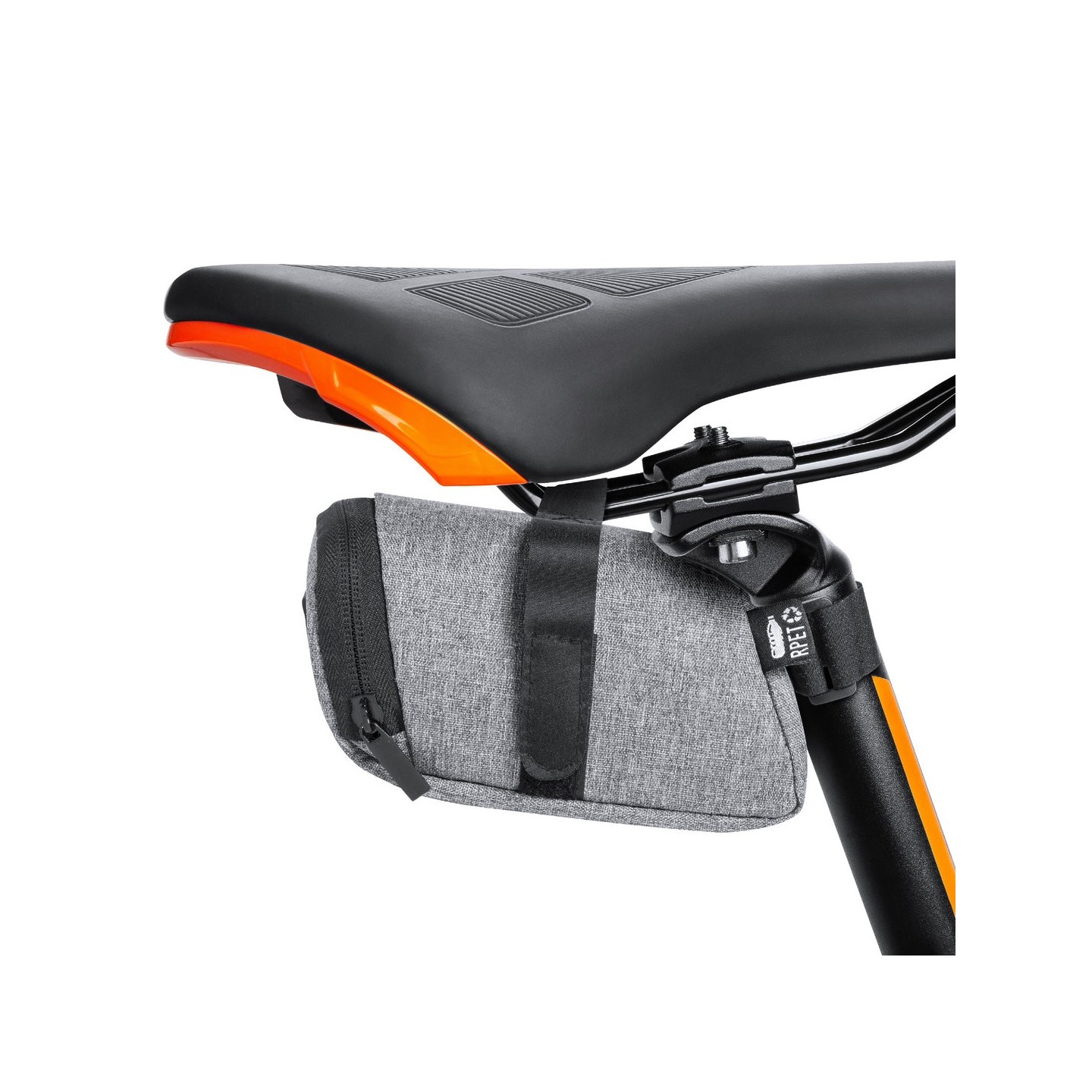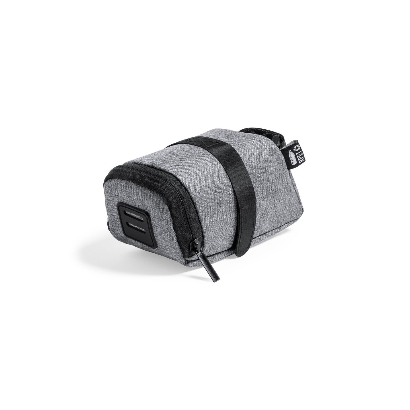 Bolsa para sillín de bicicleta resistente y ecológica. Fabricada en RPET 600D y acolchada para mayor comodidad. Con cierre de cremallera y distintivo RPET en etiqueta.
