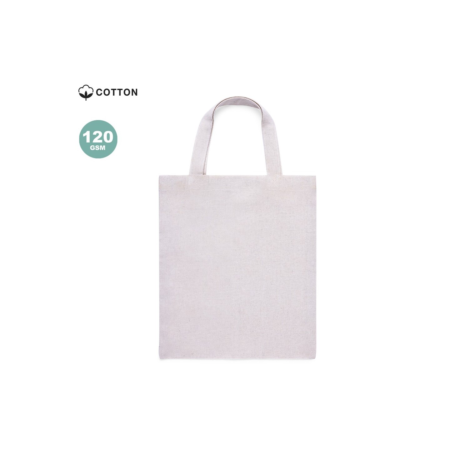 Bolsa de algodón 100%, resistente y con acabado natural. Asas cortas reforzadas para mayor comodidad. Ideal para llevar tus cosas del día a día.