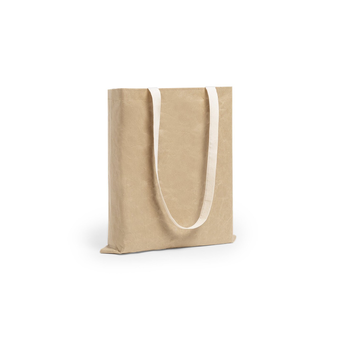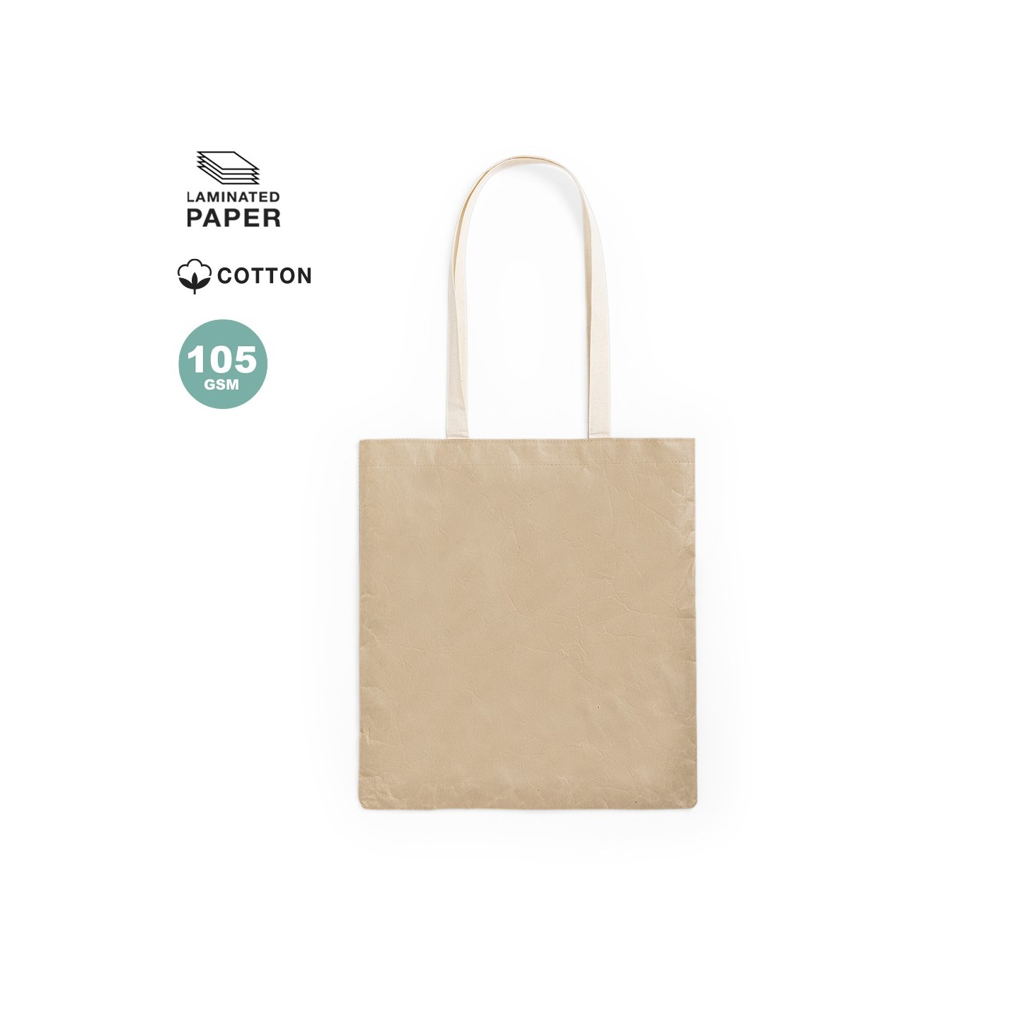 Bolsa Curiel en papel laminado de 105g/m2, resistente y con asas de algodón naturales. Acabado cosido y resistente hasta 8kg de peso.