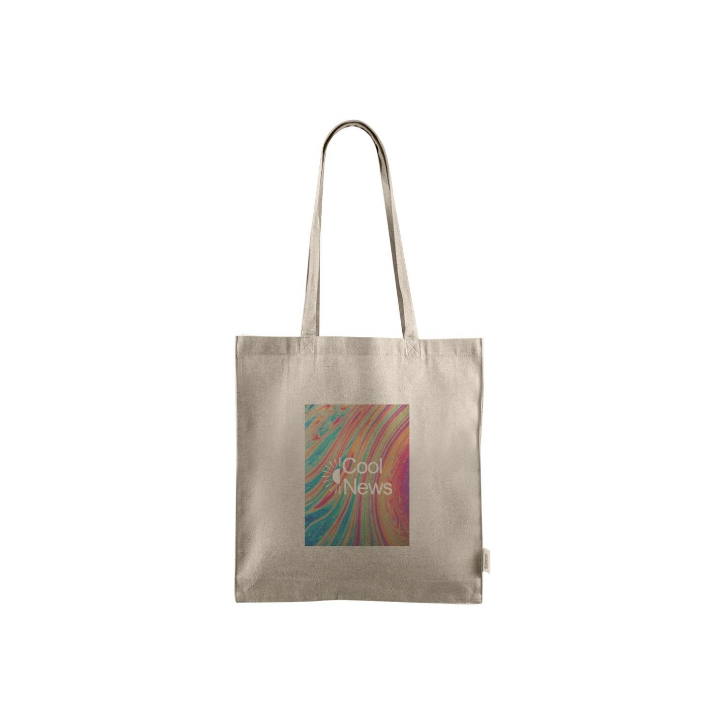 La Bolsa Cuzco es de asas largas (38x13x41 cm) de algodón reciclado (200 gr/m²). La elección sostenible para tu día a día corporativo
