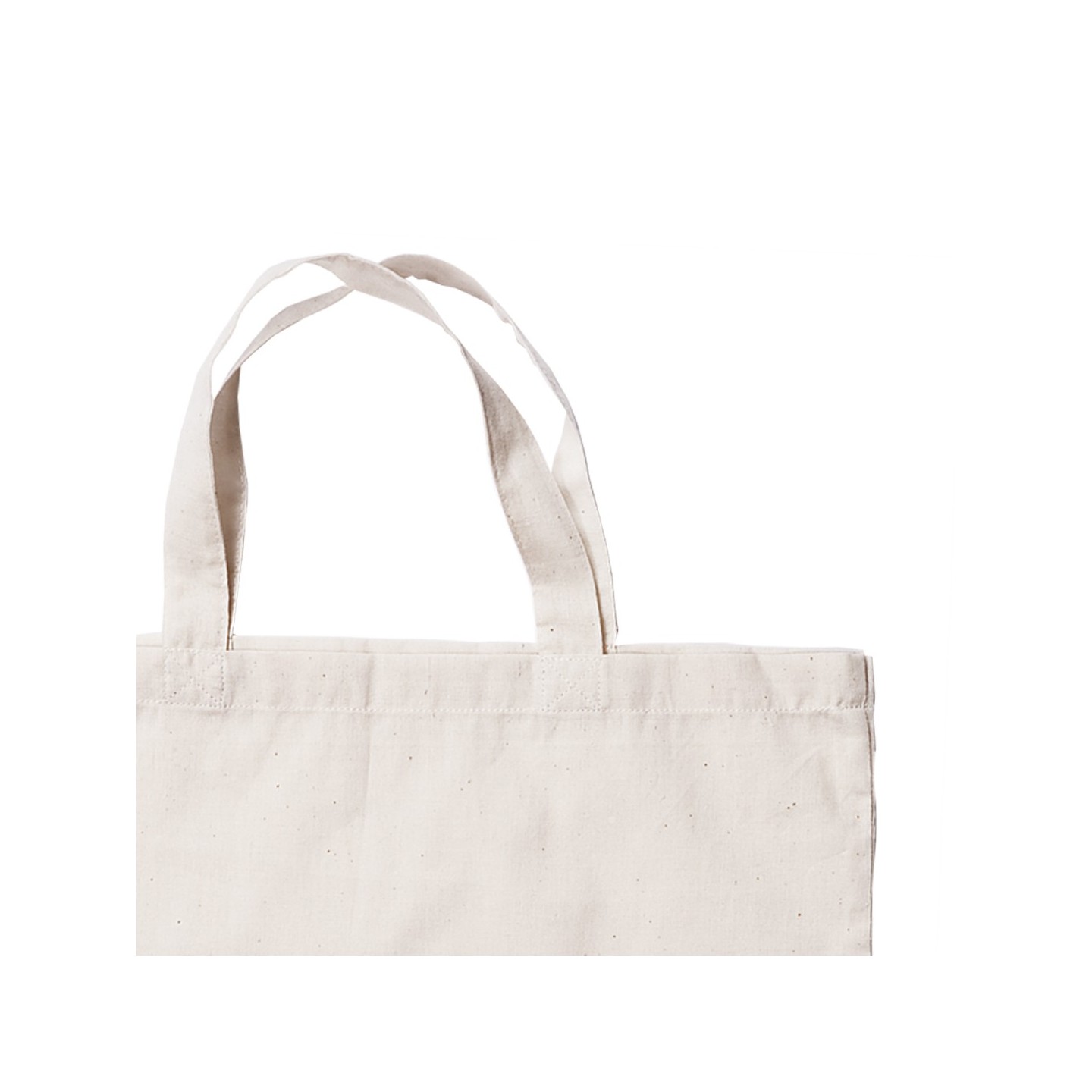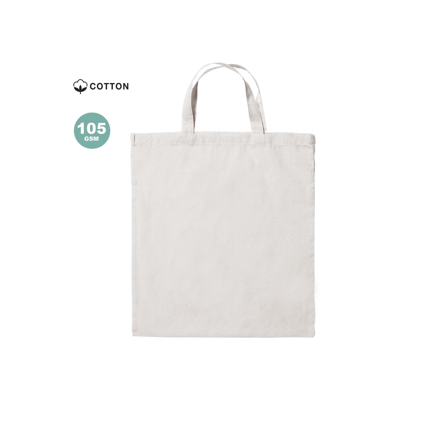 Bolsa de algodón natural con asas cortas y resistencia de hasta 7kg. Ideal para llevar tus compras o artículos personales.