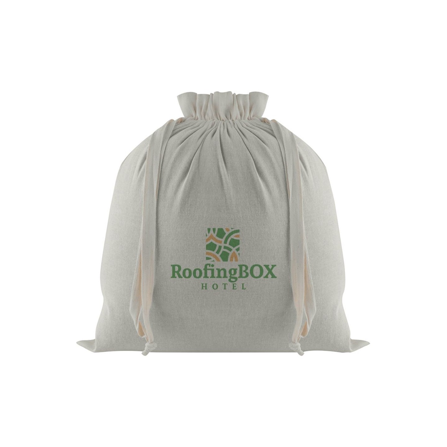 La Bolsa Elba es grande, ligera y elegante. Fabricada en 100% algodón, 75 gr/m², con cierre de cordón. Ideal para eventos y promociones corporativas.