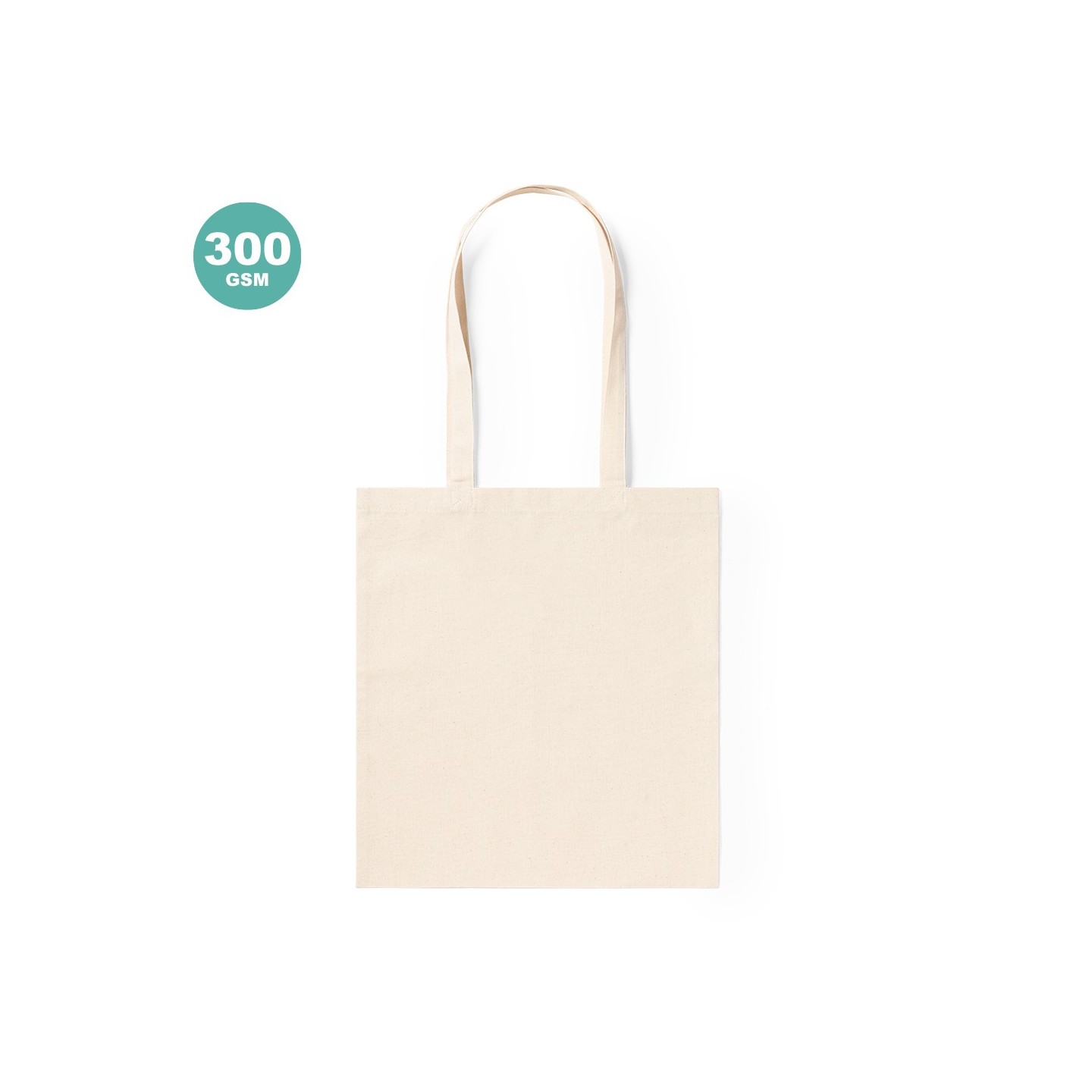 Bolsa resistente y duradera fabricada en 100% algodón con un gramaje de 300g/m2. Asas largas reforzadas para mayor comodidad y resistencia hasta 10kg de peso.