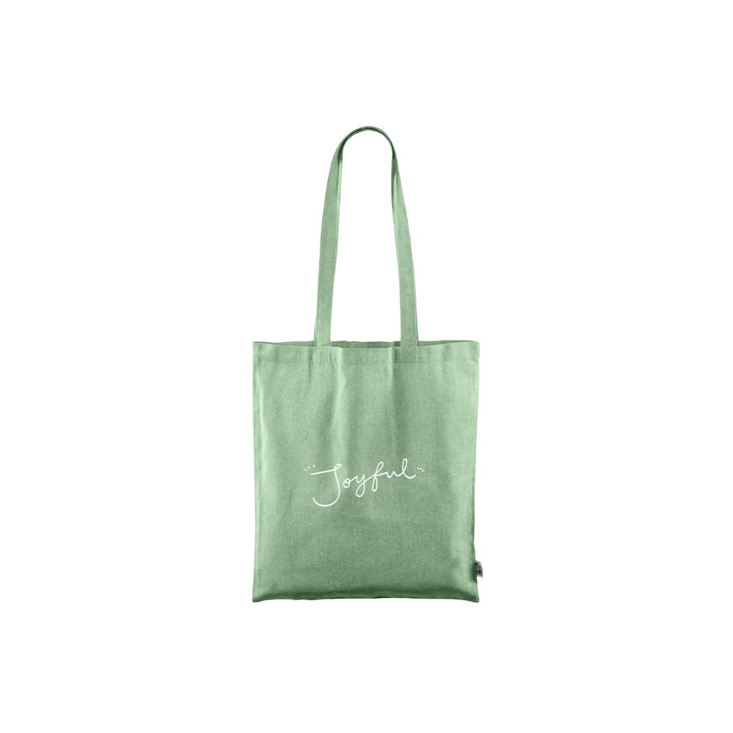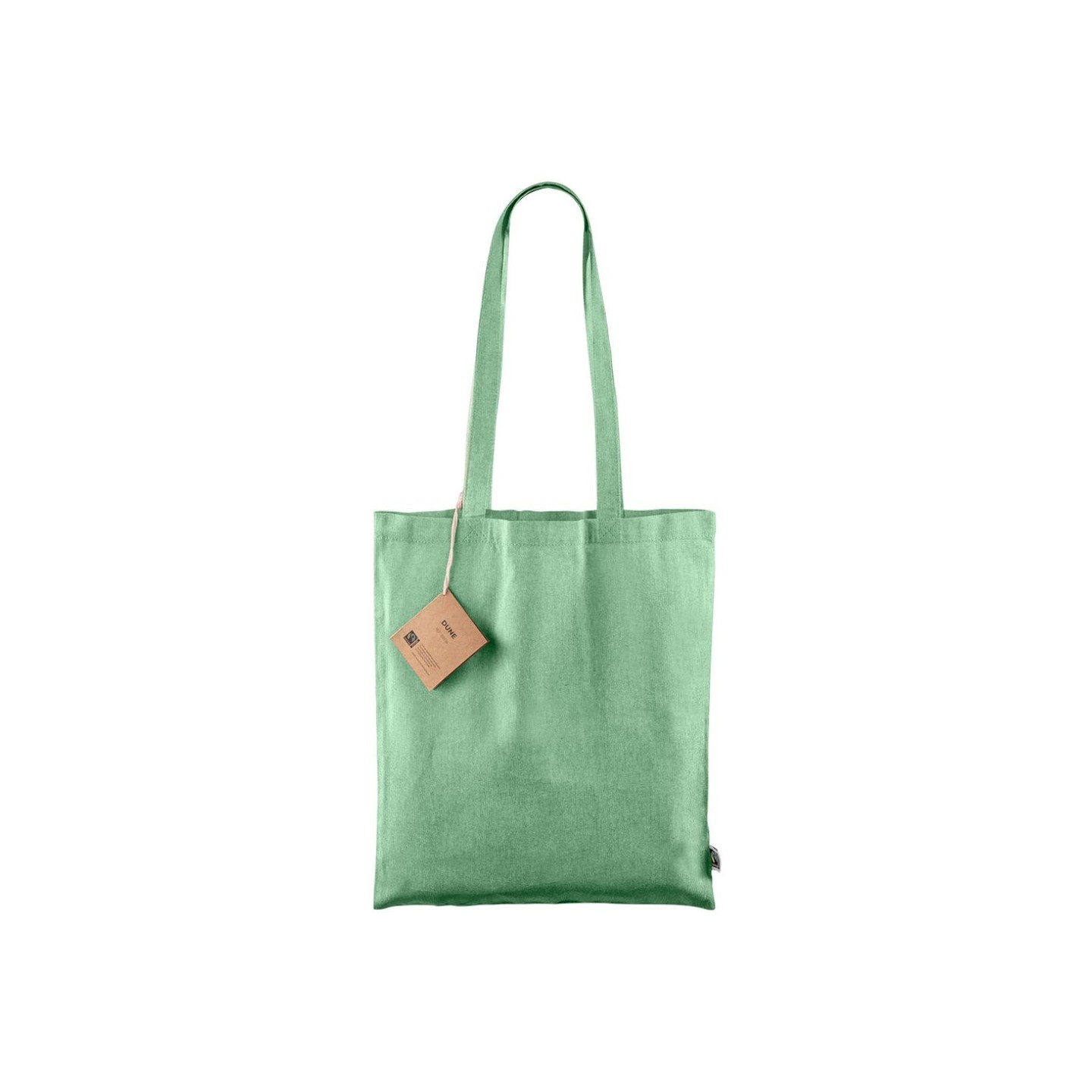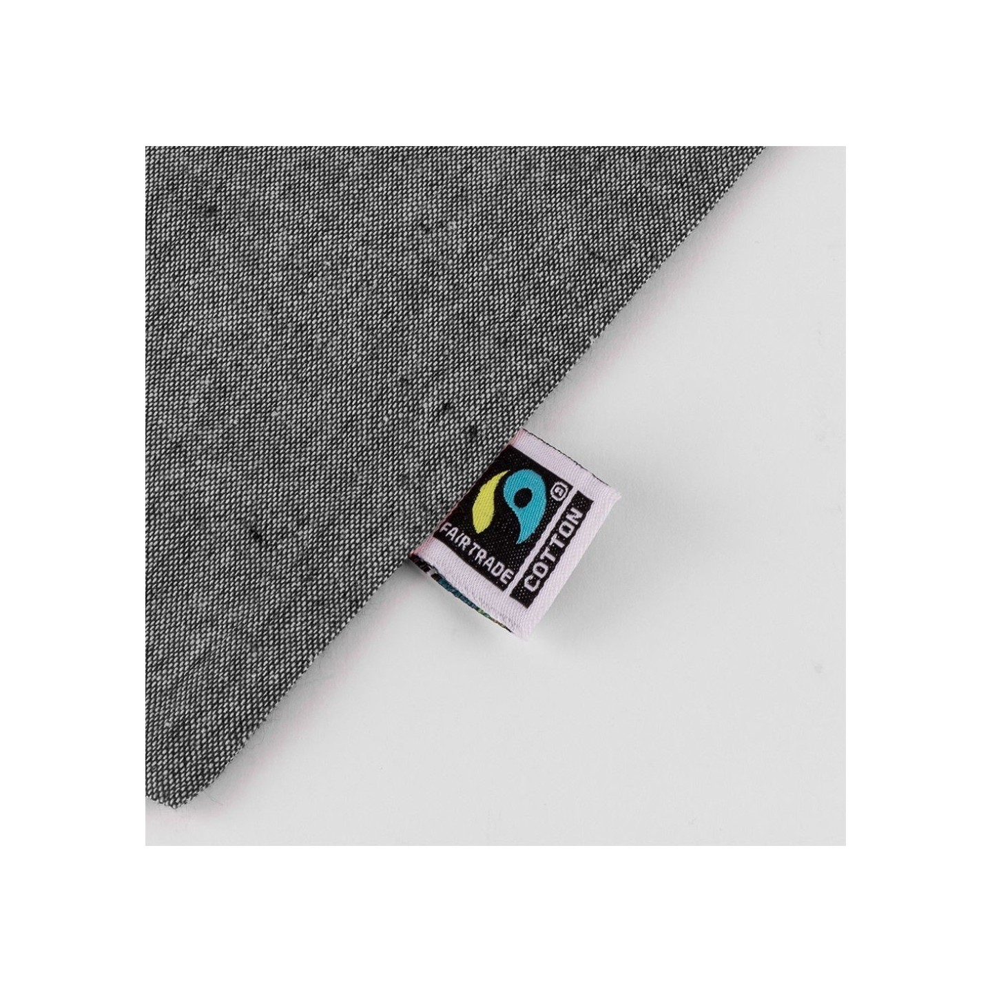 Con el sello y garantía Fairtrade, esta bolsa no solo respalda a los agricultores y trabajadores involucrados en su producción, sino que también garantiza estándares justos y sostenibles. Además, cuenta con el certificado GRS, asegurando la procedencia y calidad del algodón reciclado utilizado en su confección.