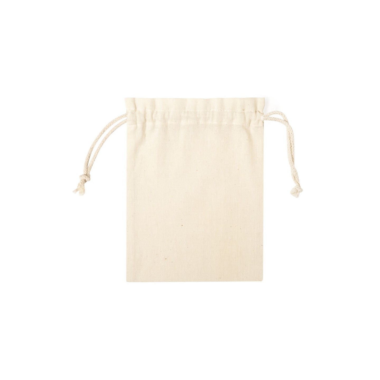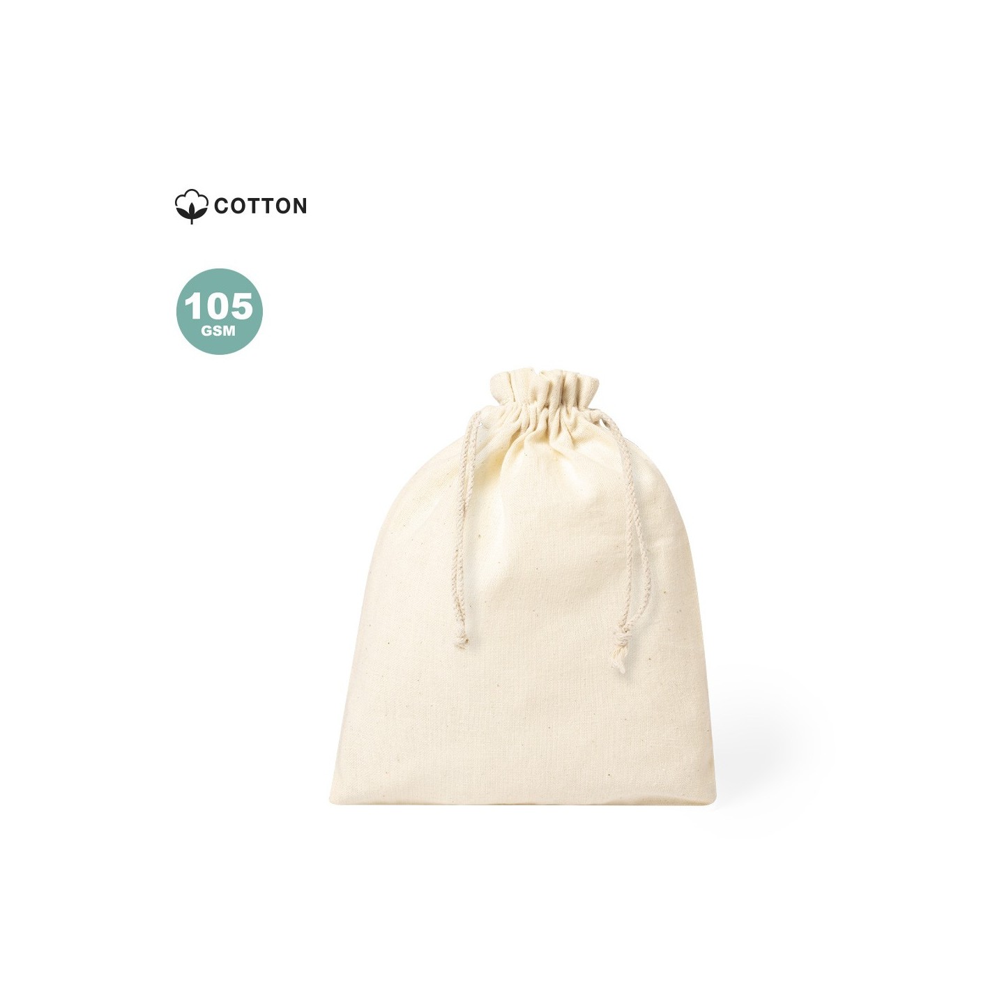 Bolsita ecológica de algodón de 105g/m2, tamaño 15x21 cm, con cordones autocierre de algodón. Perfecta para personalizar y usar como regalo promocional.