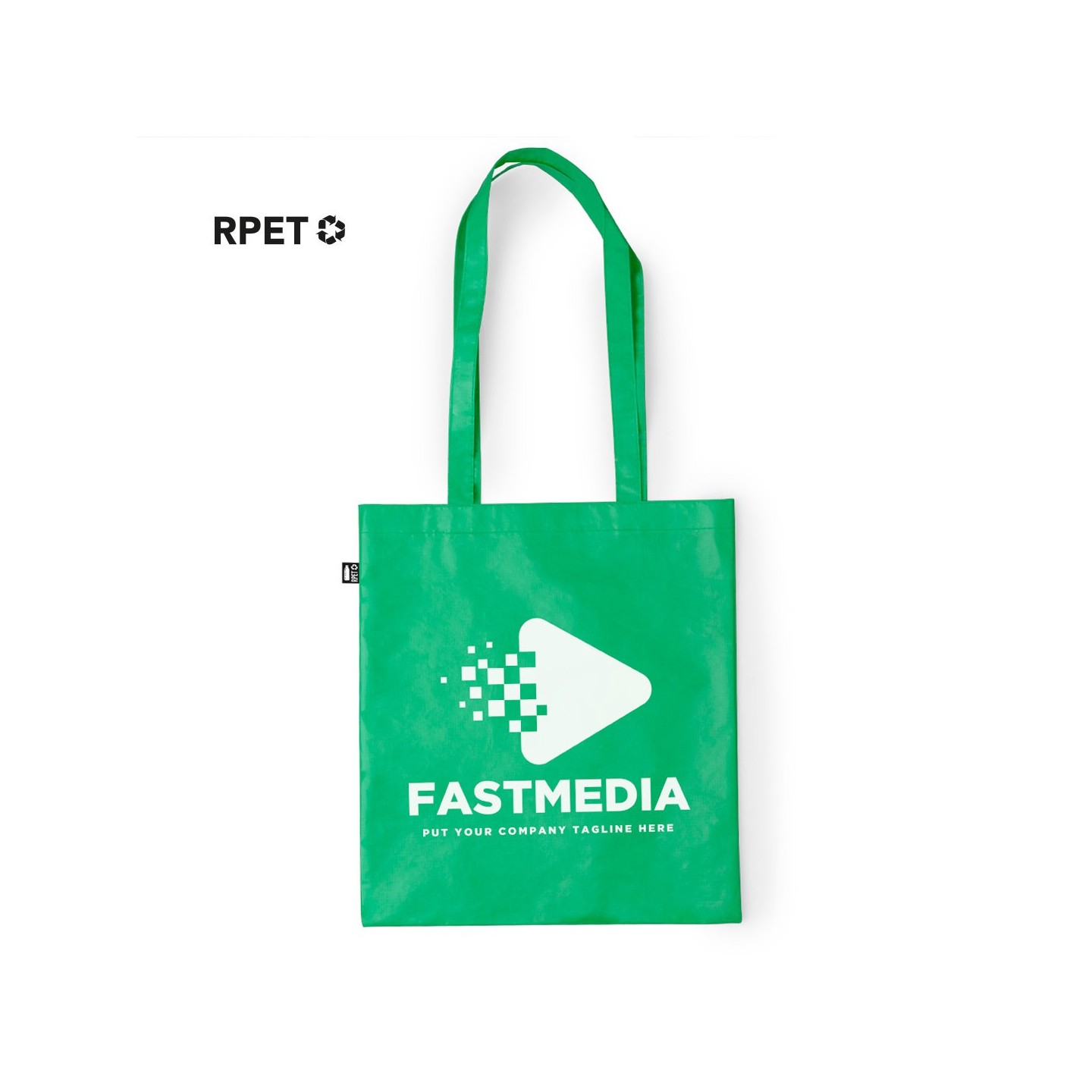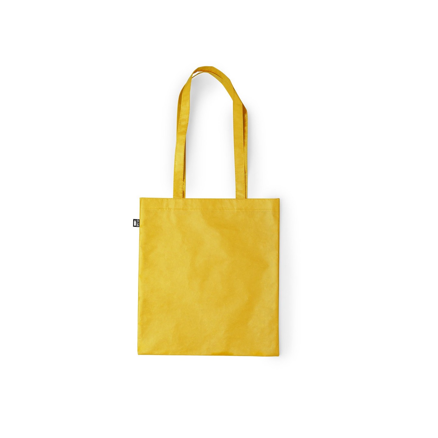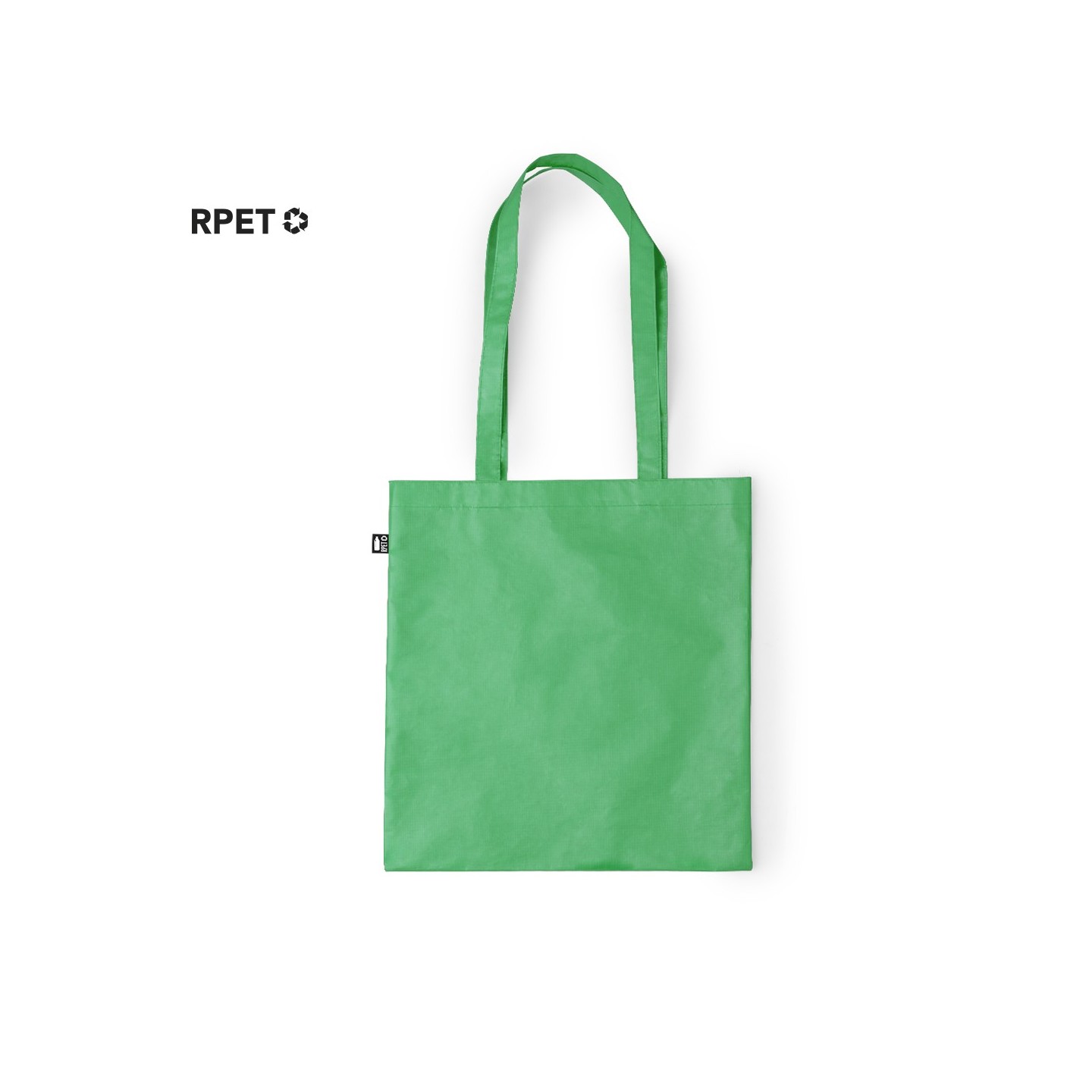 Con su diseño moderno y su amplia gama de colores disponibles, esta bolsa es ideal para llevar tus compras, libros o cualquier objeto que necesites en tu día a día. Además, cuenta con una etiqueta distintivo RPET que demuestra su compromiso con la sostenibilidad.