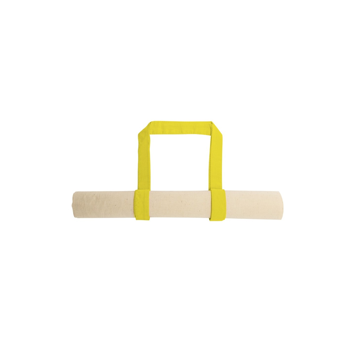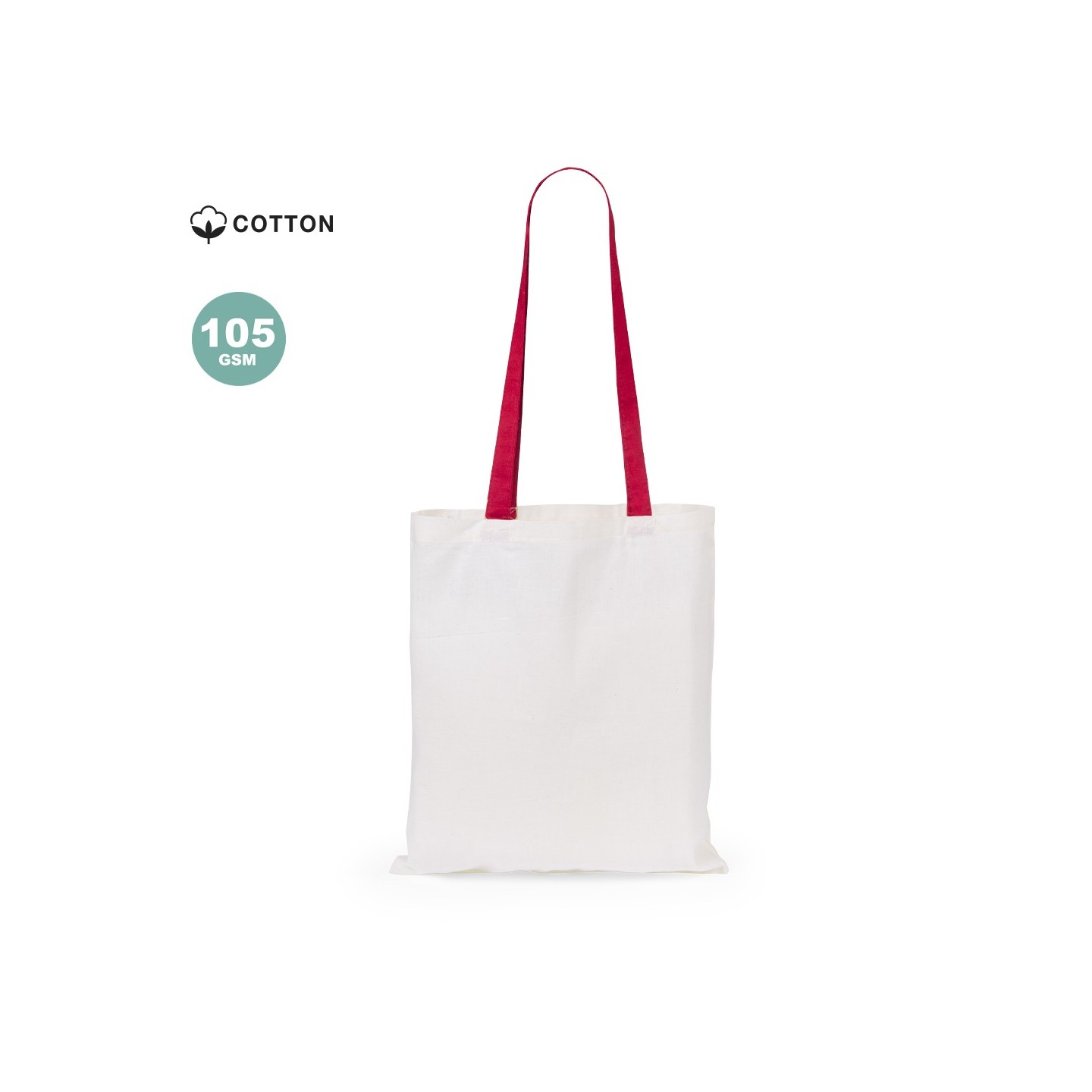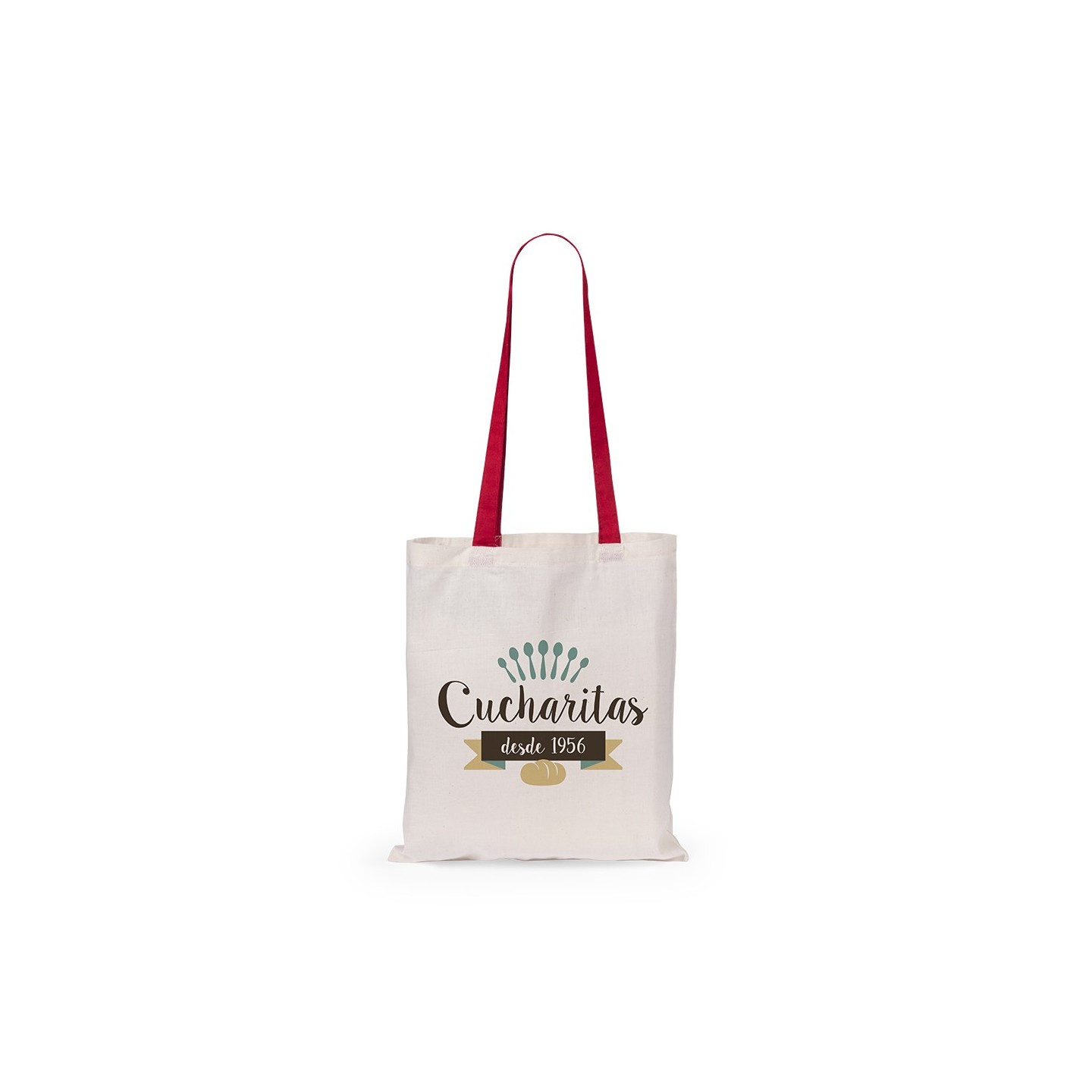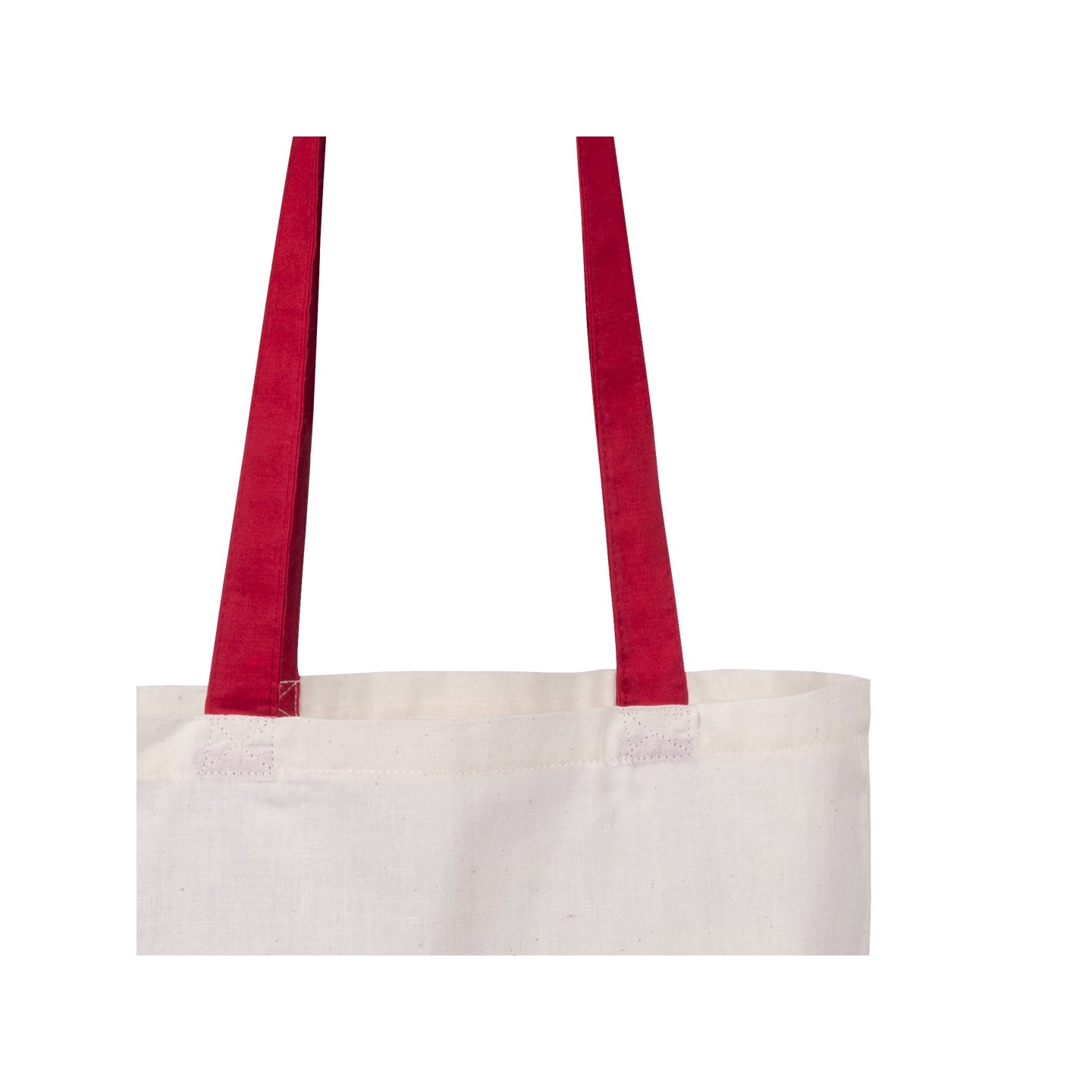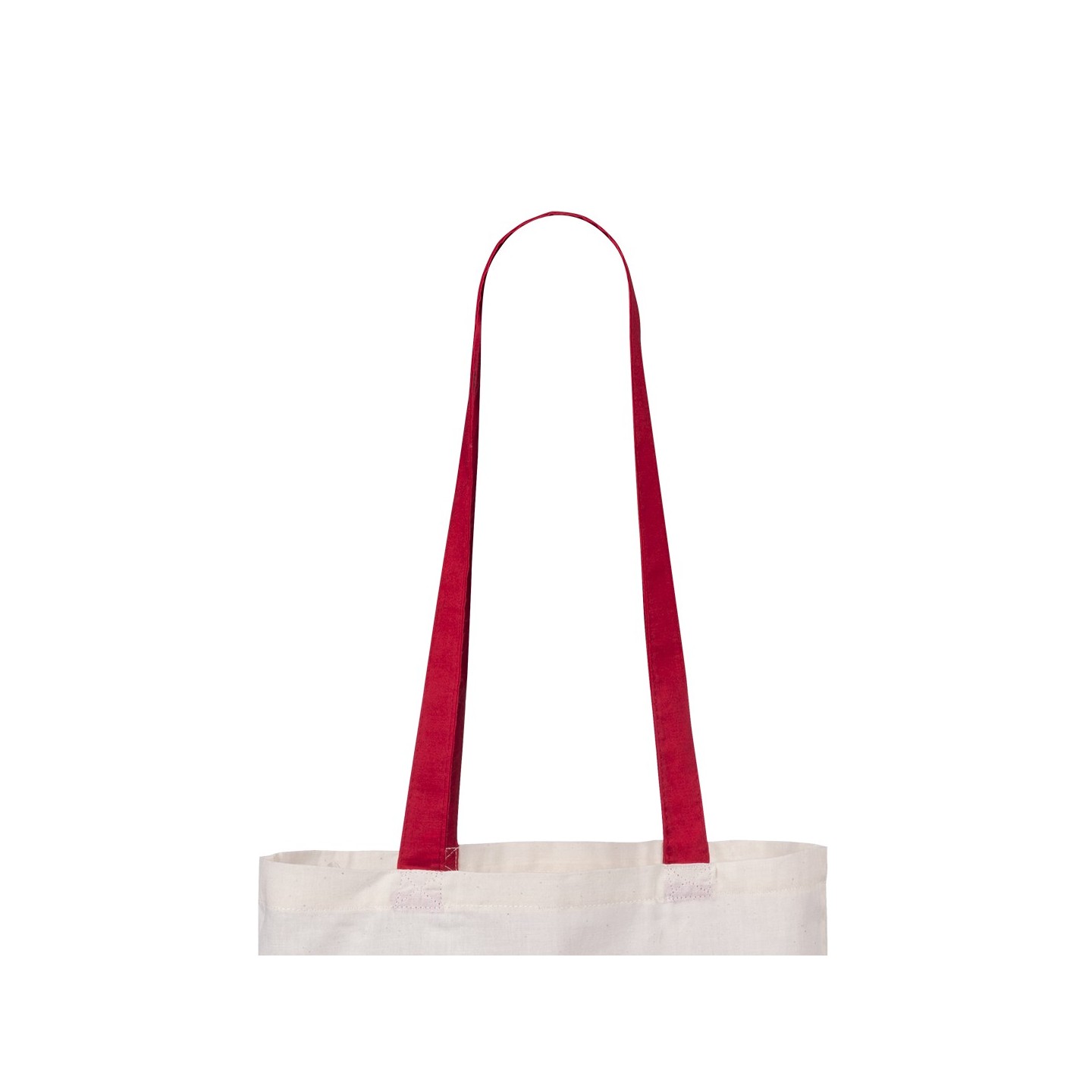 Bolsa de algodón 100% con cuerpo natural y asas en colores vivos. Asas largas de 70cm y resistencia de hasta 7kg. Práctica y sostenible.
