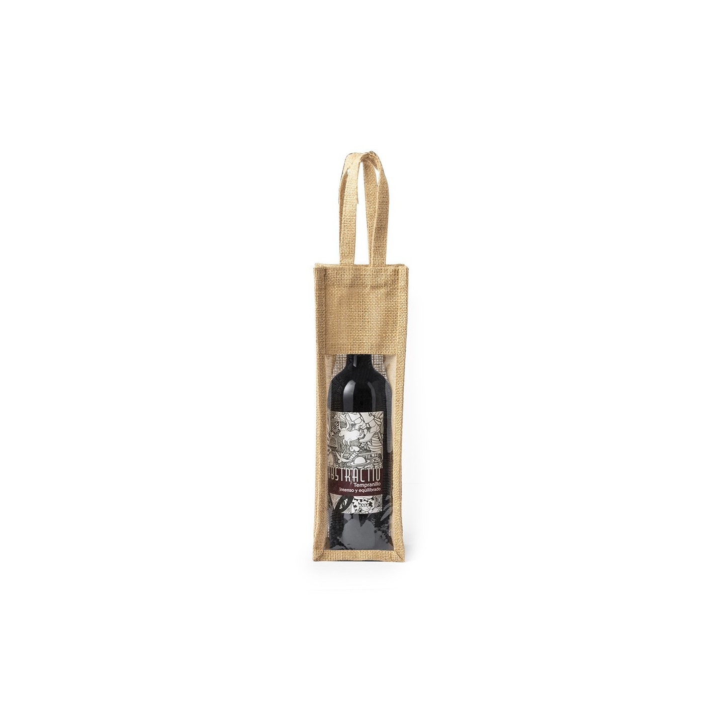 Bolsa Holden es una elegante y resistente bolsa para botella de vino de 75cl, hecha de yute laminado. Con ventana transparente, asas reforzadas y ribetes, es perfecta para transportar tu vino con seguridad y estilo.