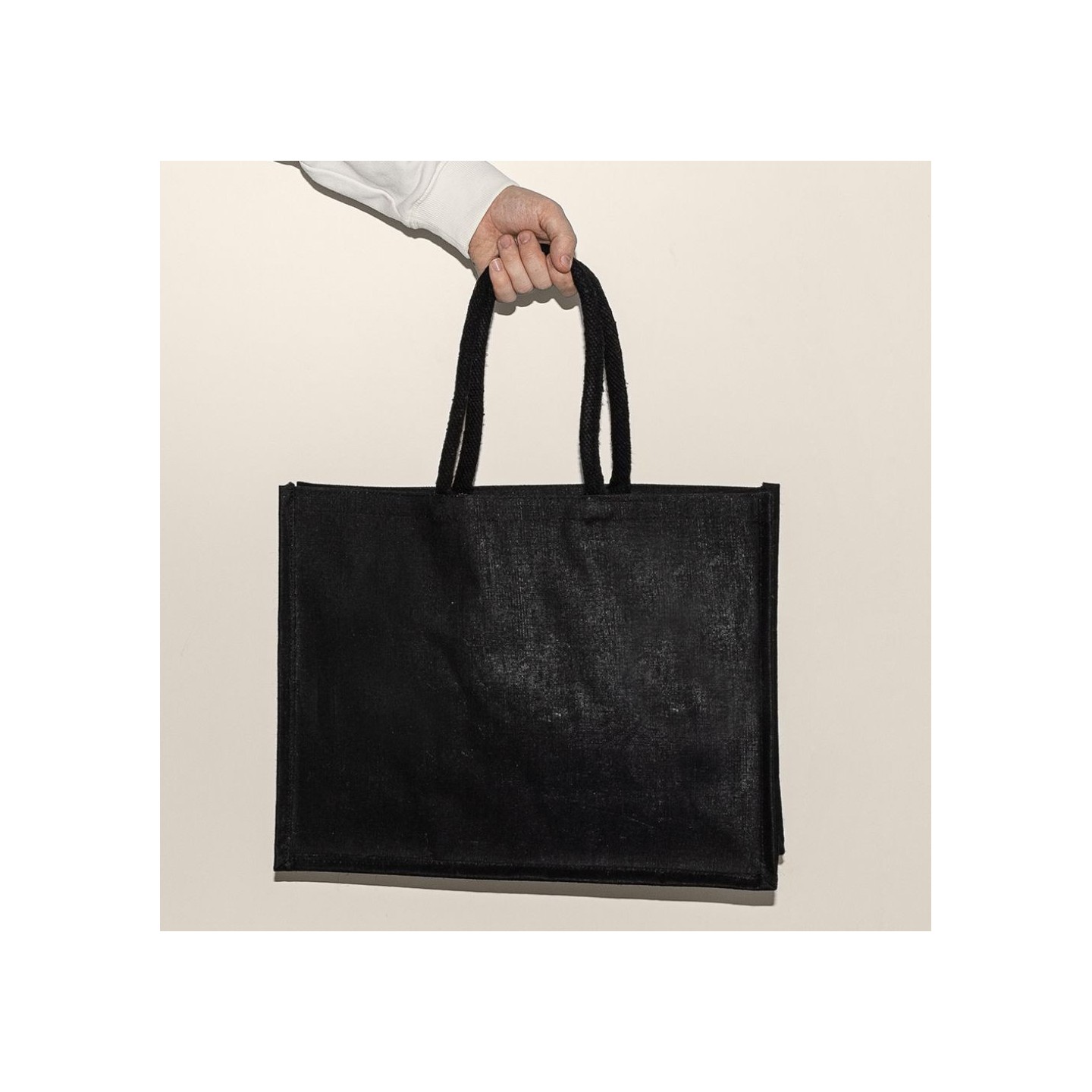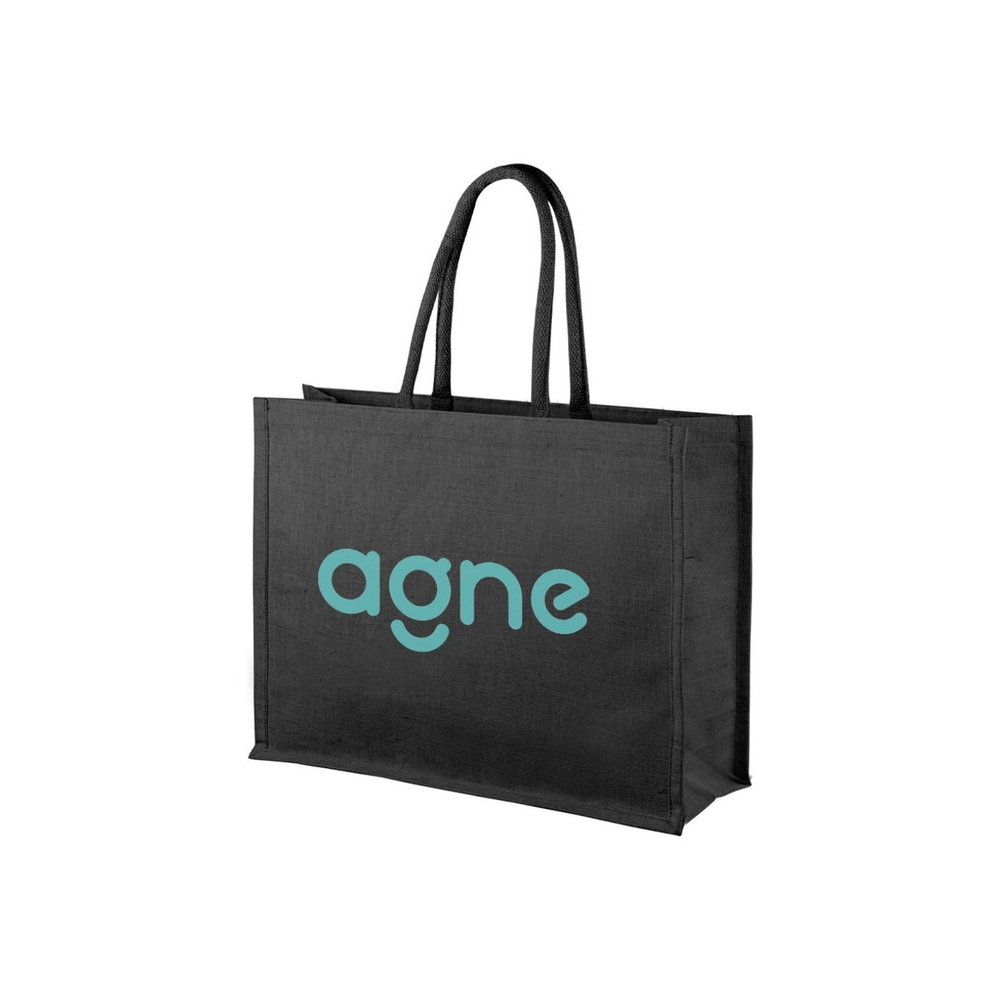 La Bolsa Juco Ober Negra lleva asas reforzadas, laminado interior. Ideal para playa y compras. Personalízala para regalos corporativos distintivos