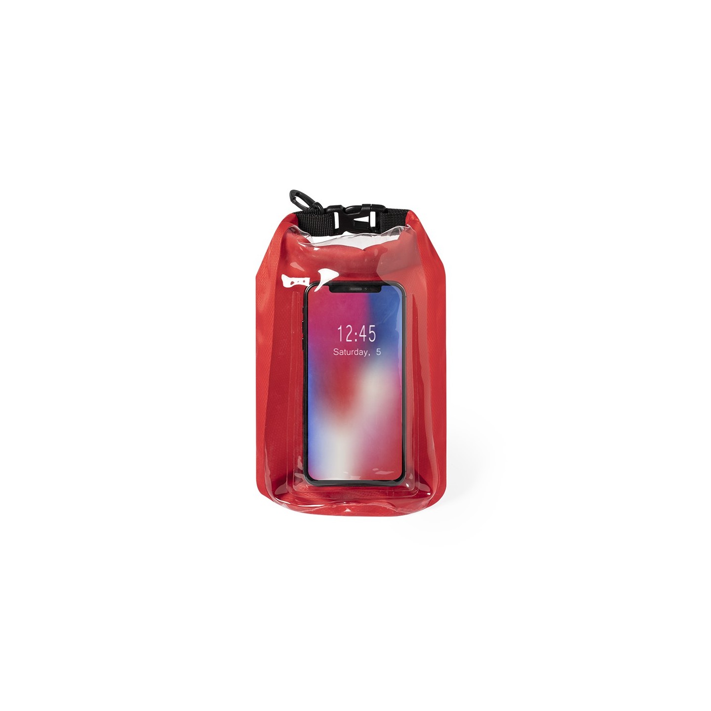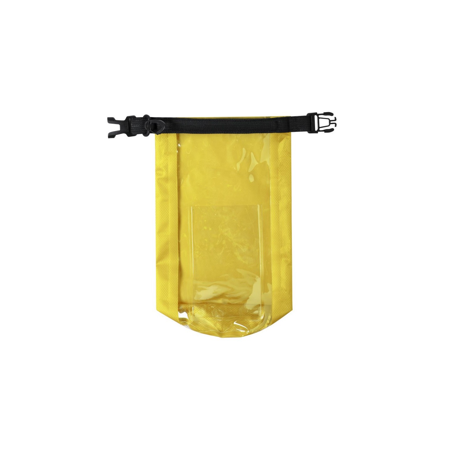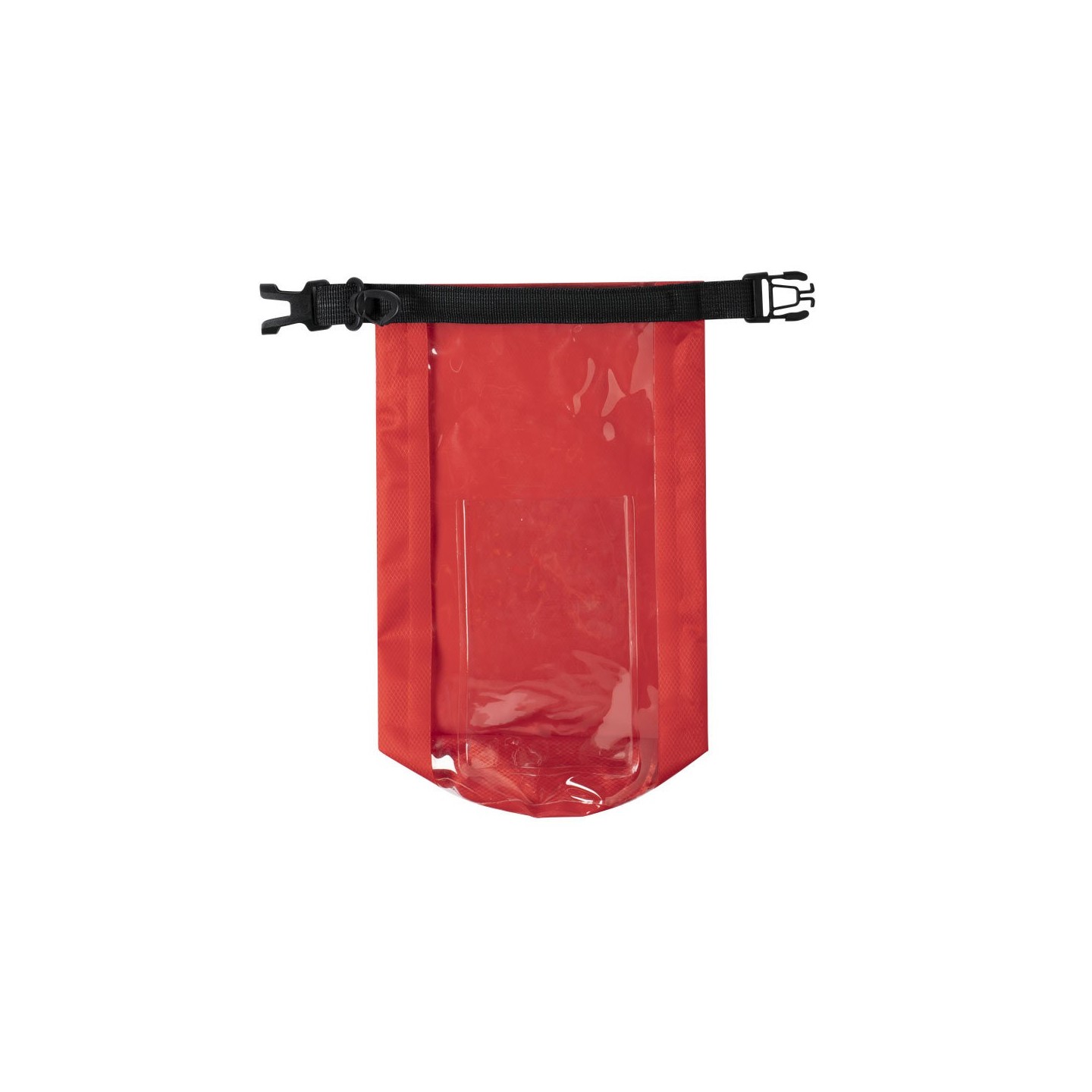 Bolsa impermeable Kambax de 2l de capacidad, con ventana táctil para smartphone y mosquetón para transporte. Disponible en variados colores de acabado brillo.