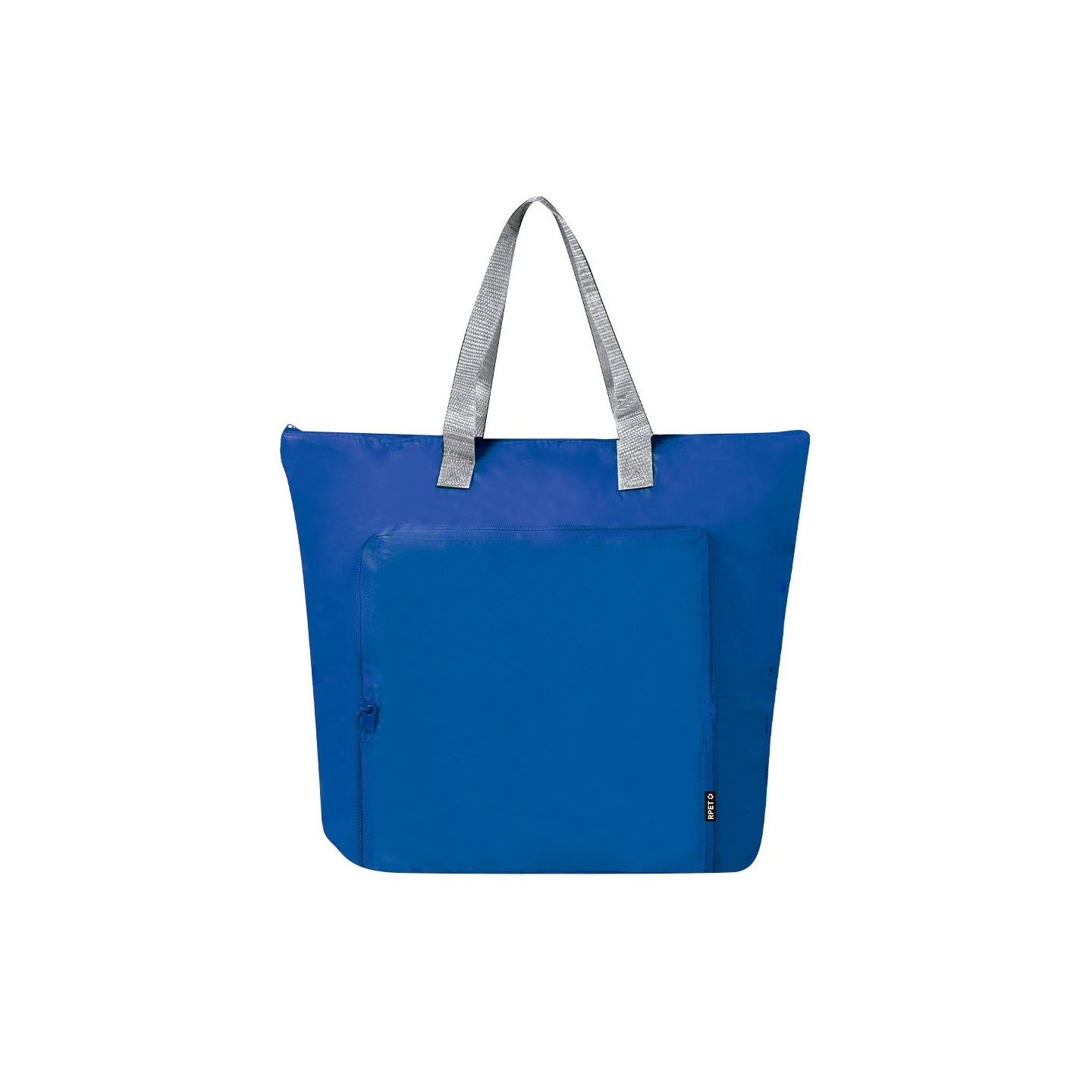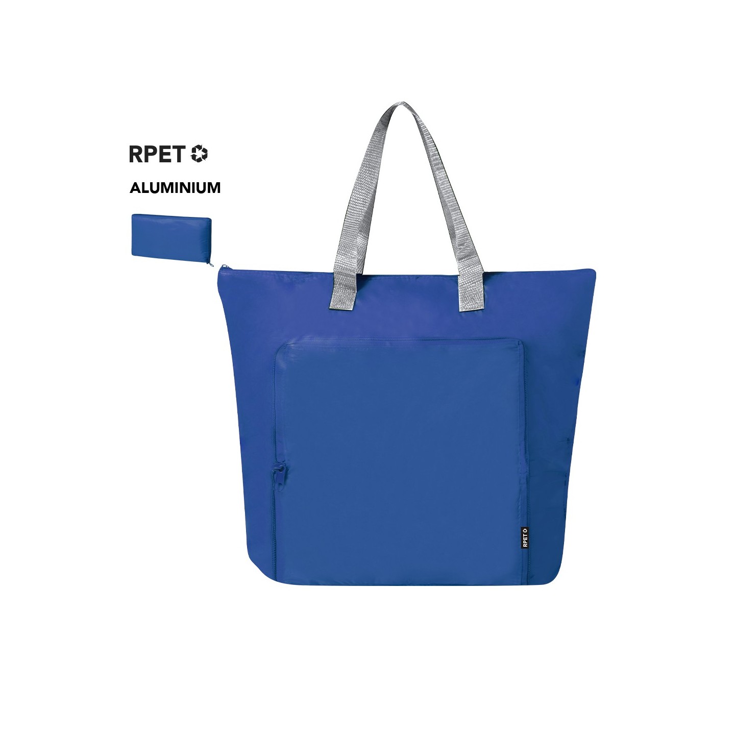 Bolsa nevera plegable de Poliéster RPET reciclado, con cierre de cremallera y asas reforzadas. Resistente y personalizable, ideal para mantener productos frescos.