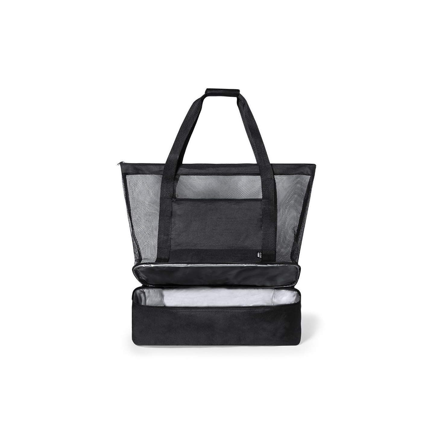 La bolsa nevera Pattel es perfecta para llevar tus alimentos frescos y bebidas a donde quieras. Fabricada en resistente poliéster RPET 600D elaborado a partir de plástico reciclado, esta bolsa promueve la sostenibilidad del planeta. Con un amplio compartimento principal en redecilla y cierre de cremallera, y una nevera integrada en la base con interior isotermo en PEVA. Además, cuenta con asas de transporte reforzadas y un amplio bolsillo frontal para guardar lo que necesites. La bolsa Pattel es un accesorio imprescindible para mantener tu comida fresca durante todo el día.