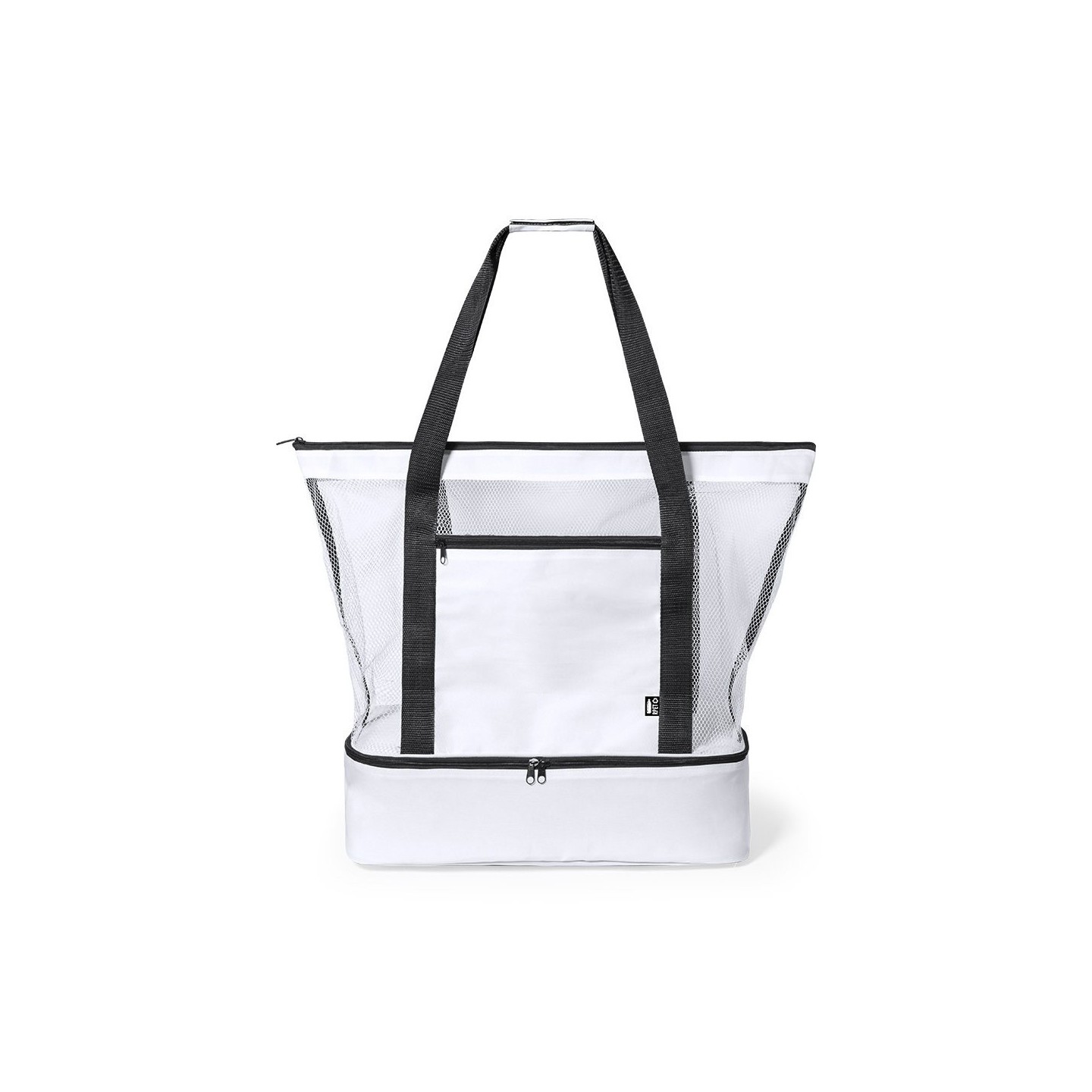 La bolsa nevera Pattel es la solución ideal para mantener tus alimentos frescos en cualquier lugar. Fabricada en poliéster RPET 600D reciclado, cuenta con un amplio compartimento en redecilla, nevera integrada en la base y asas de transporte reforzadas. ¡La bolsa Pattel es perfecta para llevar tus alimentos a donde quieras de forma sostenible!