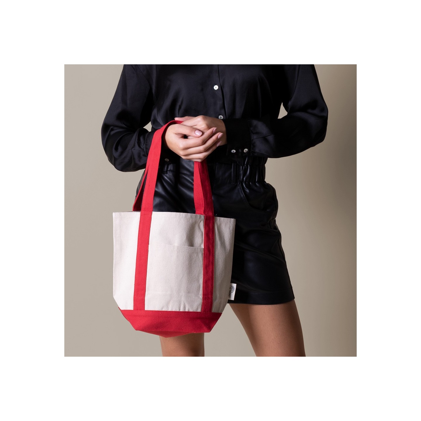 La Bolsa NIZA, bicolor y fabricada en algodón Canvas reciclado, es resistente, personalizable y perfecta para compras o la playa. Sostenible y funcional.