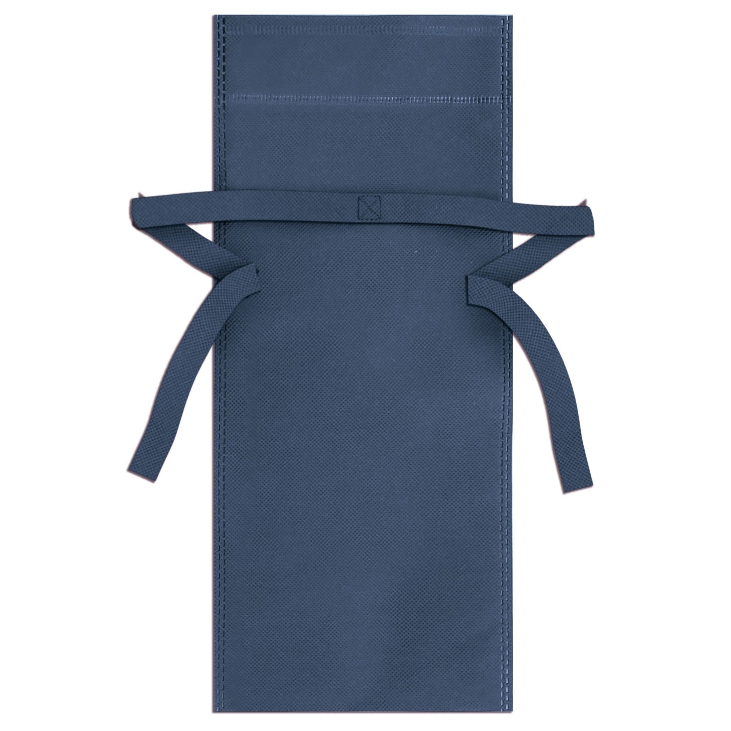Bolsa reutilizable de tejido non woven, ideal para regalar o transportar botellas de vino. Con cintas para cierre y costura visible en los bordes. Disponible en varios colores elegantes
