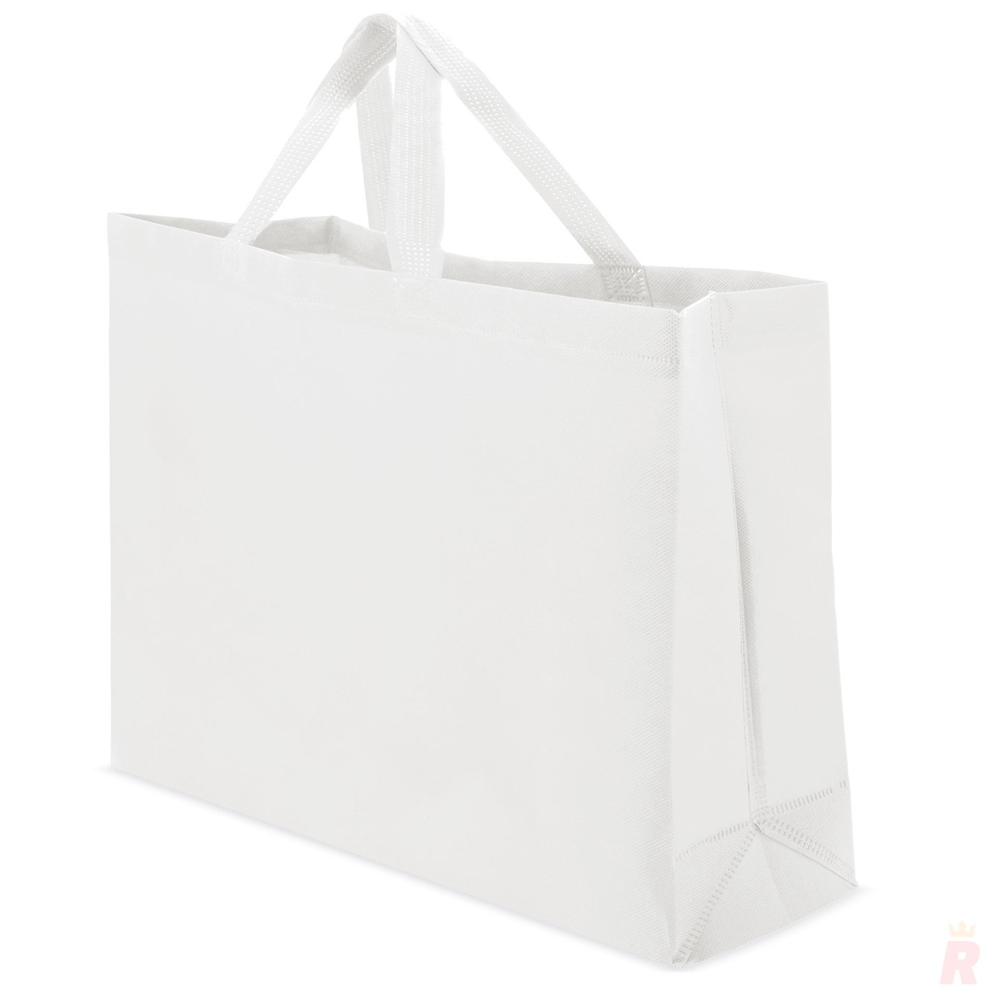 Bolsa Non Woven de 100 g/m² con asas cortas reforzadas y gran profundidad. Resistente, reutilizable y personalizable con tu logo, ideal para eventos y comercios