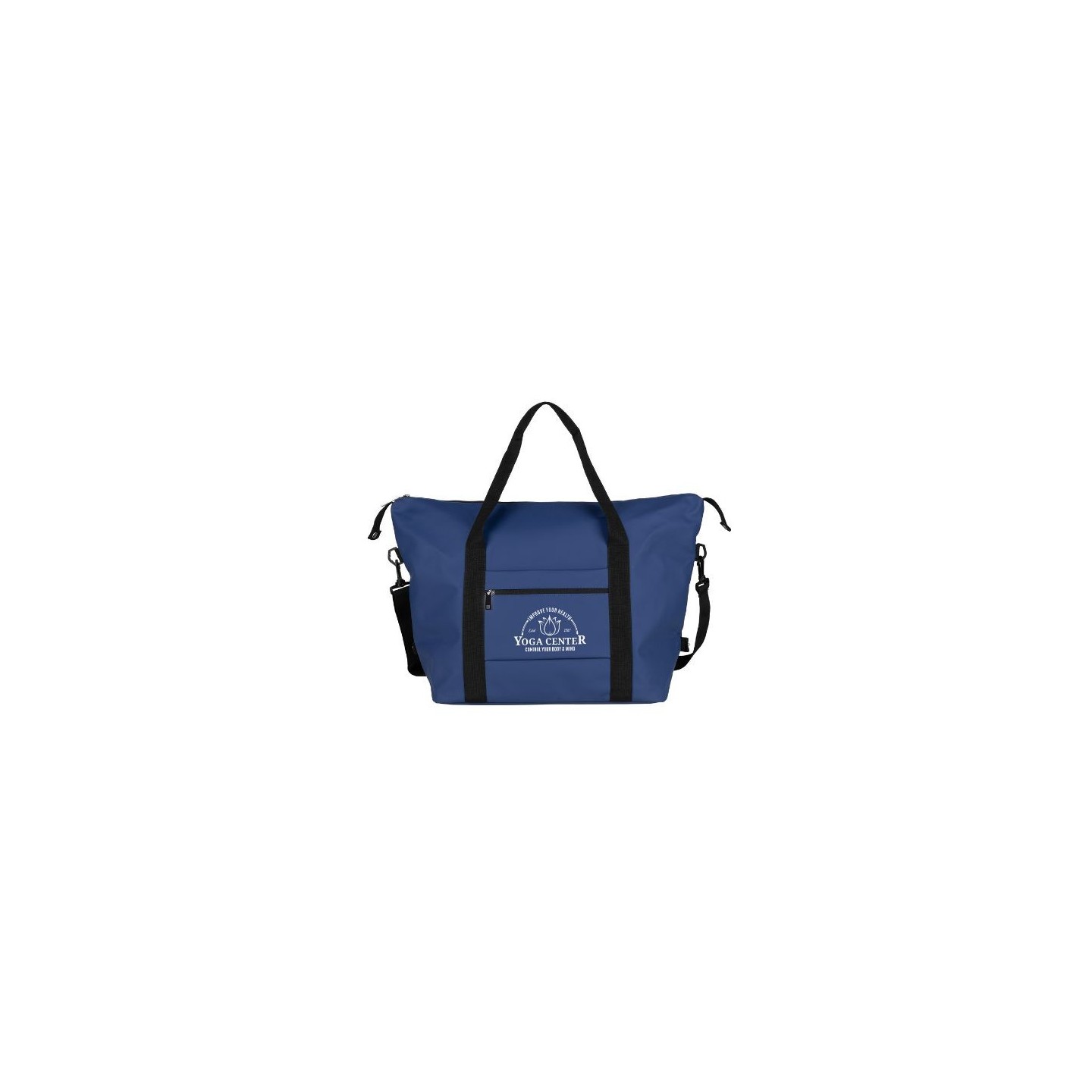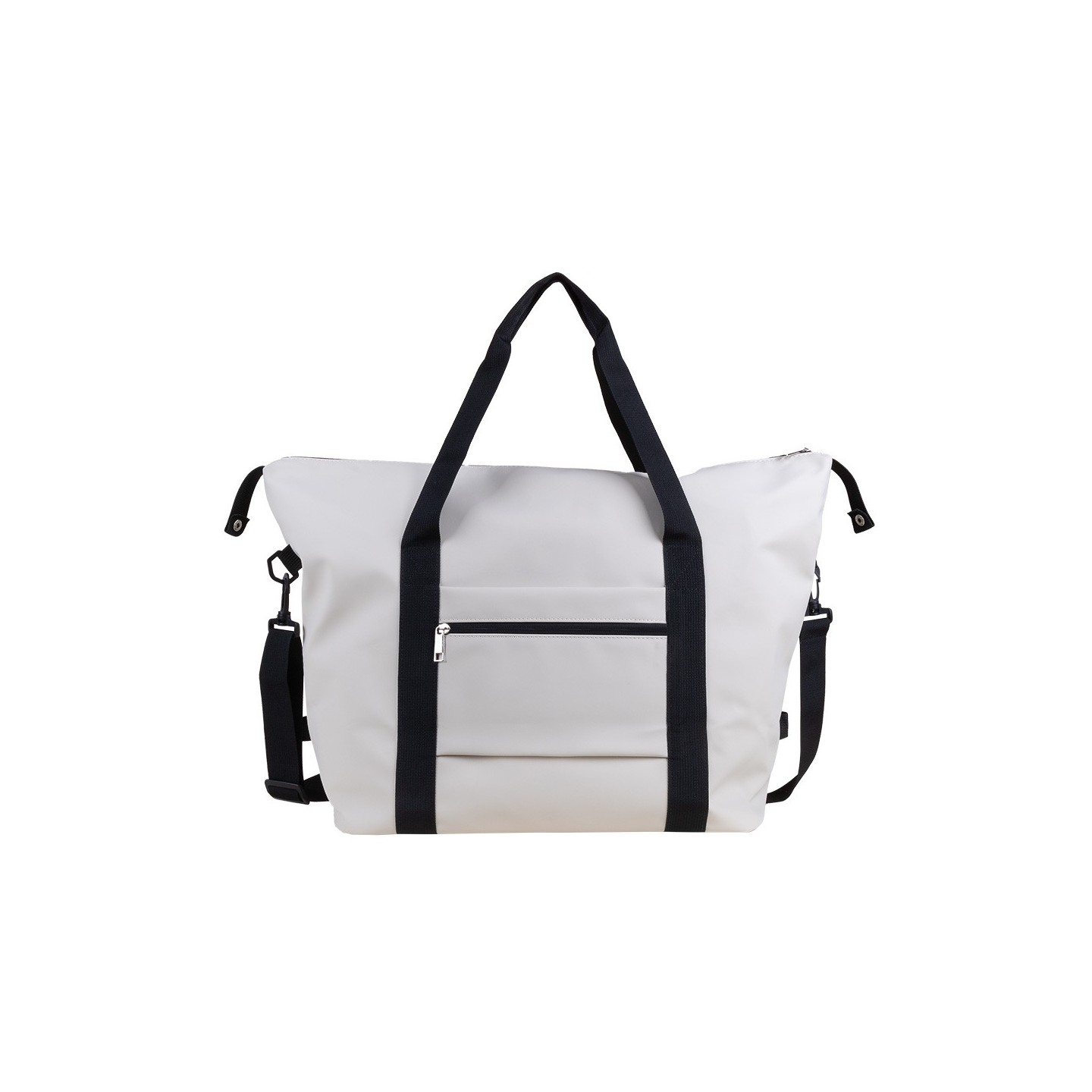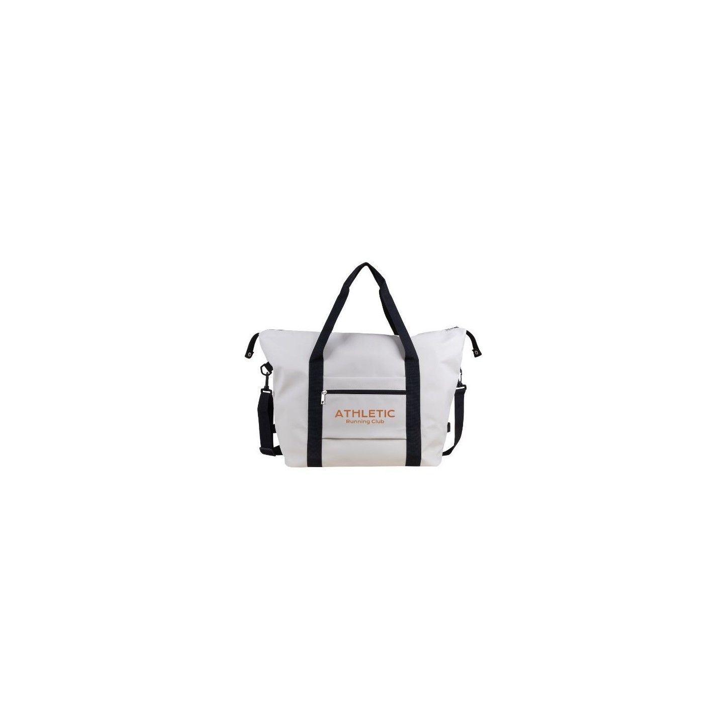 Bolsa de viaje personalizable fabricada en PU, con cierre de cremallera, asas reforzadas, bolsillo exterior y cinta bandolera ajustable. Soporta hasta 20 kg.
