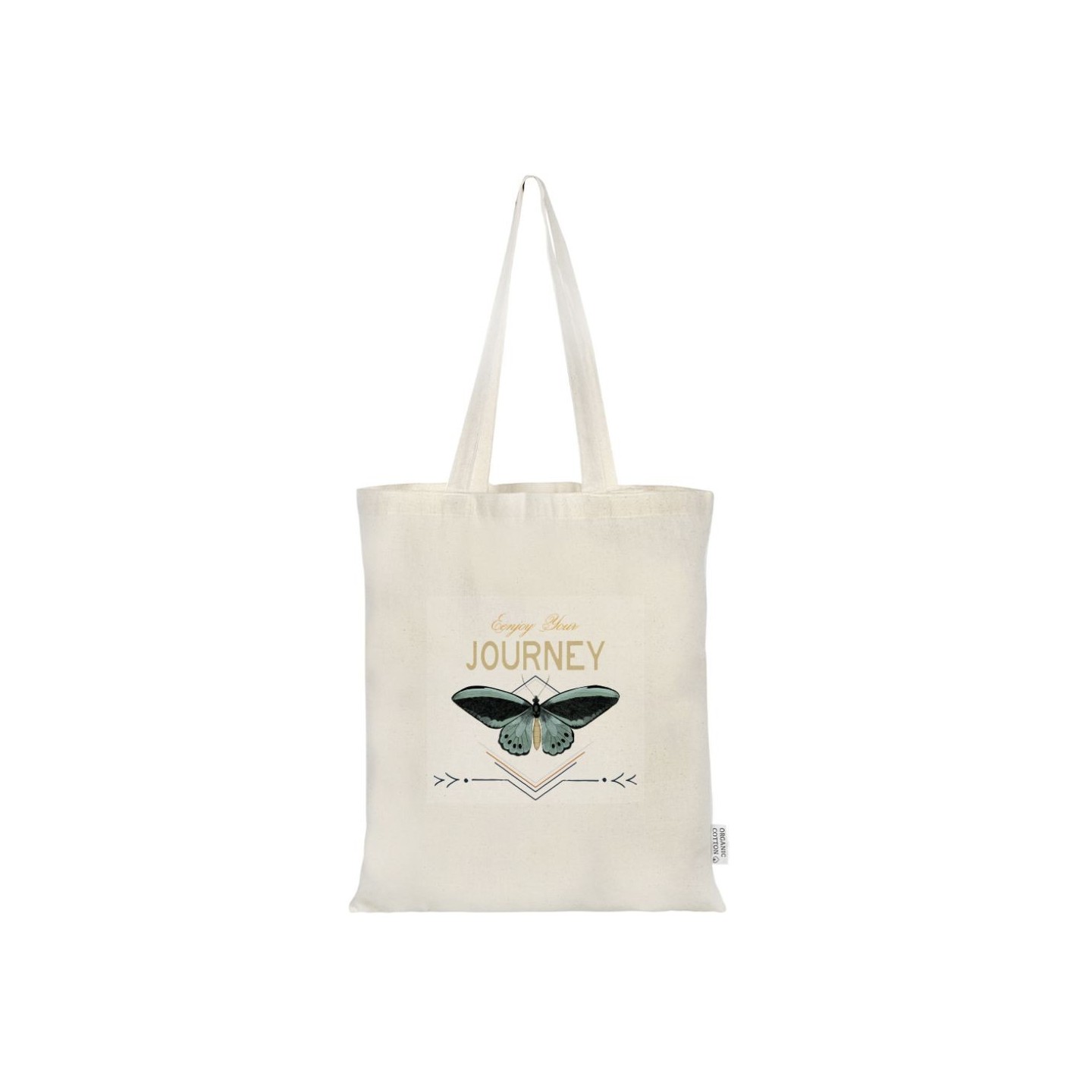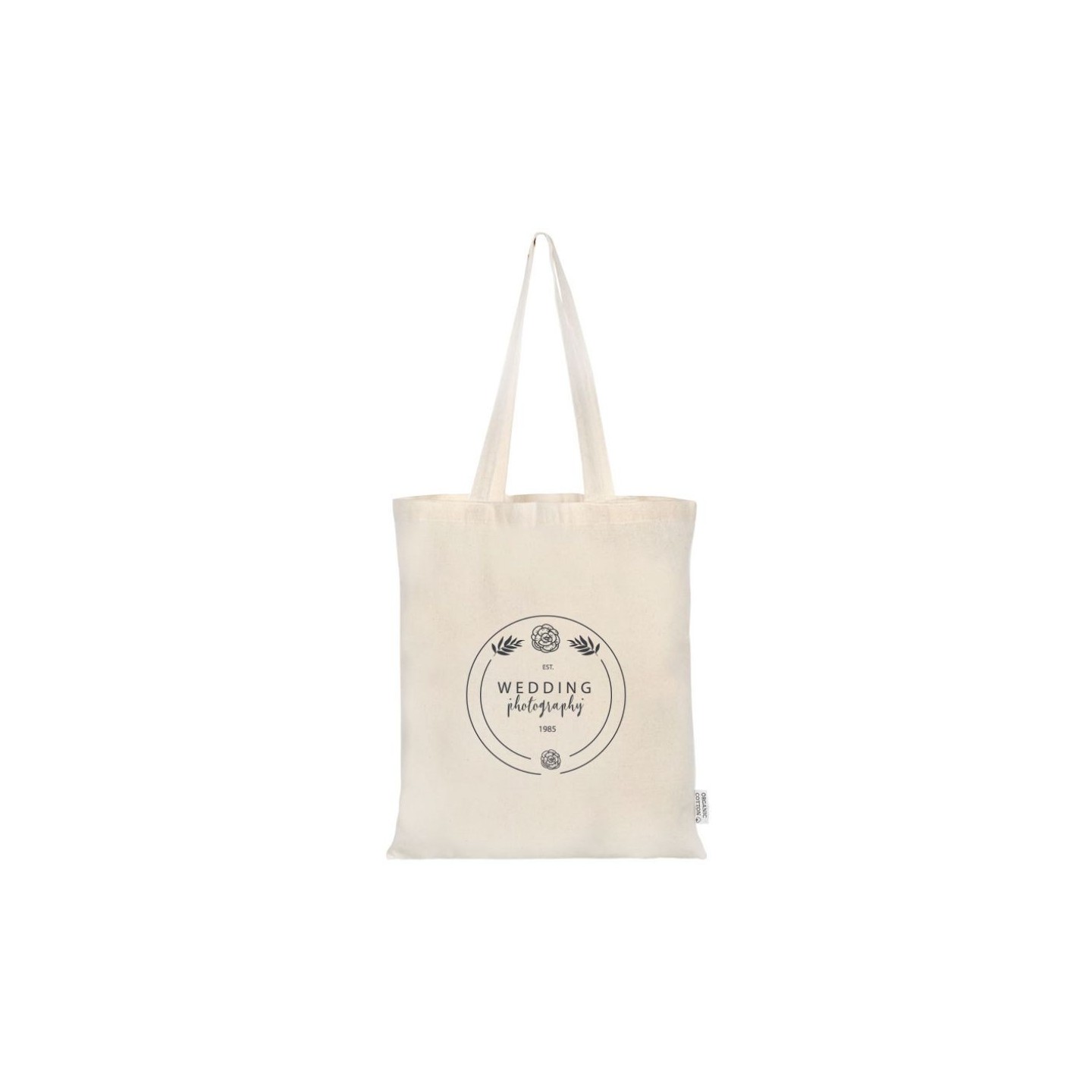 La Bolsa Orgánica Fleur es de algodón orgánico 140 gr, asas largas. Elegancia sostenible para compras o regalos corporativos.