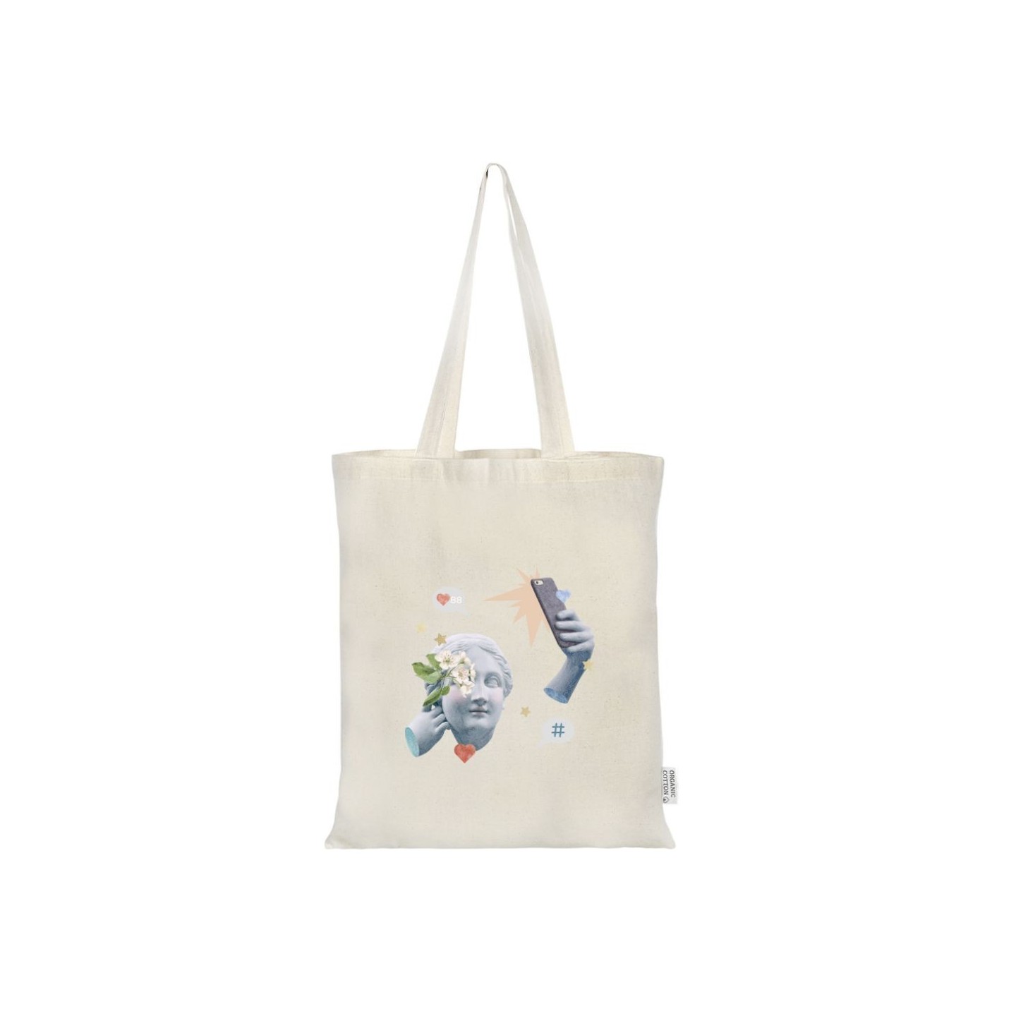 Las asas largas de la Bolsa Orgánica Fleur añaden un toque de versatilidad, permitiendo llevarla cómodamente sobre el hombro o en la mano. Esta funcionalidad la convierte en la compañera perfecta para tus compras diarias, eventos corporativos o como regalo personalizado para empleados y clientes.