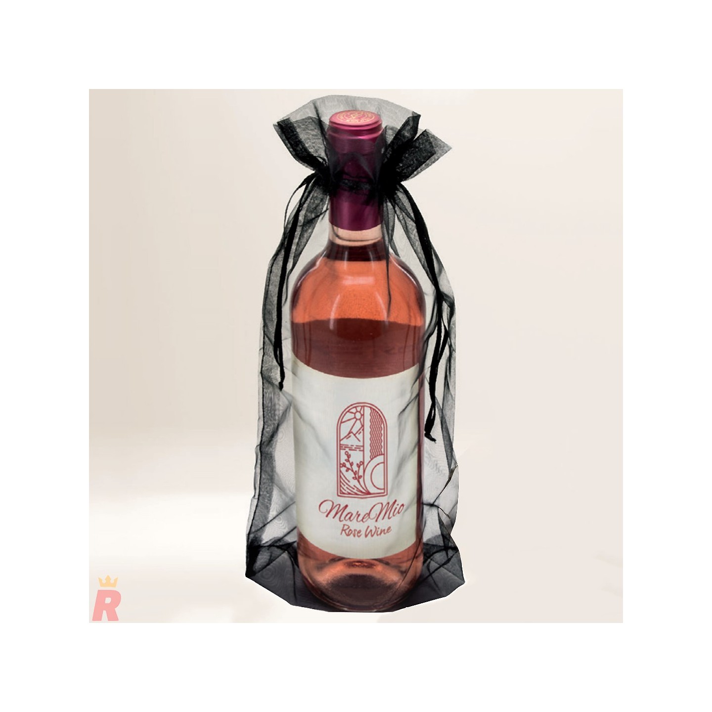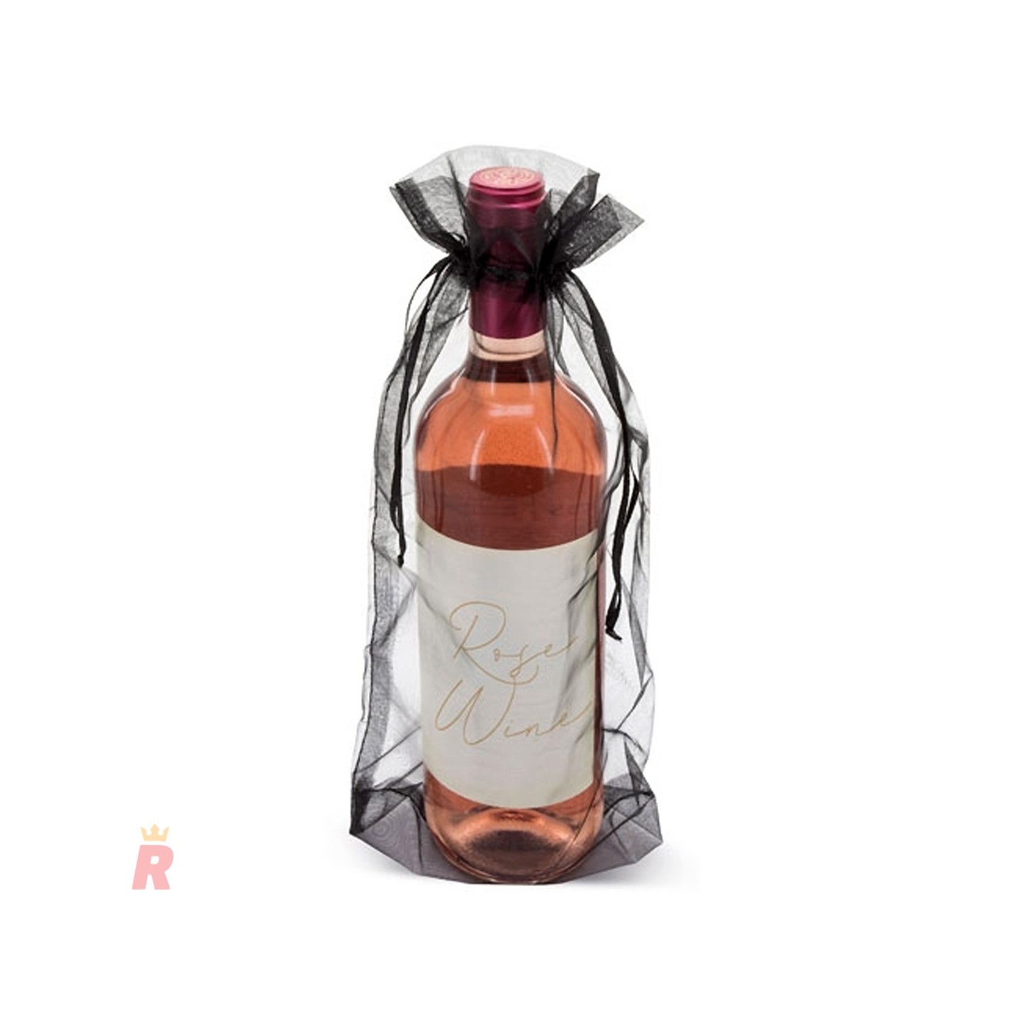 Bolsa de organza para botellas de vino con autocierre de cuerda. Aporta un toque elegante y distinguido a cada presentación, ideal para eventos, regalos y personalización con logotipo