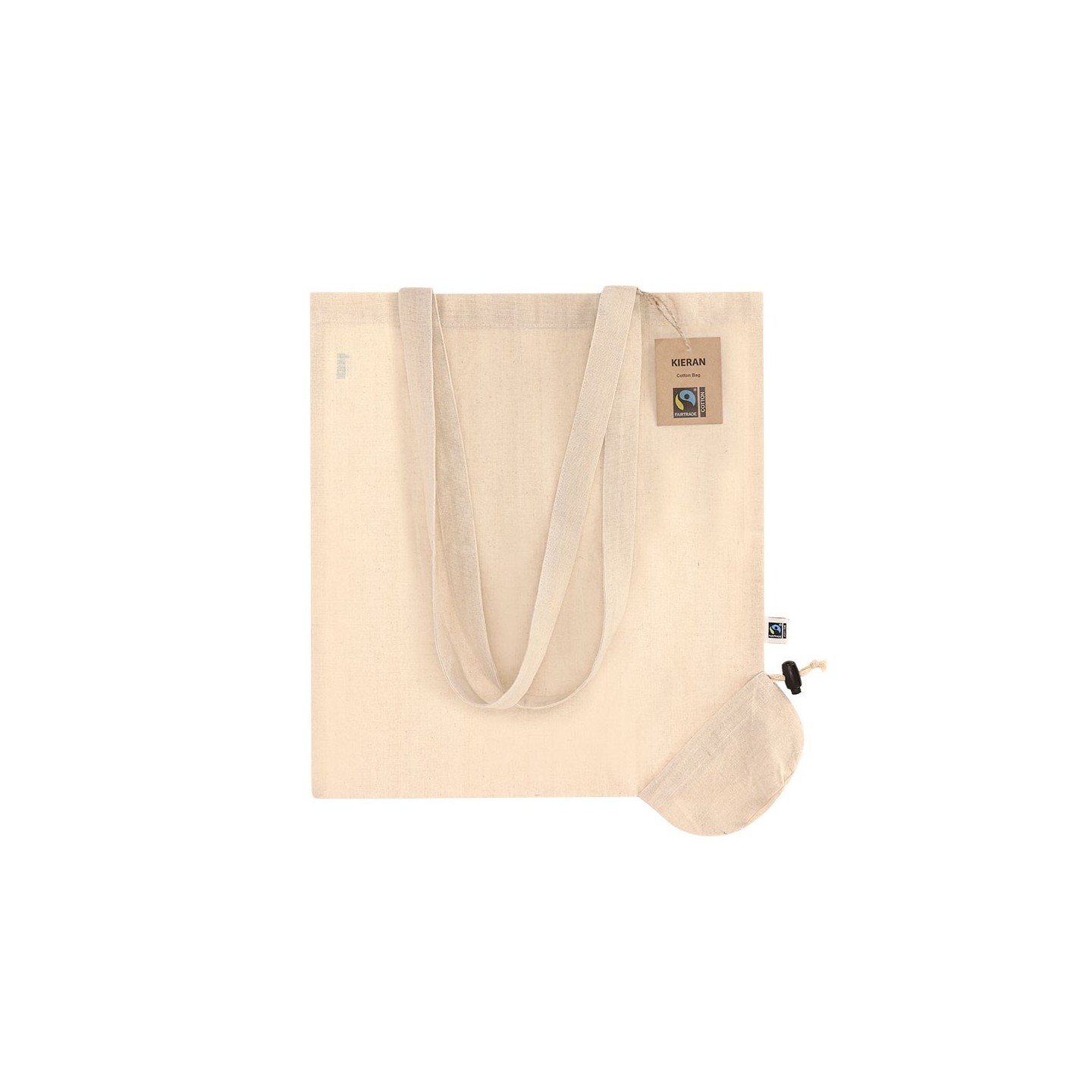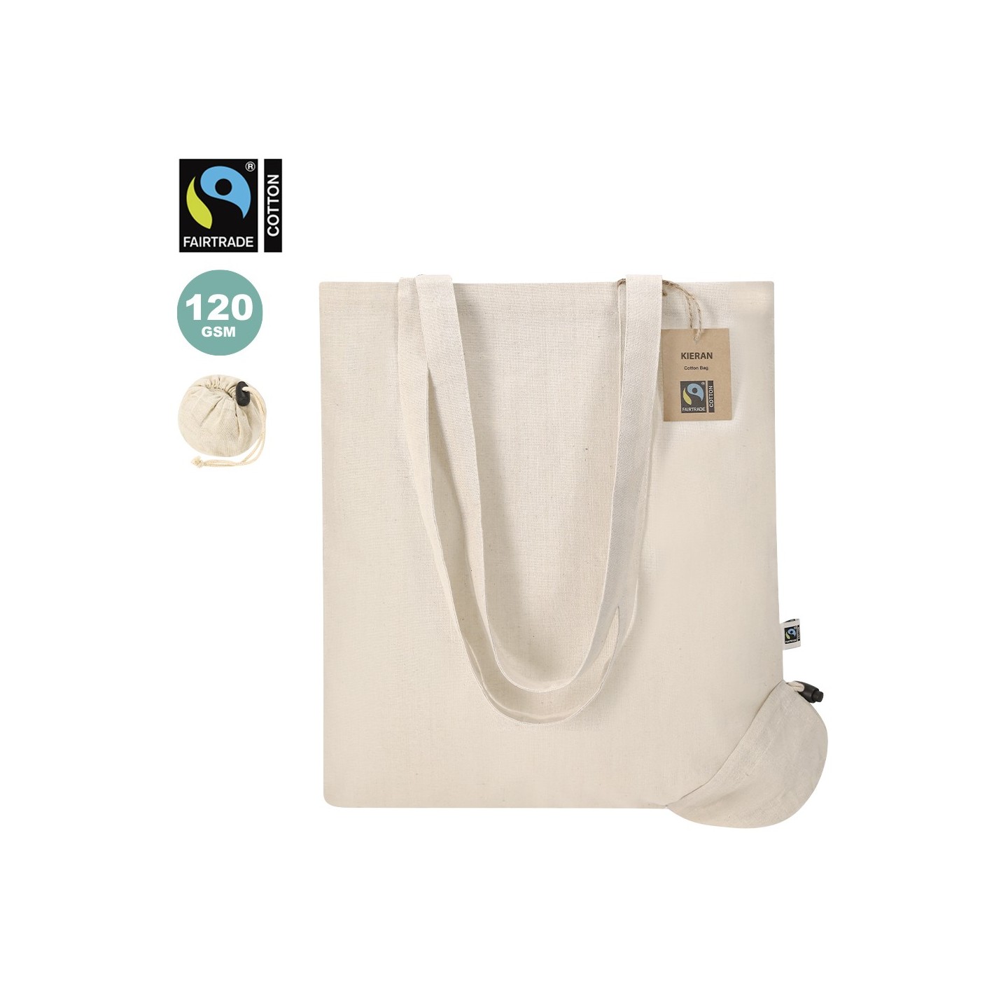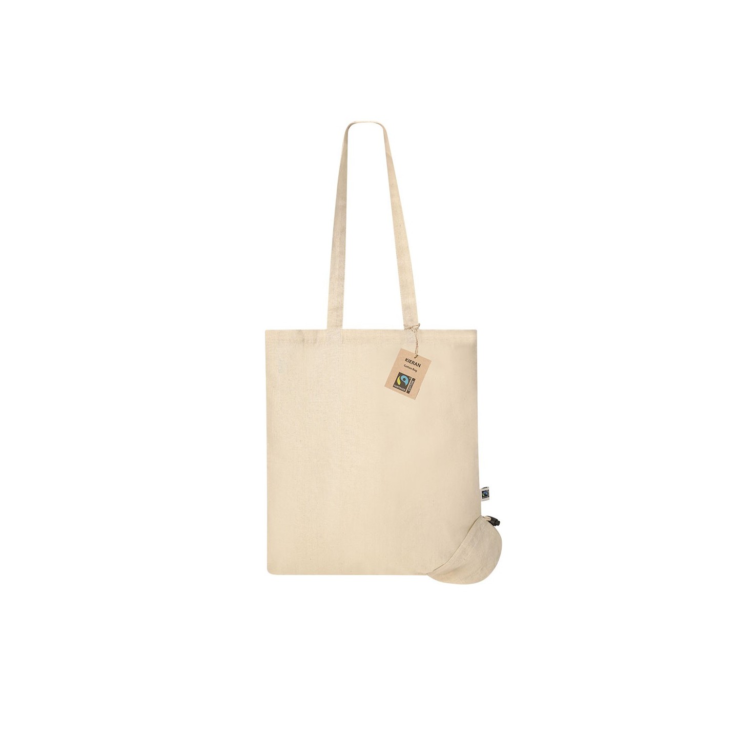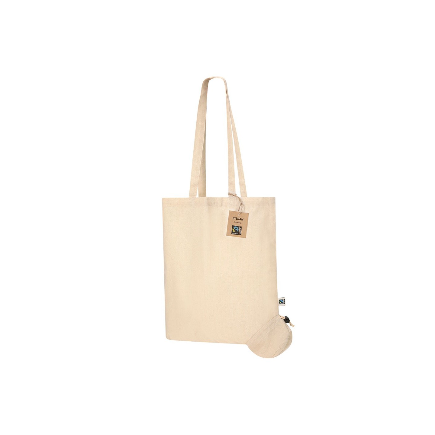Bolsa plegable KIERAN FAIRTRADE de algodón 120g/m², personalizable con tu logotipo. Ecológica, práctica y con certificación Fairtrade para un merchandising responsable.