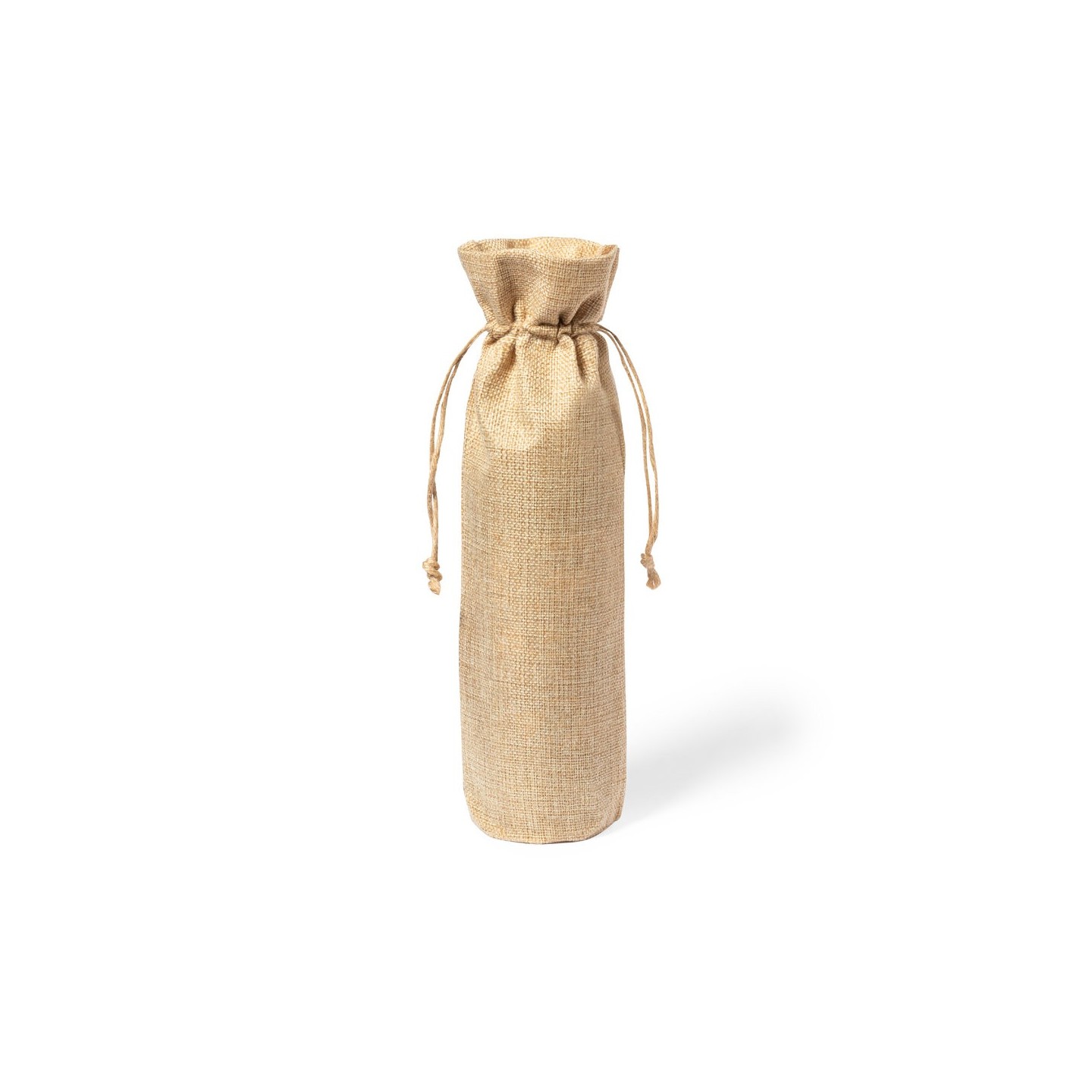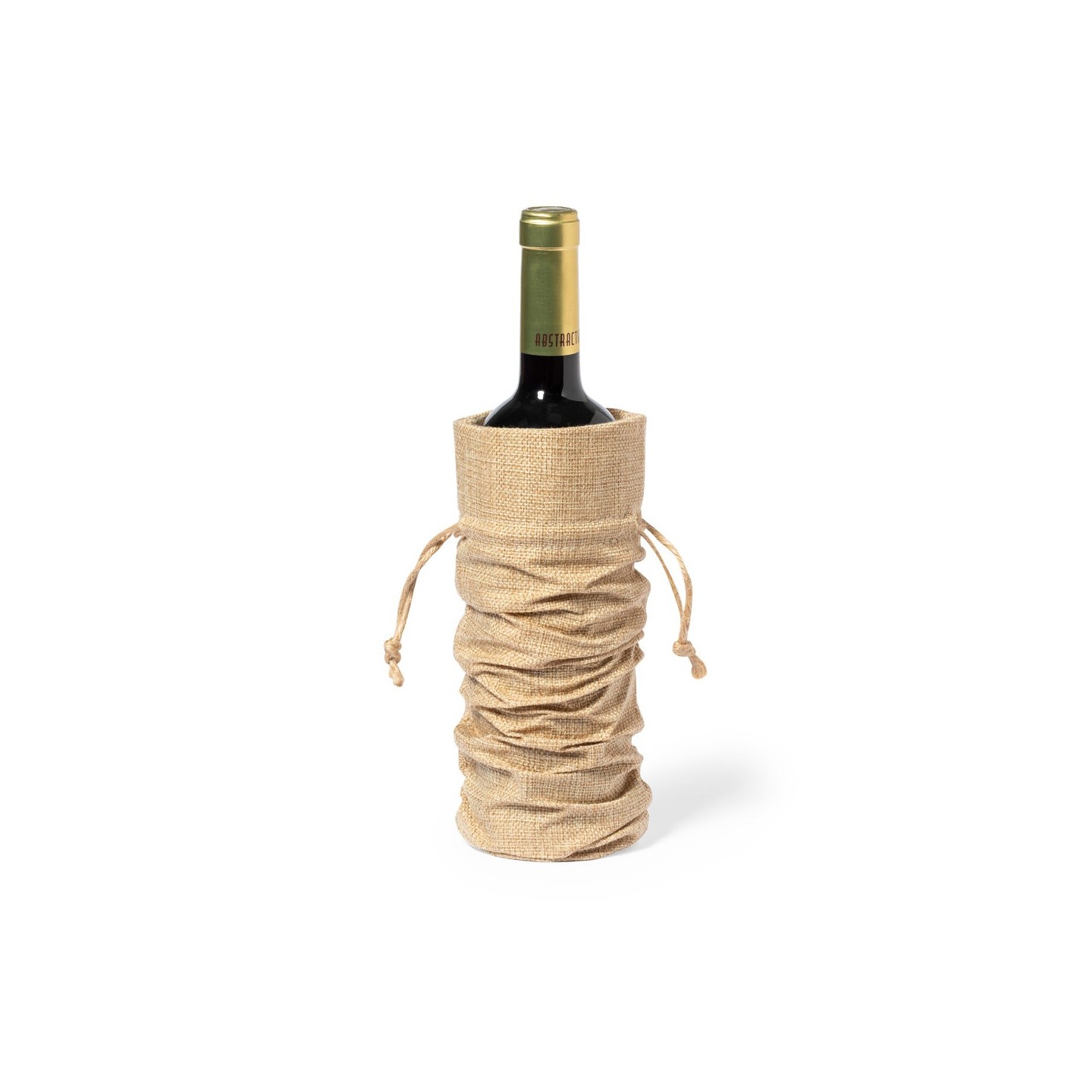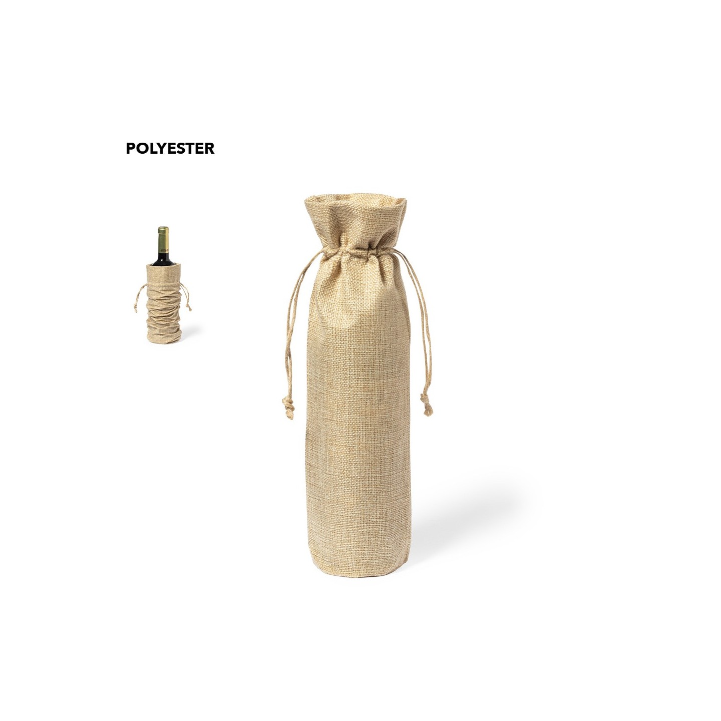 Bolsa para botellas de inspiración nature con cierre de cordón en yute. Ideal para botellas de 750 ml. Fabricada en poliéster resistente.