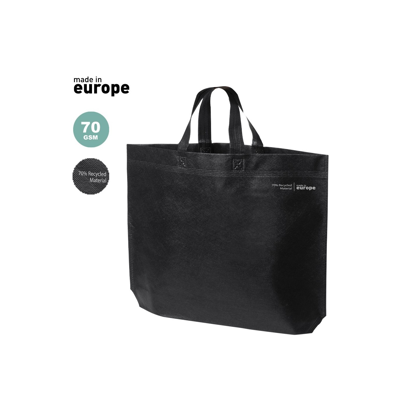 La bolsa Prastol es la opción ecológica perfecta para cualquier negocio comprometido con el medio ambiente. Fabricada en non-woven reciclado de alta calidad, con un acabado termosellado y un fuelle en la base para mayor capacidad. Las asas largas hacen que sea cómoda de llevar en el hombro, y la etiqueta eco/made in en la bolsa muestra su compromiso con la sostenibilidad. Además, al ser de fabricación europea, se garantiza un proceso de producción respetuoso con el medio ambiente y los derechos laborales.