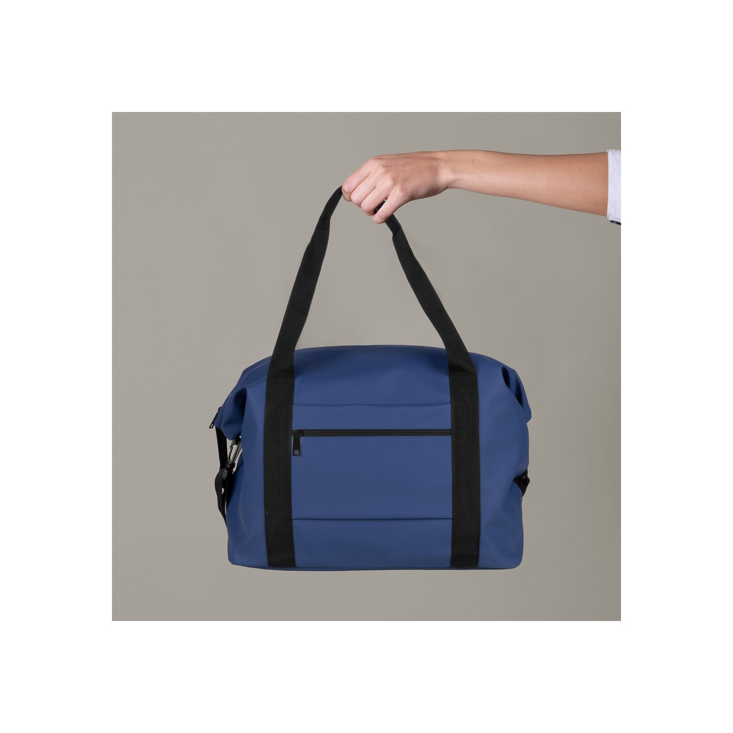 La Bolsa SAMARA, fabricada en canvas RPET, es ideal para viajes. Con múltiples compartimentos, ajustes de compresión y personalizable con tu logotipo. Sostenible y resistente.