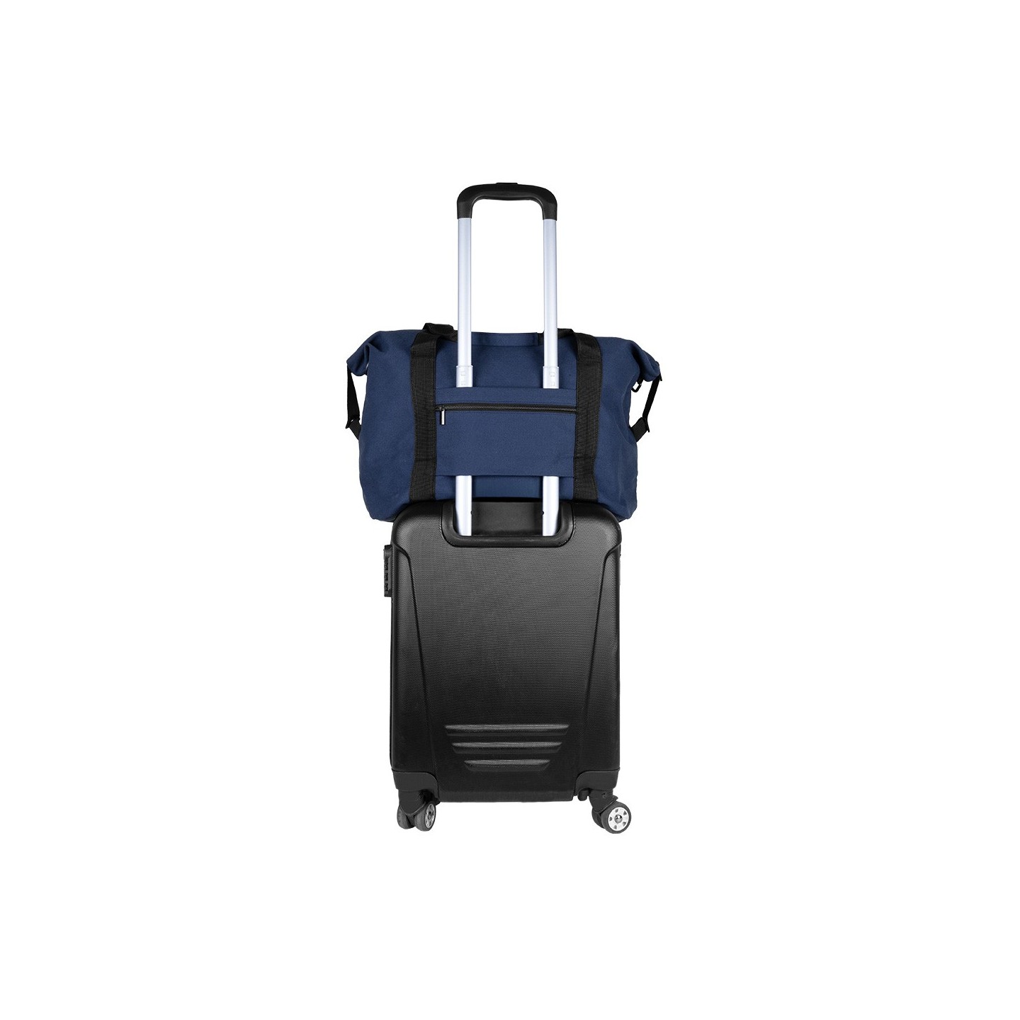 La Bolsa SAMARA también incluye una cinta que permite llevarla cómodamente en un trolley, lo que la convierte en una opción aún más práctica y versátil para aquellos que viajan con equipaje adicional. Los ajustes de compresión con cierre de corchete permiten reducir el tamaño de la bolsa cuando no está completamente llena, ayudando a mantener la forma de la bolsa y facilitando su transporte.