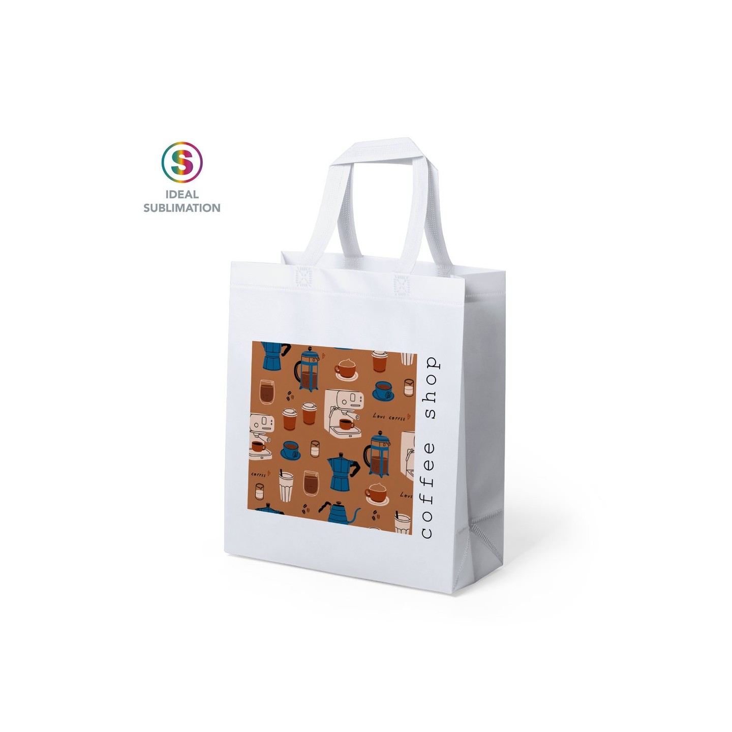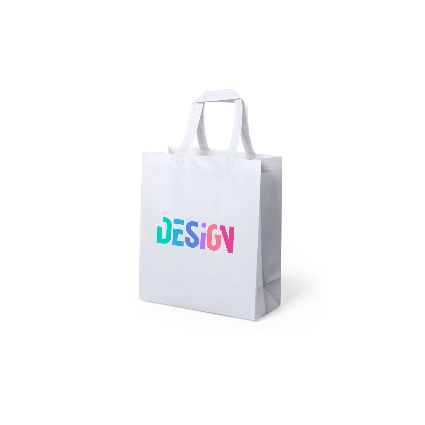 Bolsa en non-woven de 70g/m2, diseñada para marcaje en sublimación. Acabado termosellado, con fuelle y asas cortas reforzadas. Resistencia hasta 8 kg de peso.
