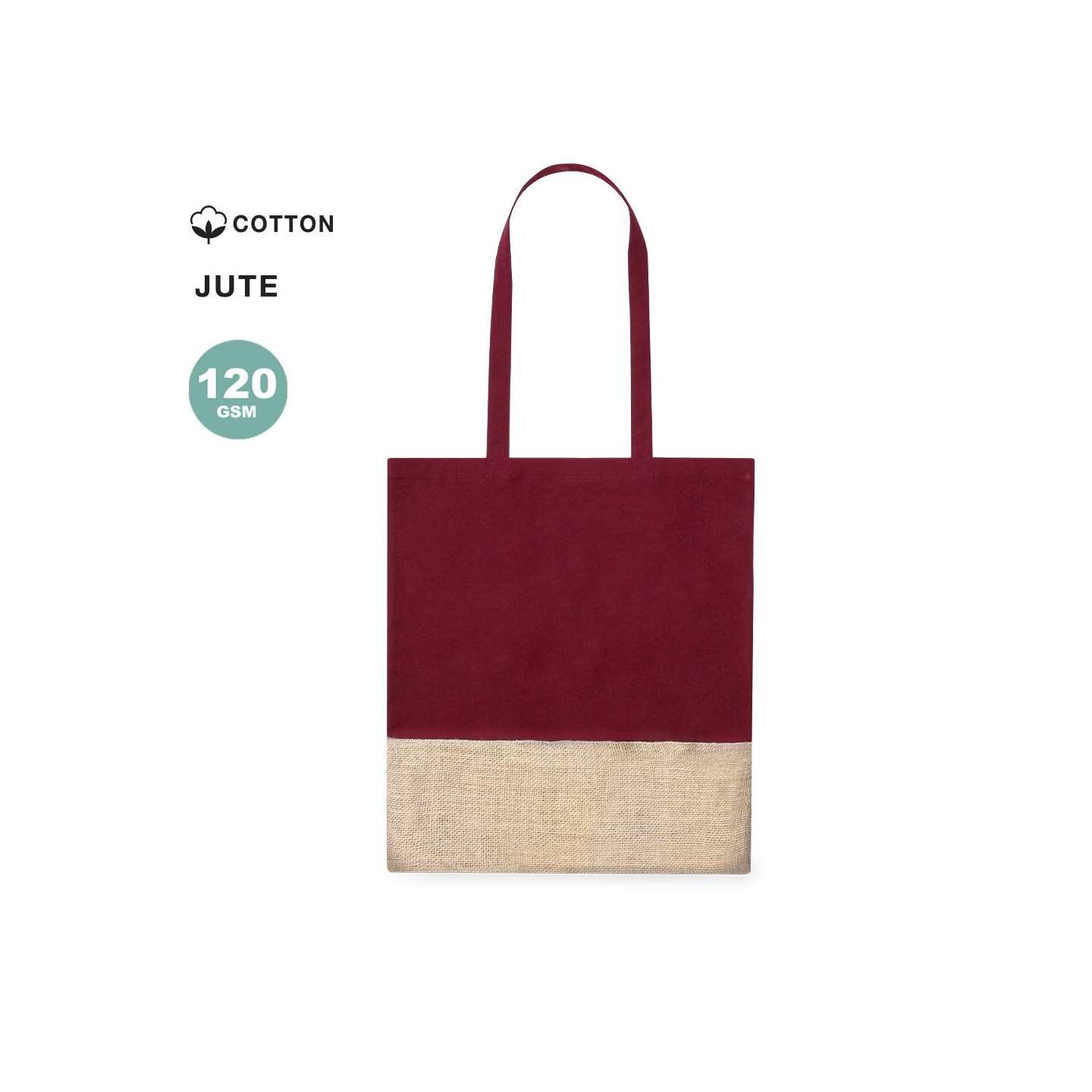La Bolsa Suelva está confeccionada en material 100% algodón de 120 g/m2, combinado con yute, lo que le otorga un aspecto natural y distintivo. Sus asas planas proporcionan comodidad al llevarla y están diseñadas para soportar hasta 8 kg de peso, asegurando su resistencia y durabilidad.